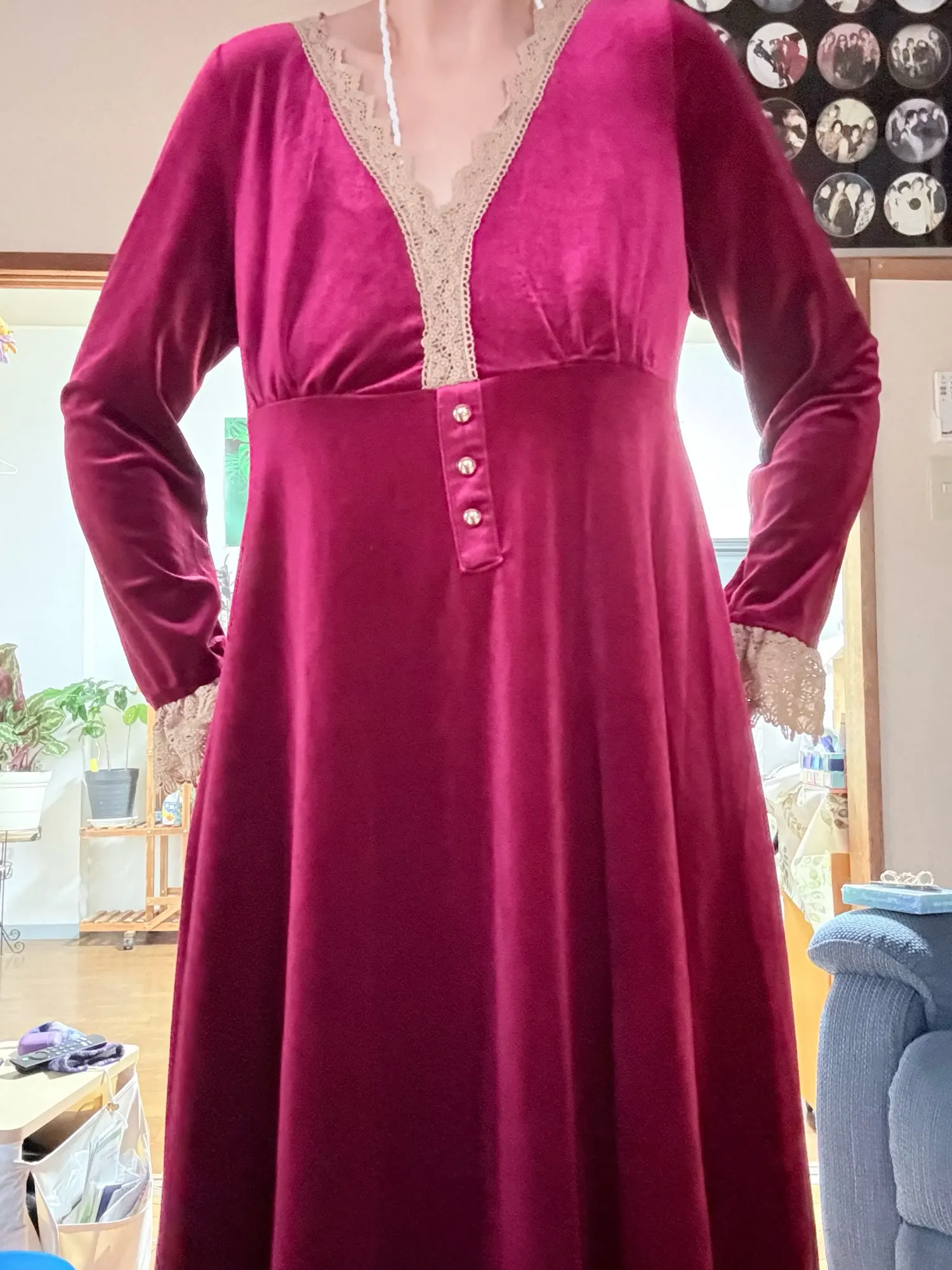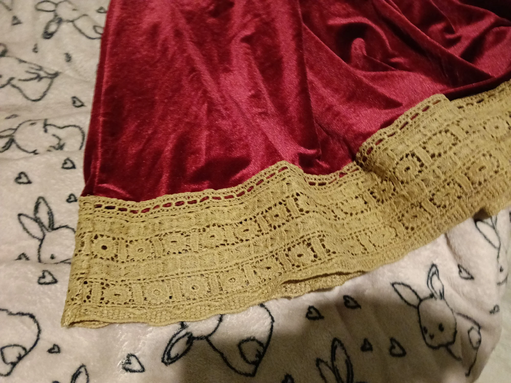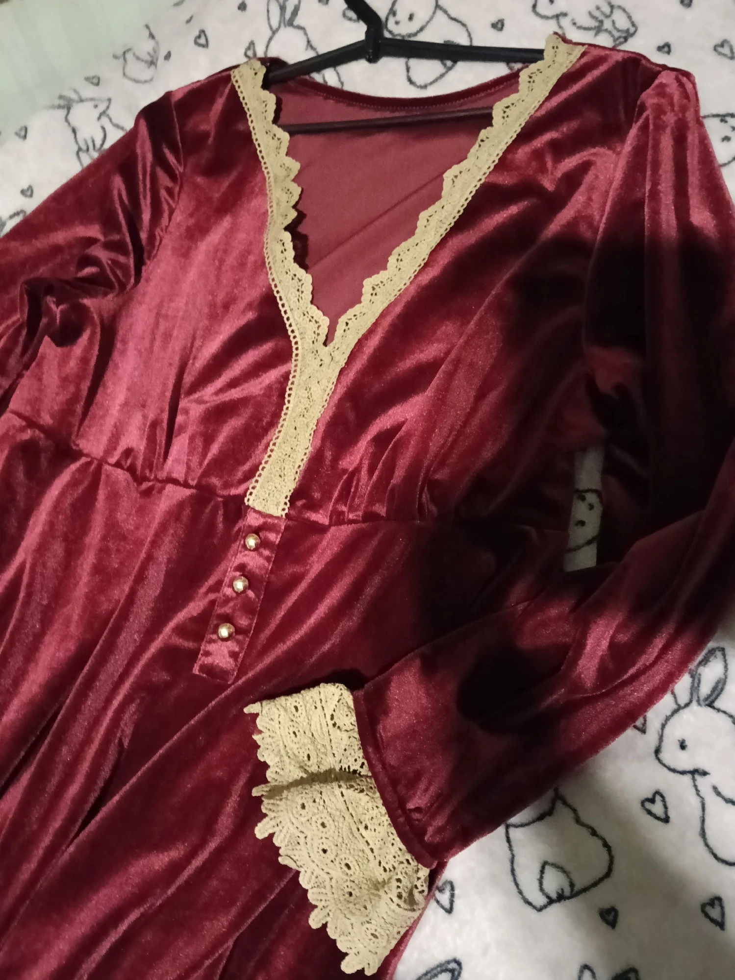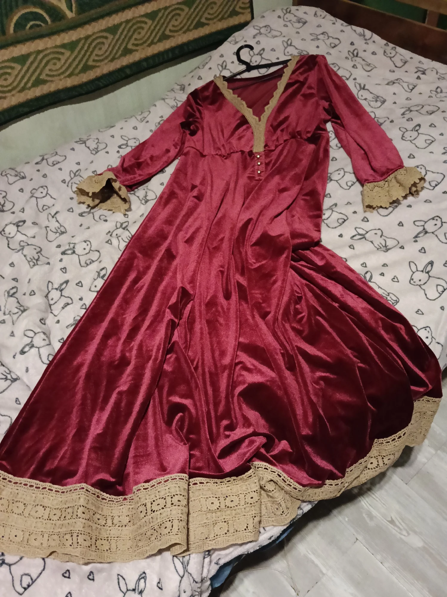 I was afraid to buy because there were no reviews. It turned out to be a good dress. A little lighter than in the photo. The velvet is nice and stretches. The lace looks decent.