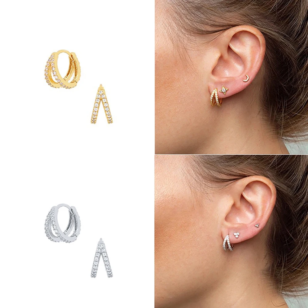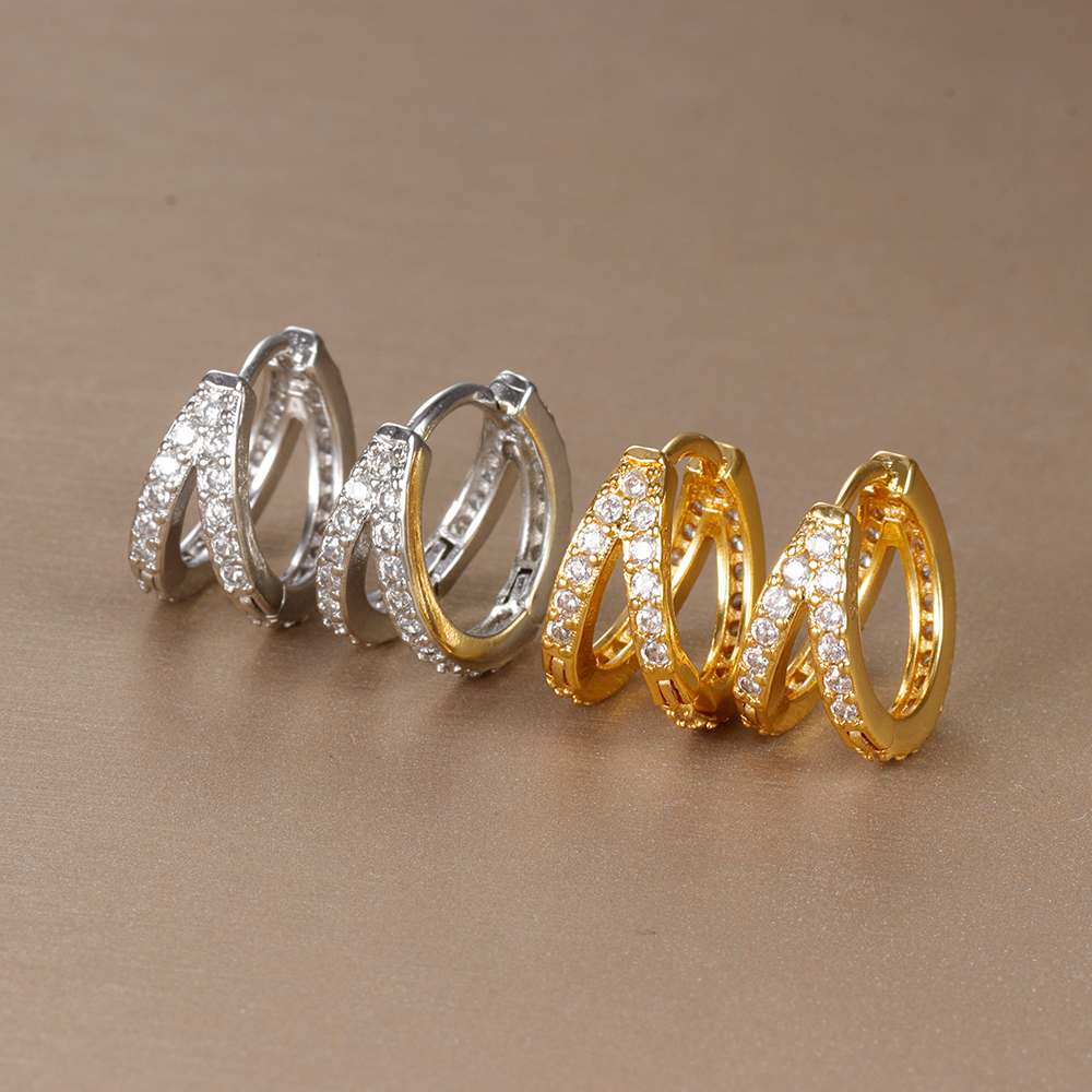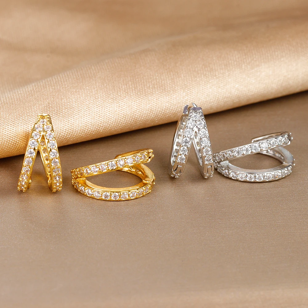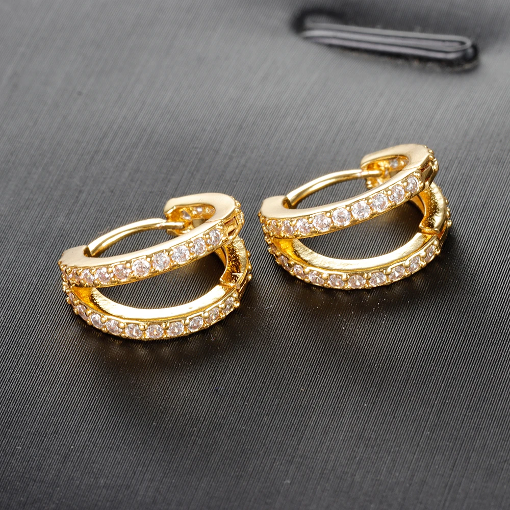 Vintage Zircon Little Huggie Hoop Earrings for Women Stainless Steel Geometry Double Circle Piercing Earrings Wedding Jewelry