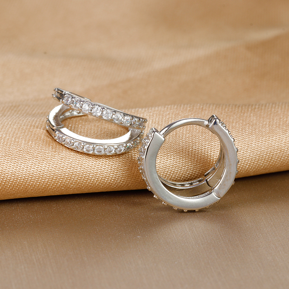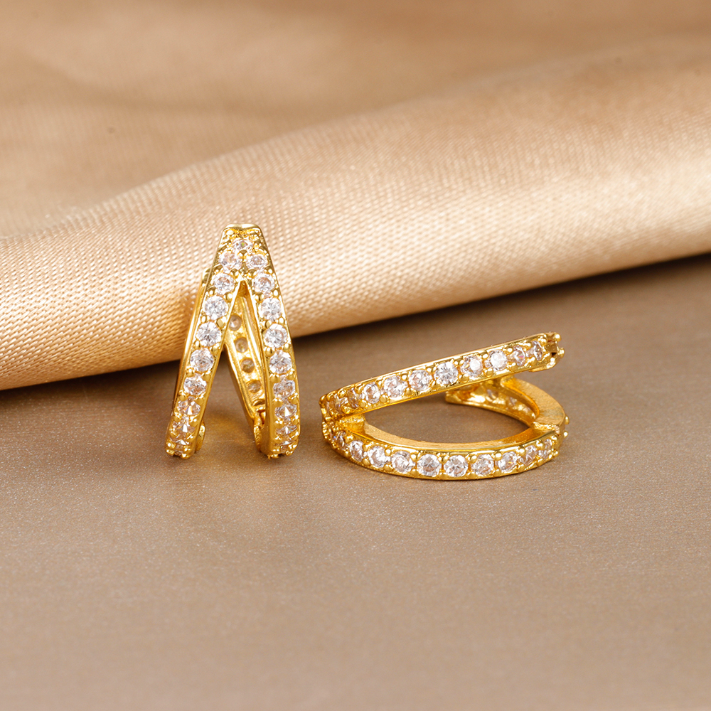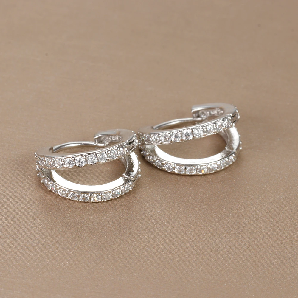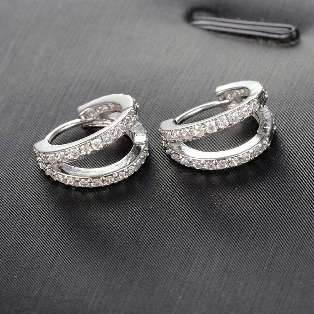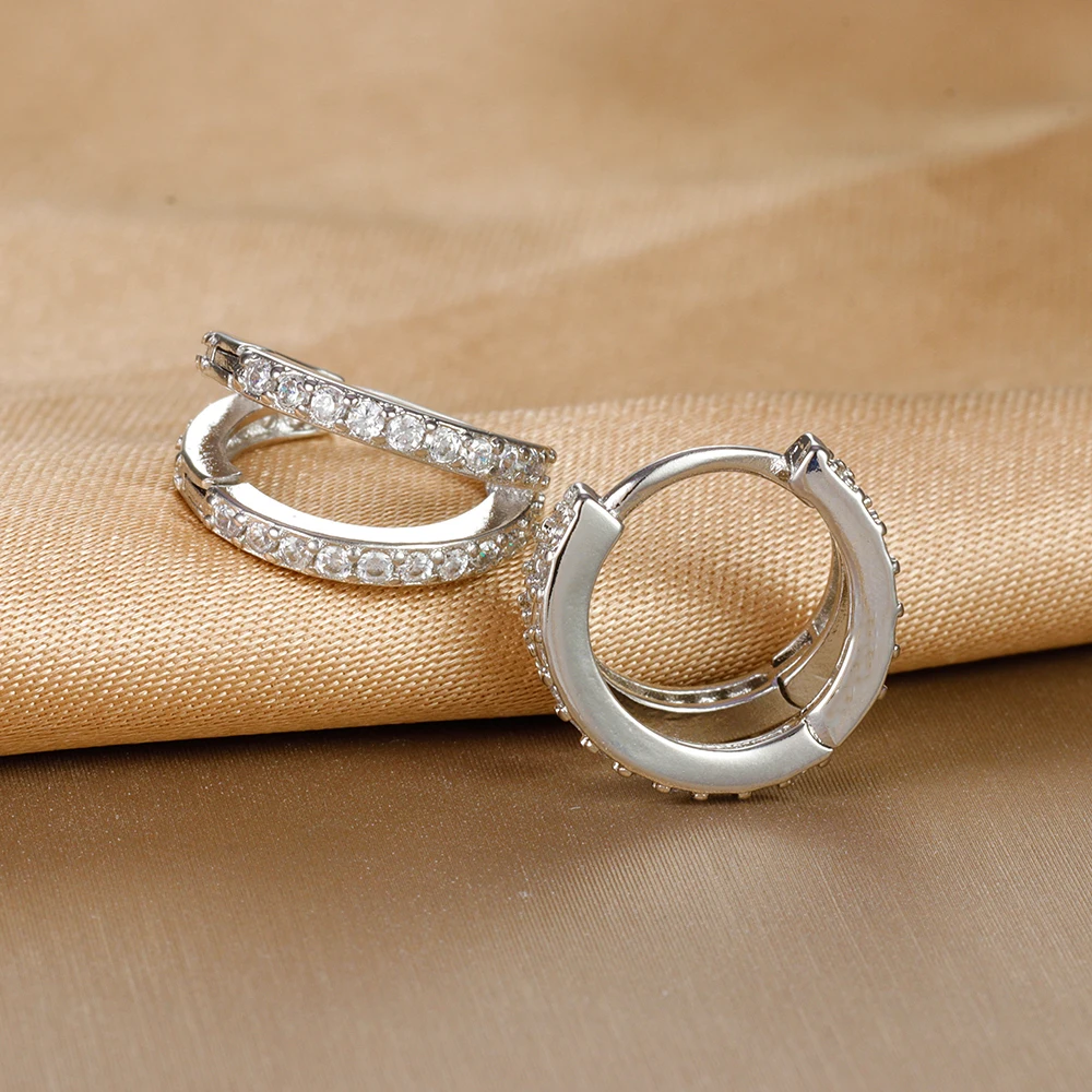 Vintage Zircon Little Huggie Hoop Earrings for Women Stainless Steel Geometry Double Circle Piercing Earrings Wedding Jewelry