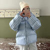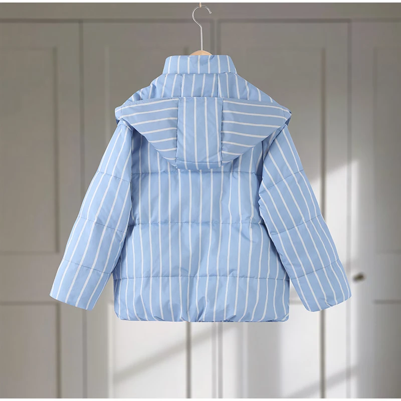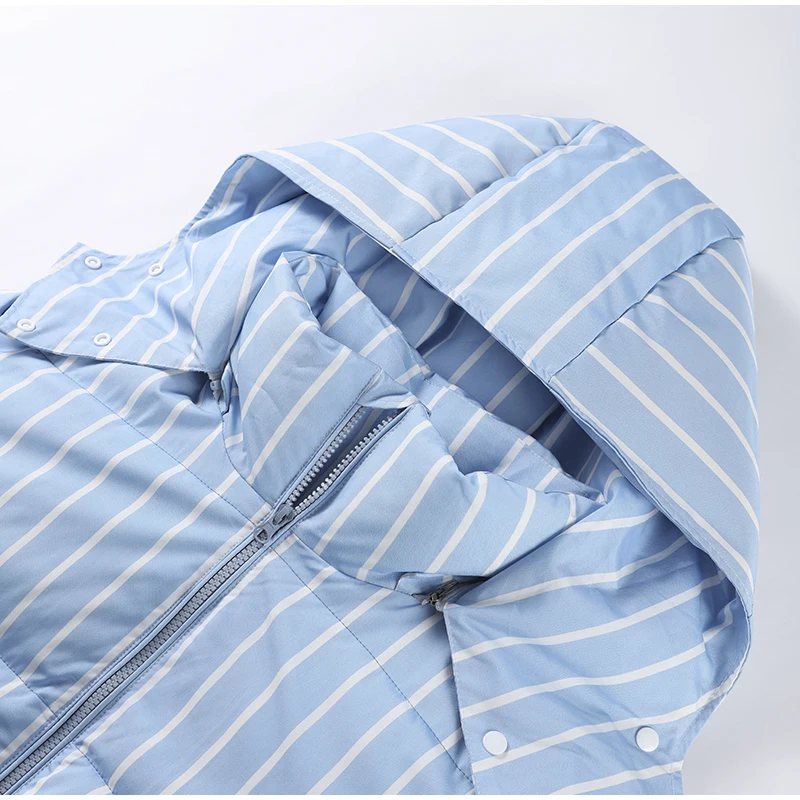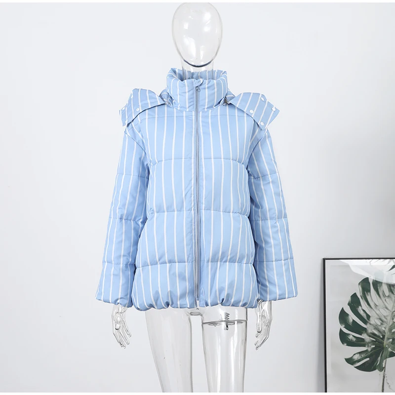 Warm Striped Hooded Cotton Jacket Women Loose Long Sleeve Zipper Thicken Padded Coat 2025 Winter Casual Lady Quilted Outwear