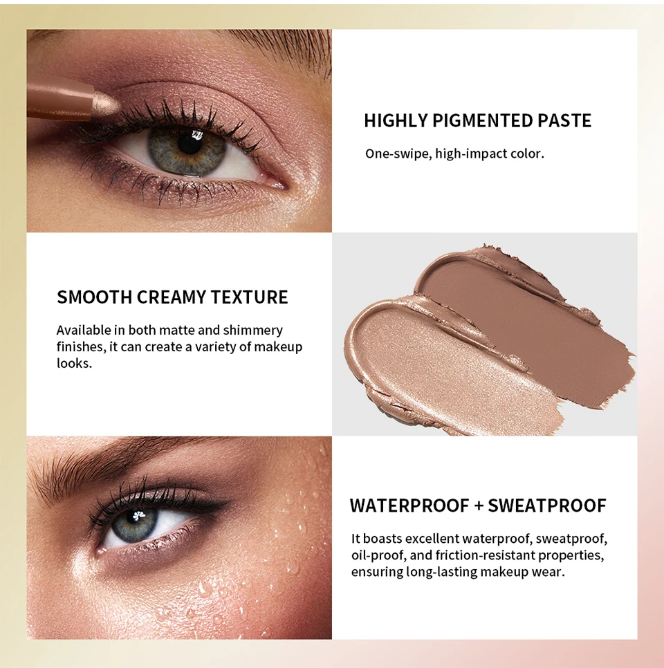 2️⃣ Smooth, Creamy Application: The soft, velvety texture glides on eyelids without tugging or skipping, allowing for easy, even color distribution and seamless blending.