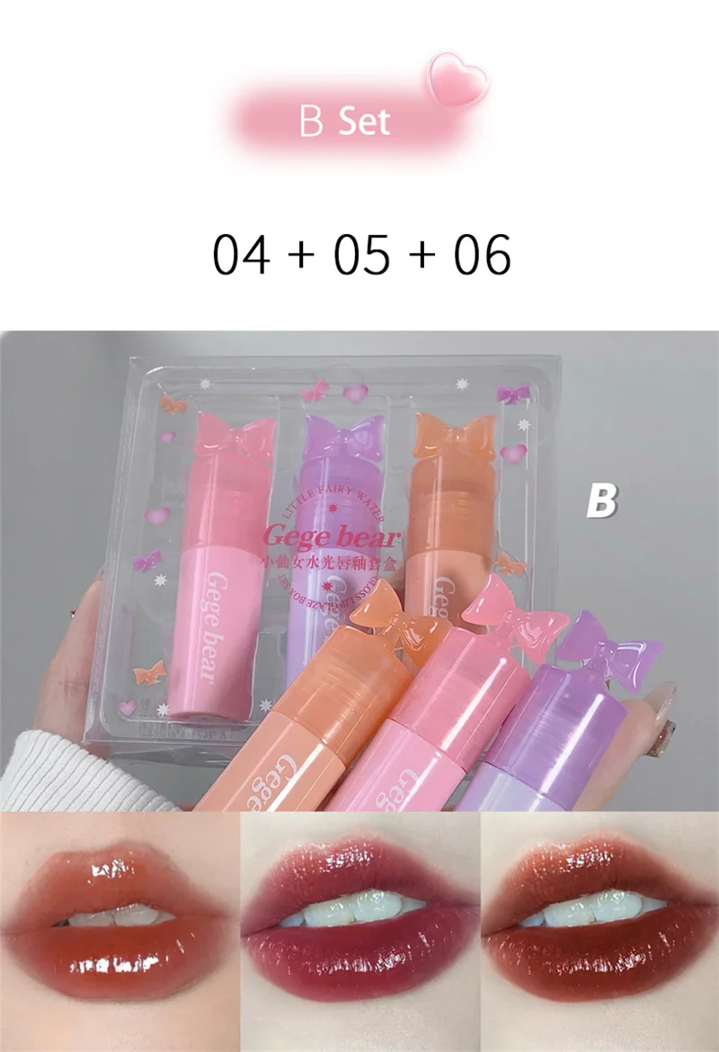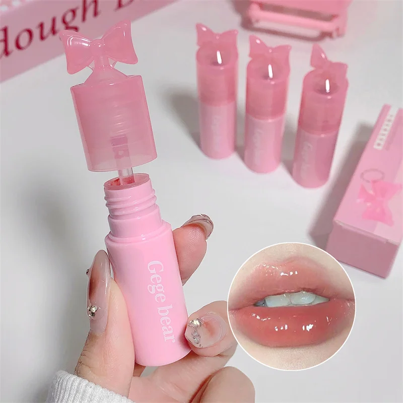 Waterproof Mirror Bow Tie Lip Gloss 6 Colors Sparkling Glitter Liquid Lipstick Shimmer Pearl Lip Gloss Jelly Lip Korean Make Up