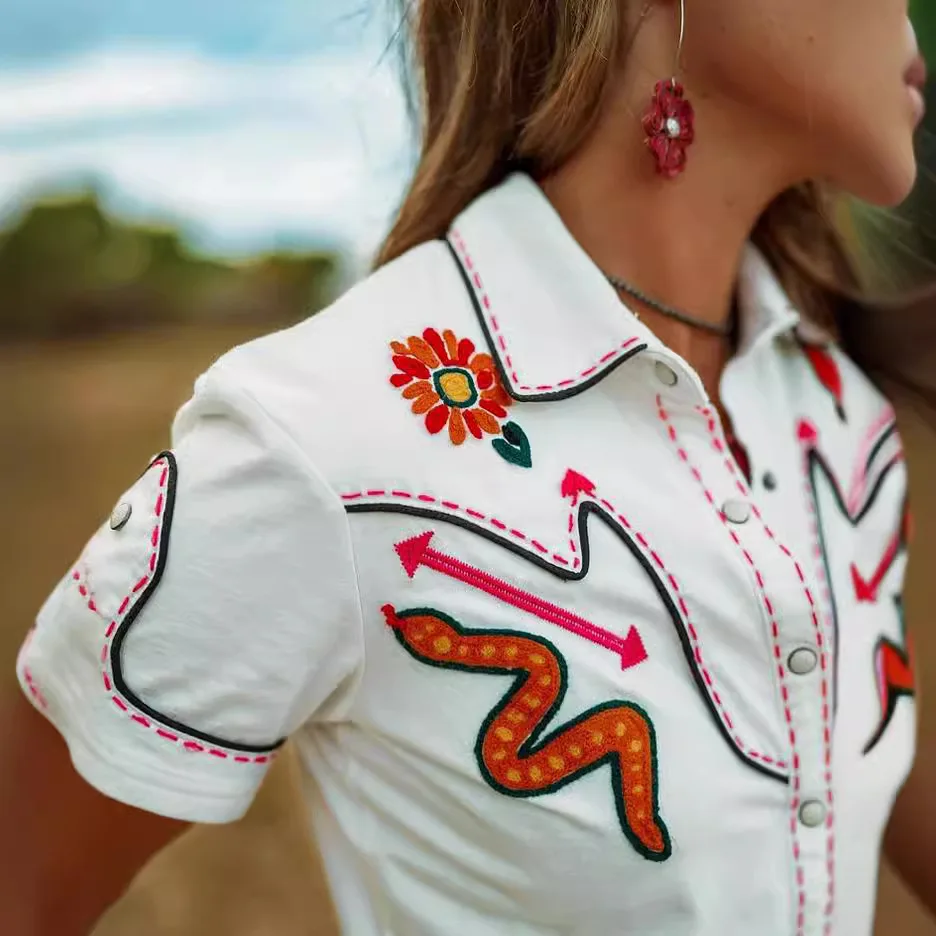 Western Style Print Casual Slim Women’s Shirt 2025 Spring Vintage Women’s Long Sleeve Shirts and Blouses Fashion Elegant Tops