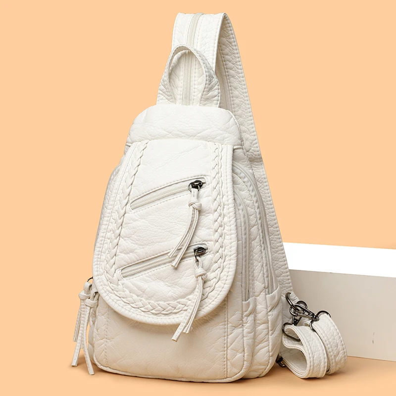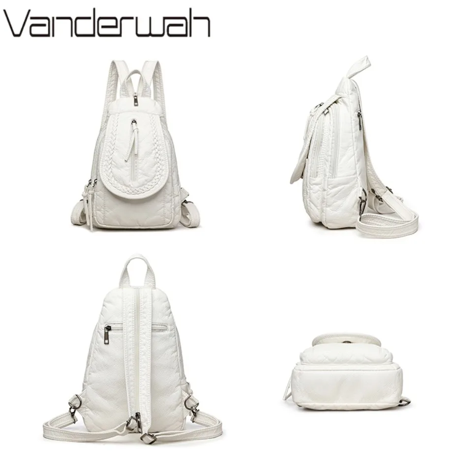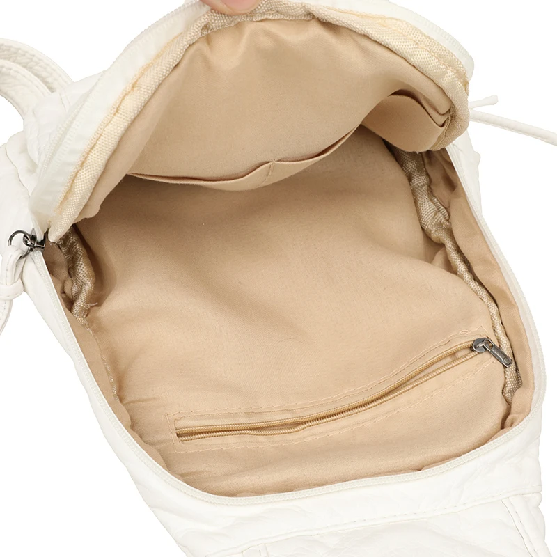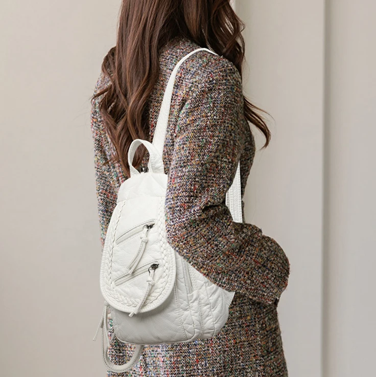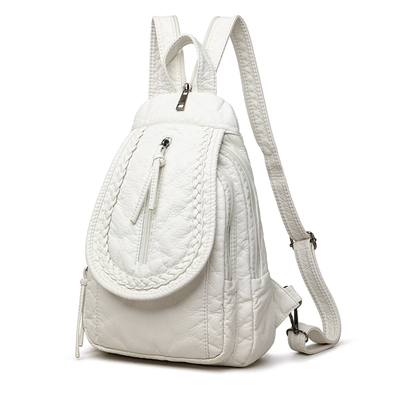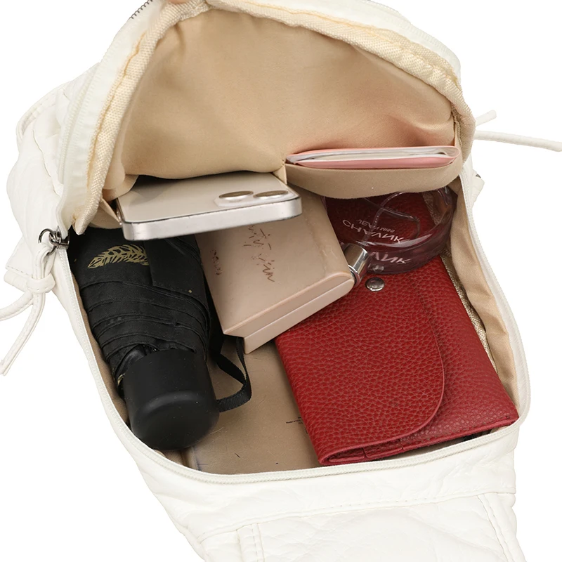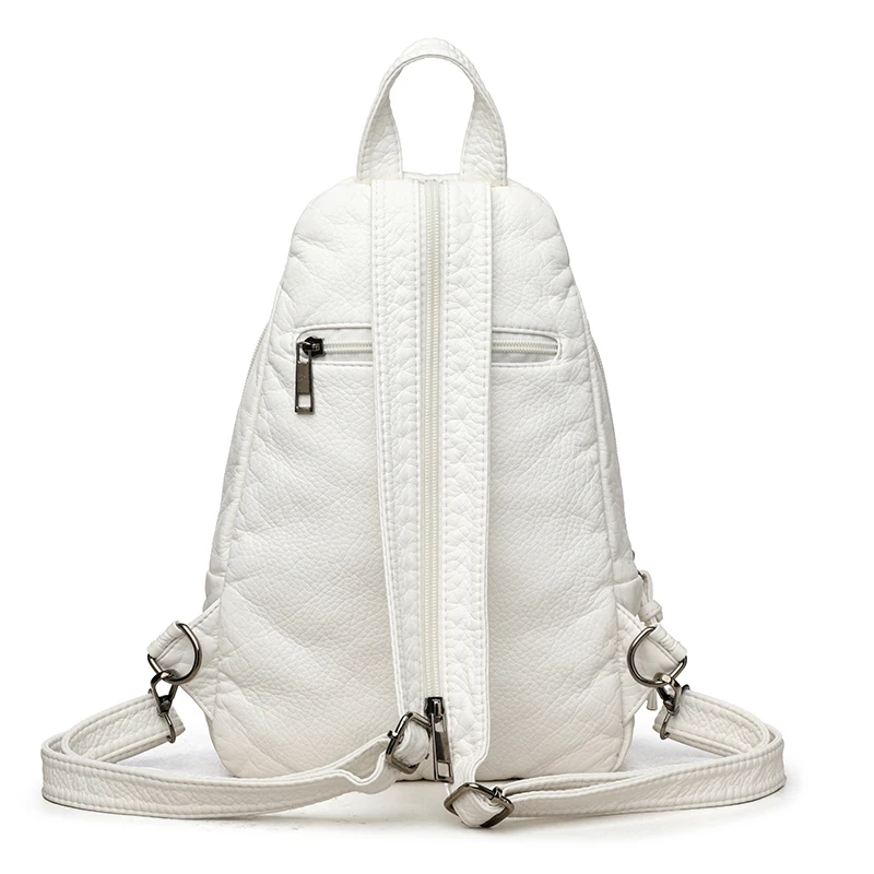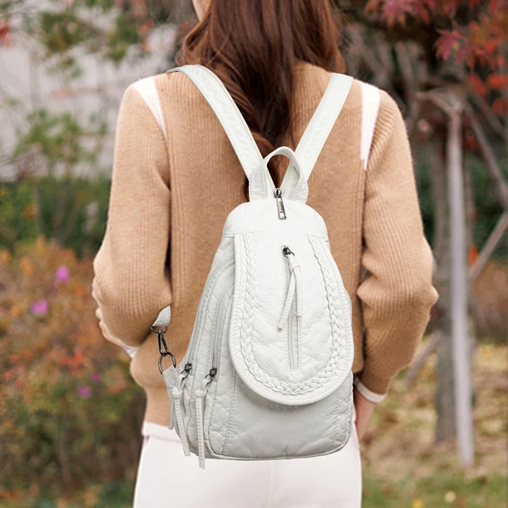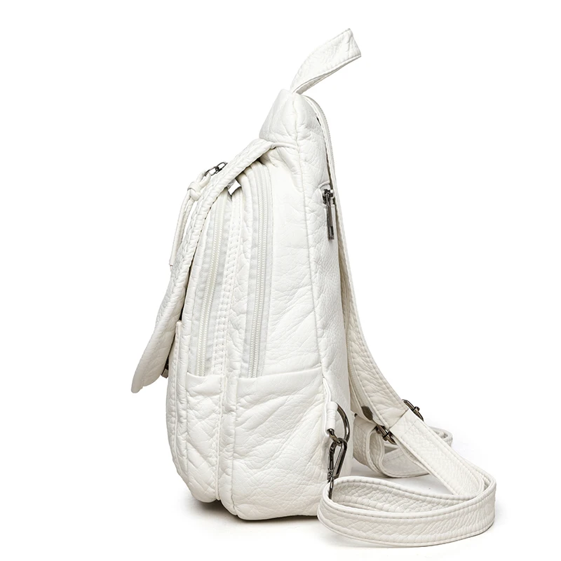 White Backpack For Women Small Shoulder Bag Multi-pocket Rucksack Ladies High Quality Soft Leather Sac A Dos Casual Teenager Bag