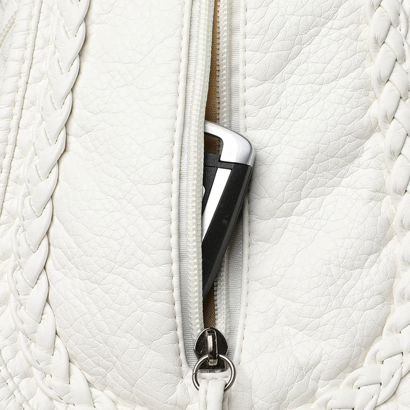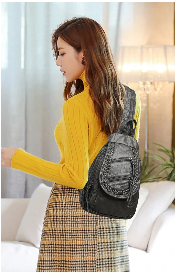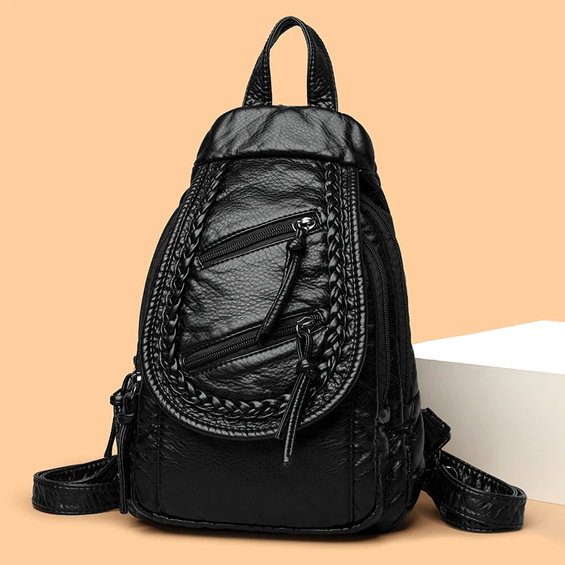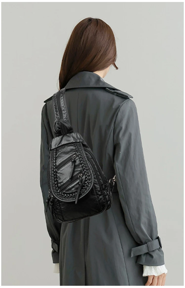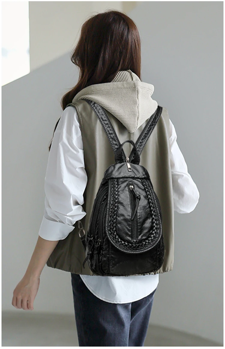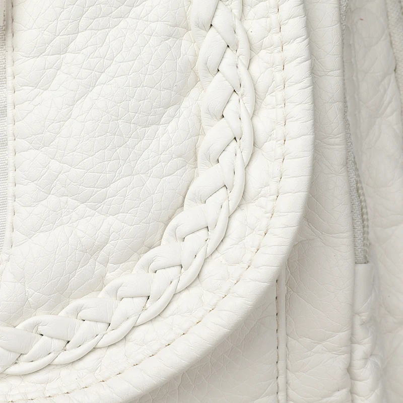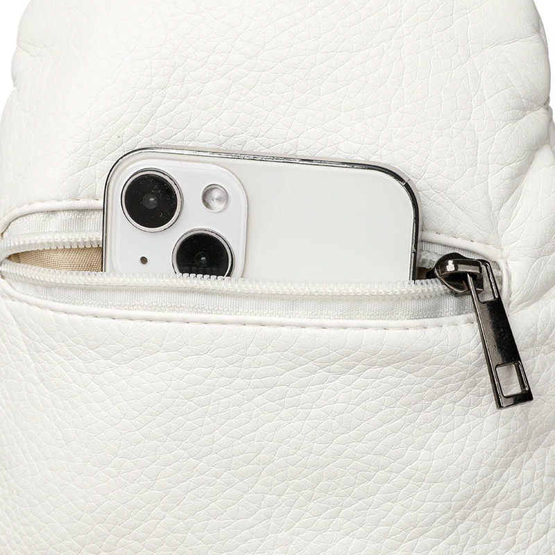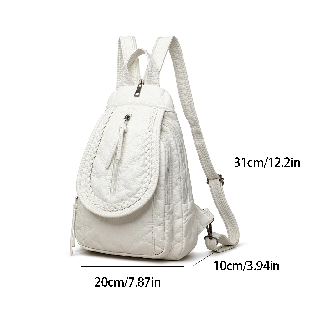 White Backpack For Women Small Shoulder Bag Multi-pocket Rucksack Ladies High Quality Soft Leather Sac A Dos Casual Teenager Bag