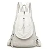 White Backpack For Women Small Shoulder Bag Multi-pocket Rucksack Ladies High Quality Soft Leather Sac A Dos Casual Teenager Bag