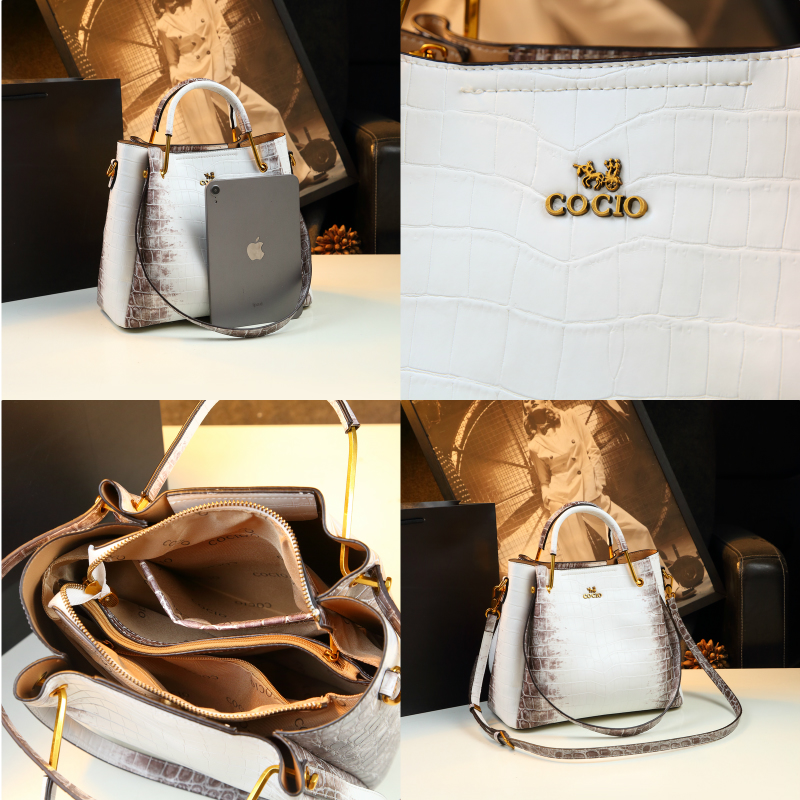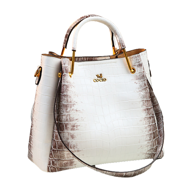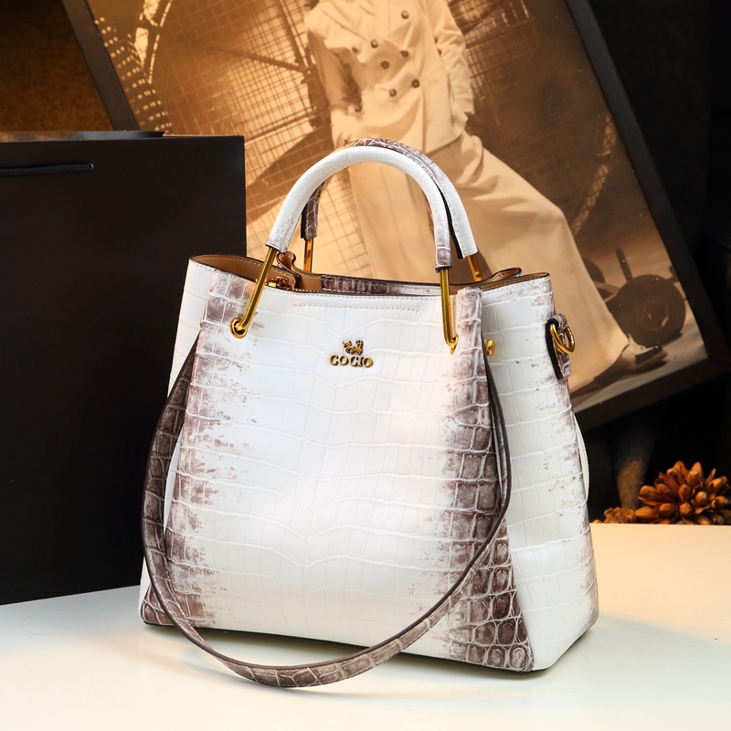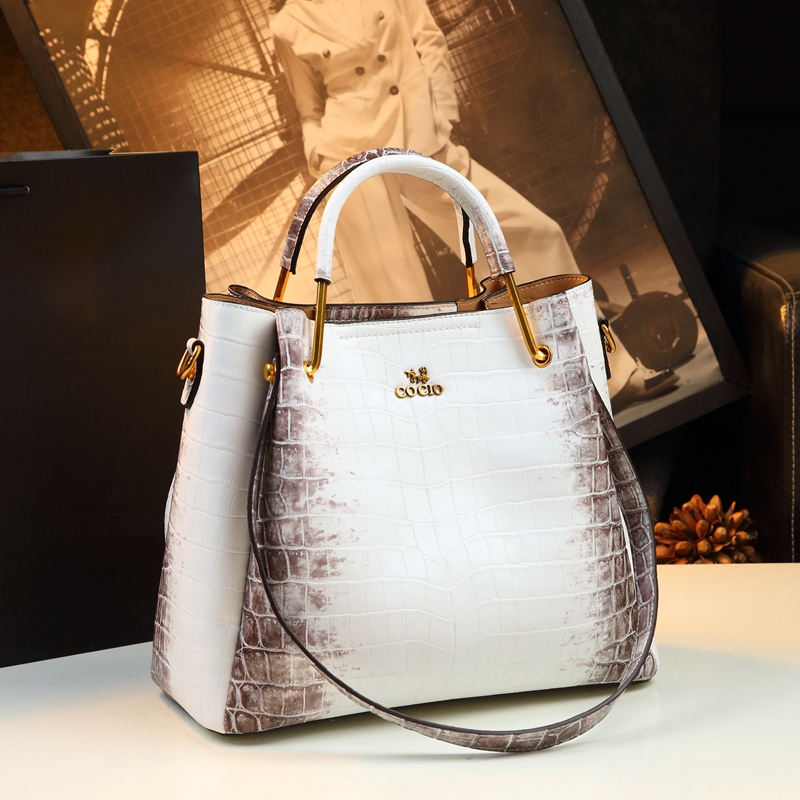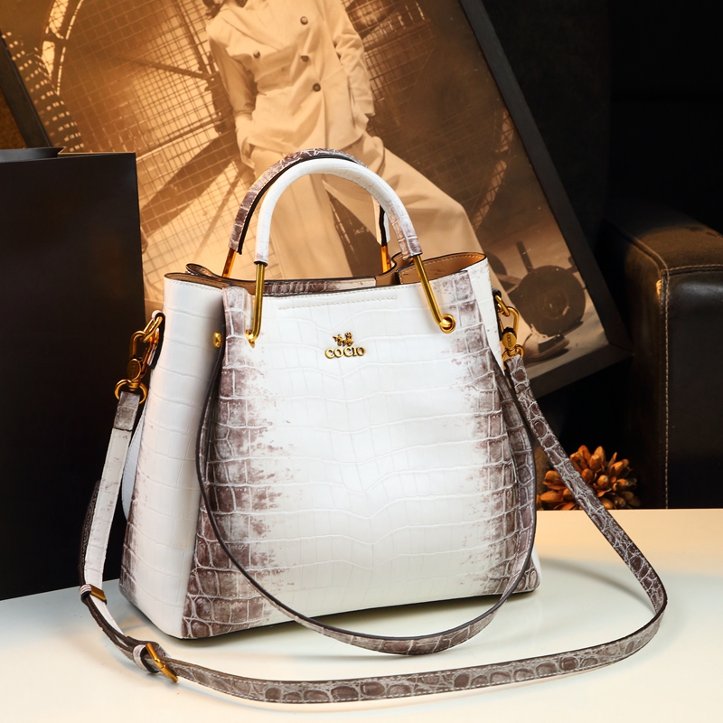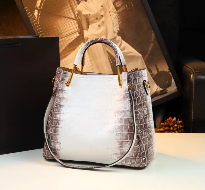 White Crocodile Pattern Leather Women Handbags Bucket Bag 2024 New Large Capacity Lady Mom Tote Shoulder Messenger Bags Fashion