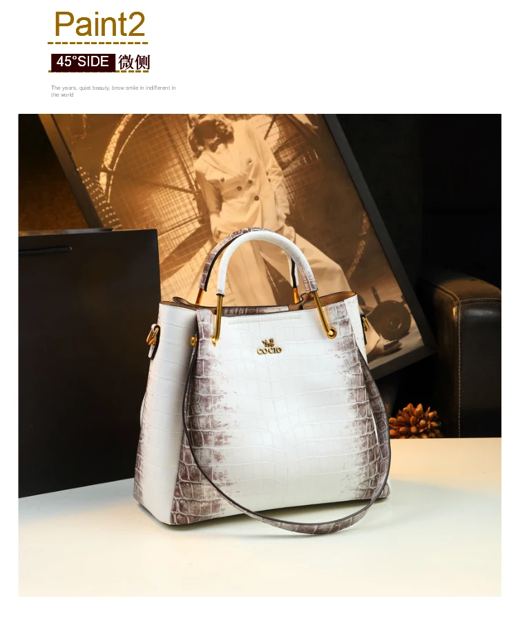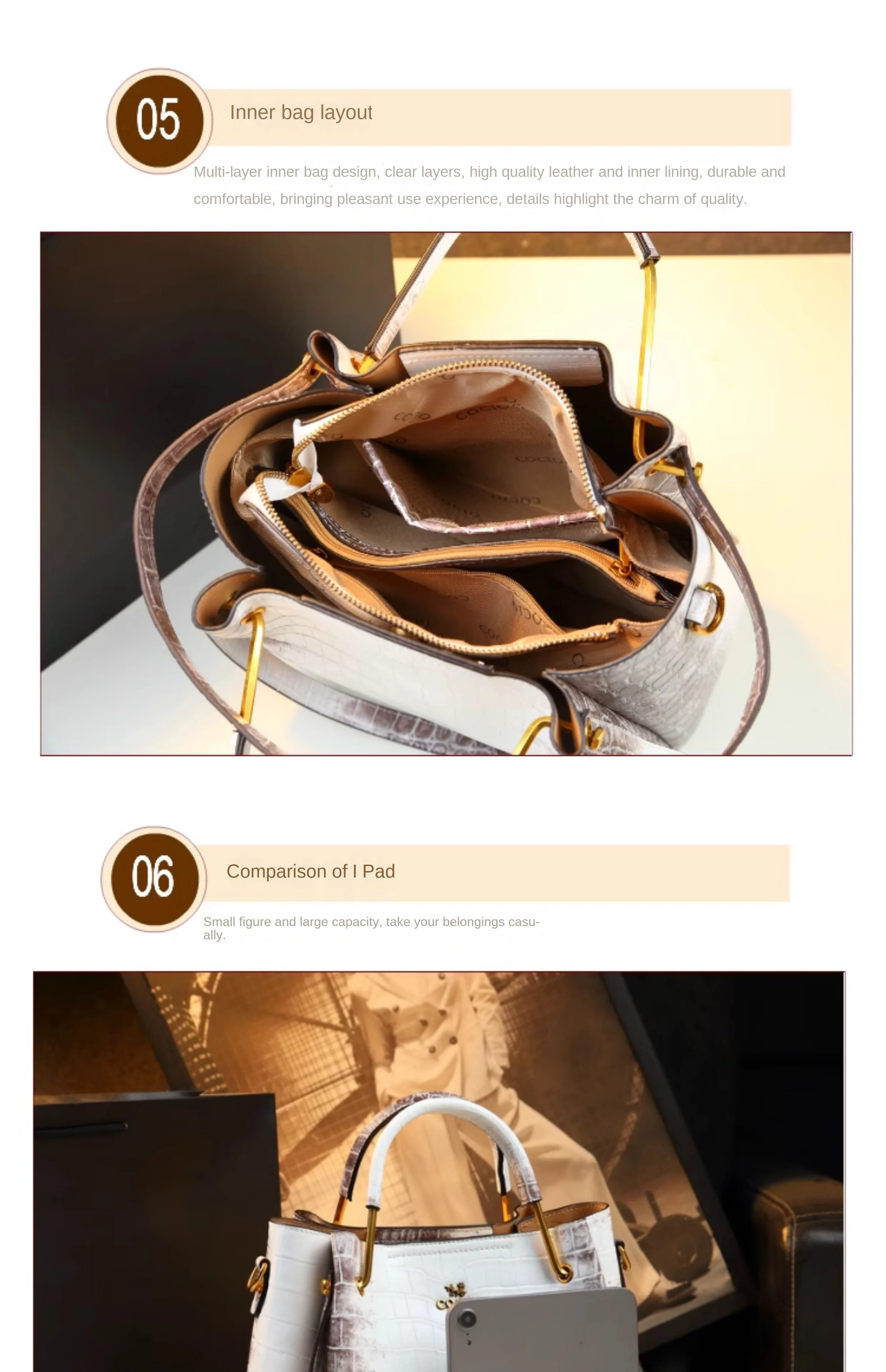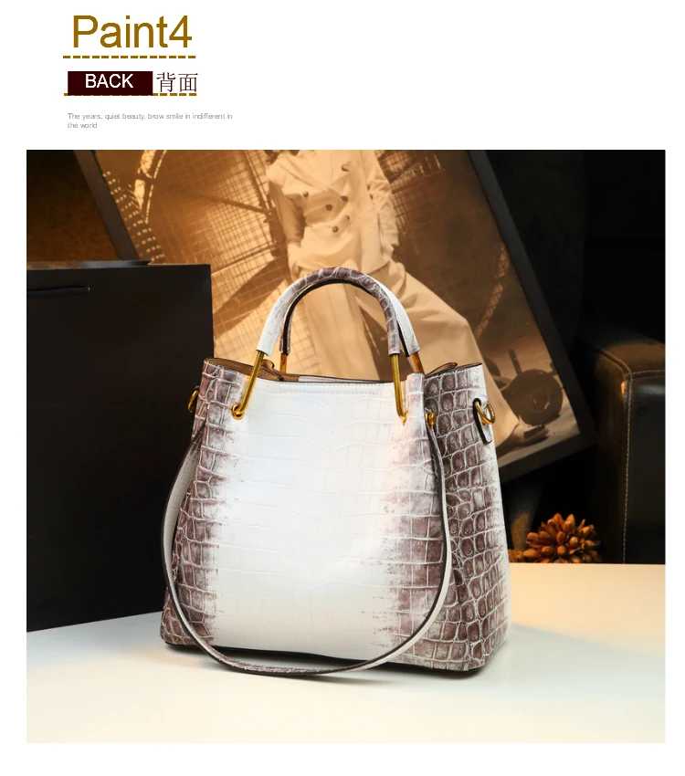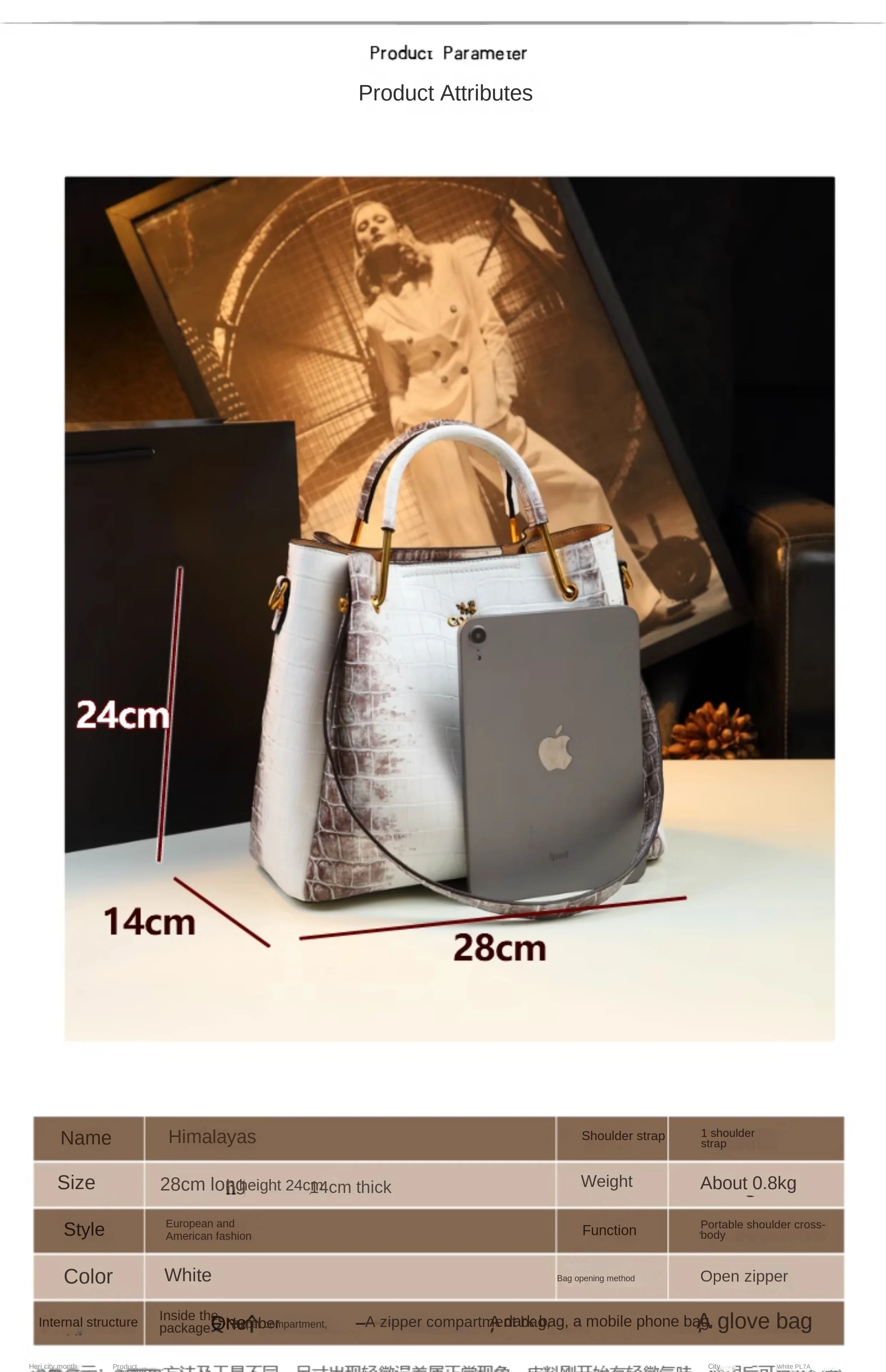 White Crocodile Pattern Leather Women Handbags Bucket Bag 2024 New Large Capacity Lady Mom Tote Shoulder Messenger Bags Fashion