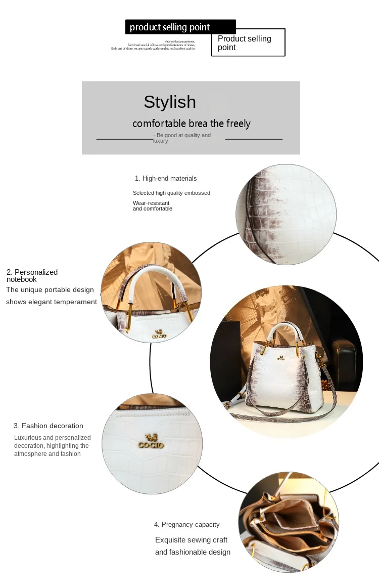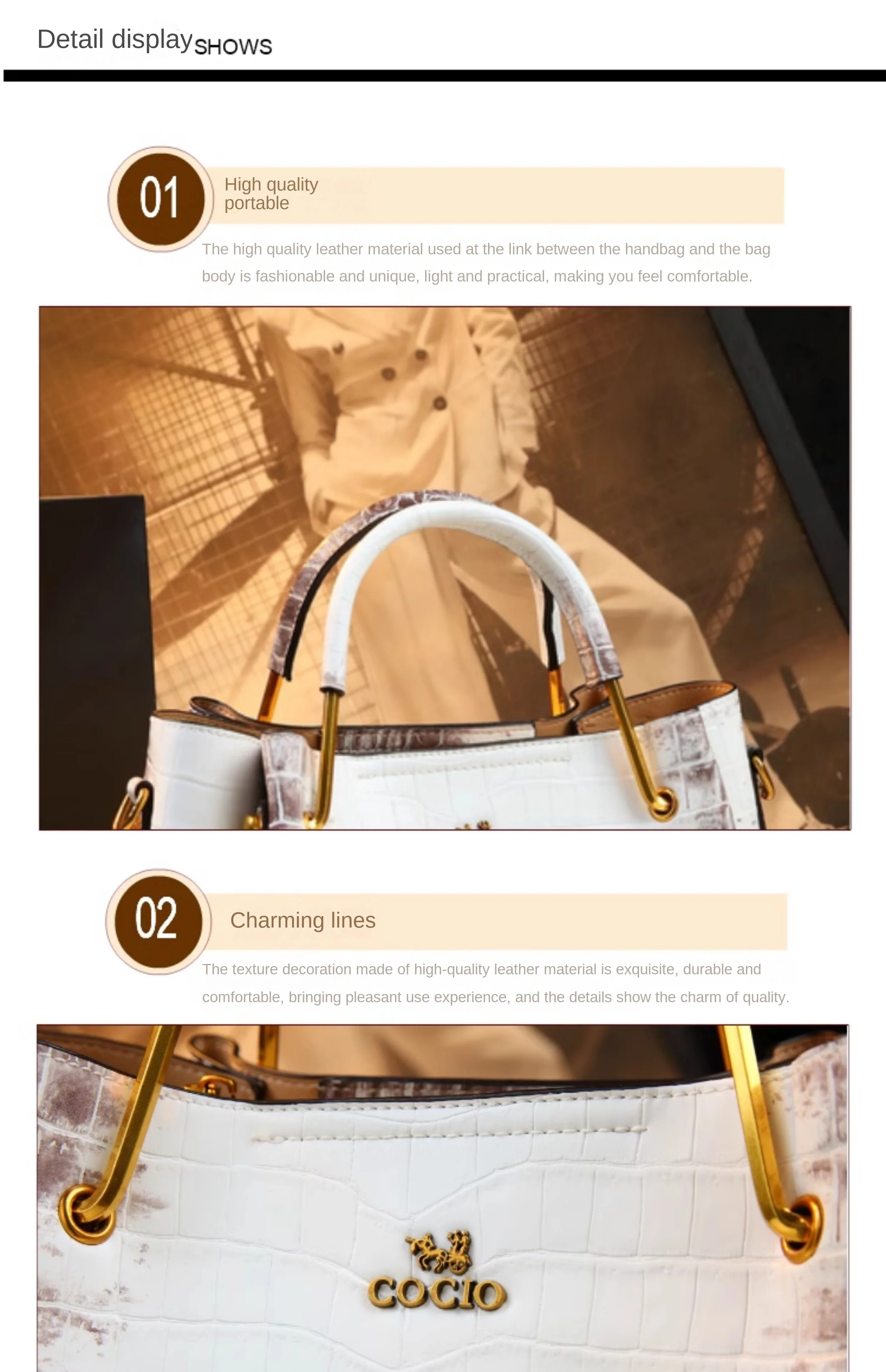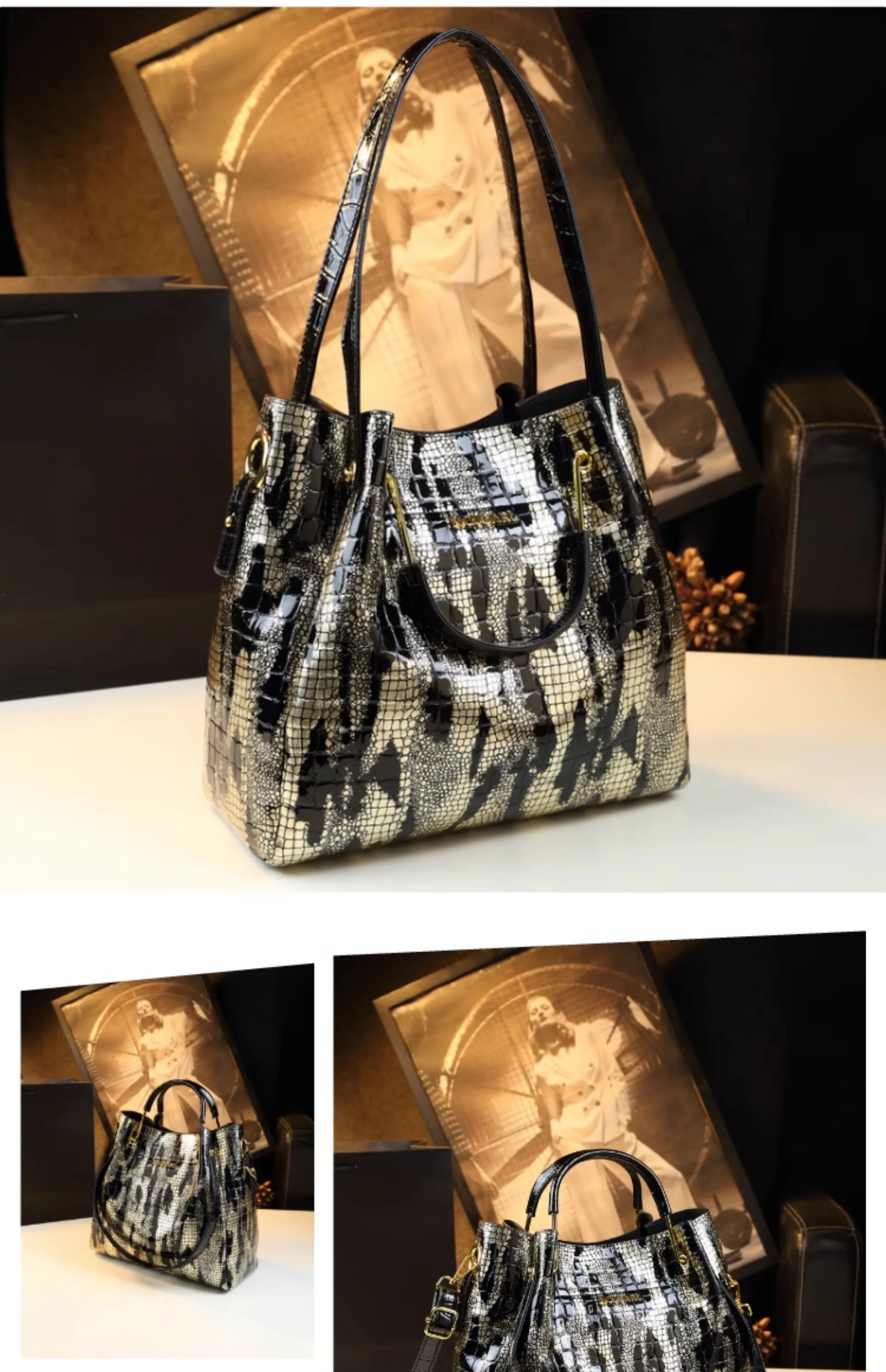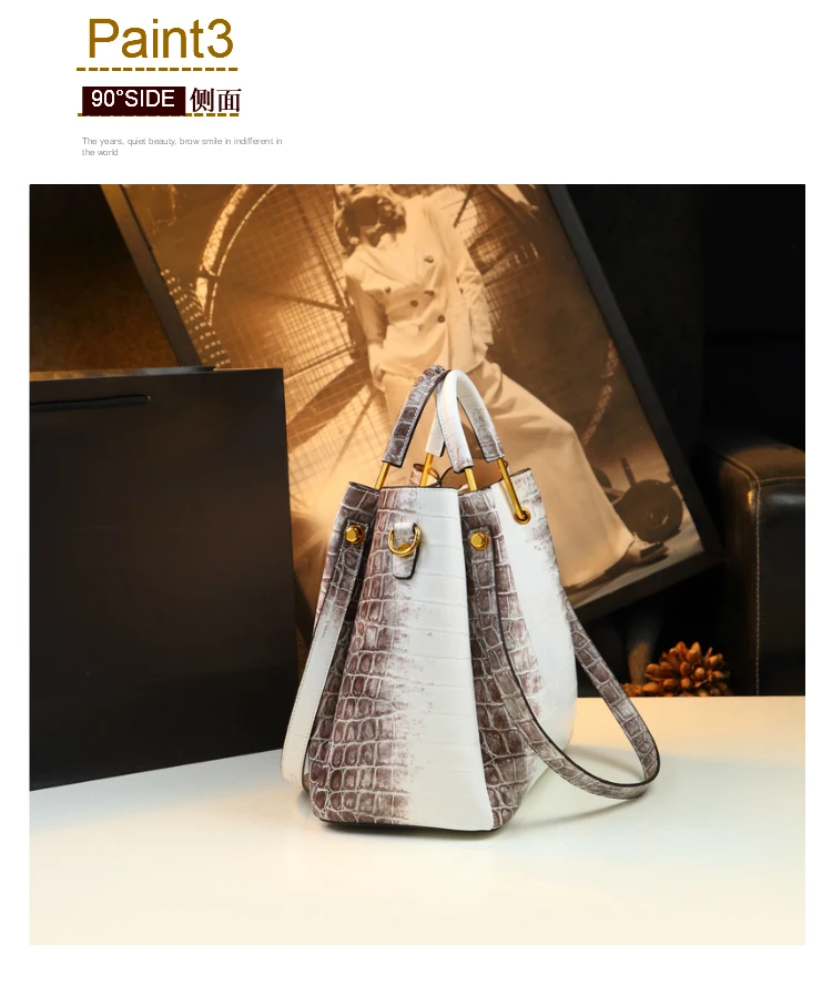 White Crocodile Pattern Leather Women Handbags Bucket Bag 2024 New Large Capacity Lady Mom Tote Shoulder Messenger Bags Fashion