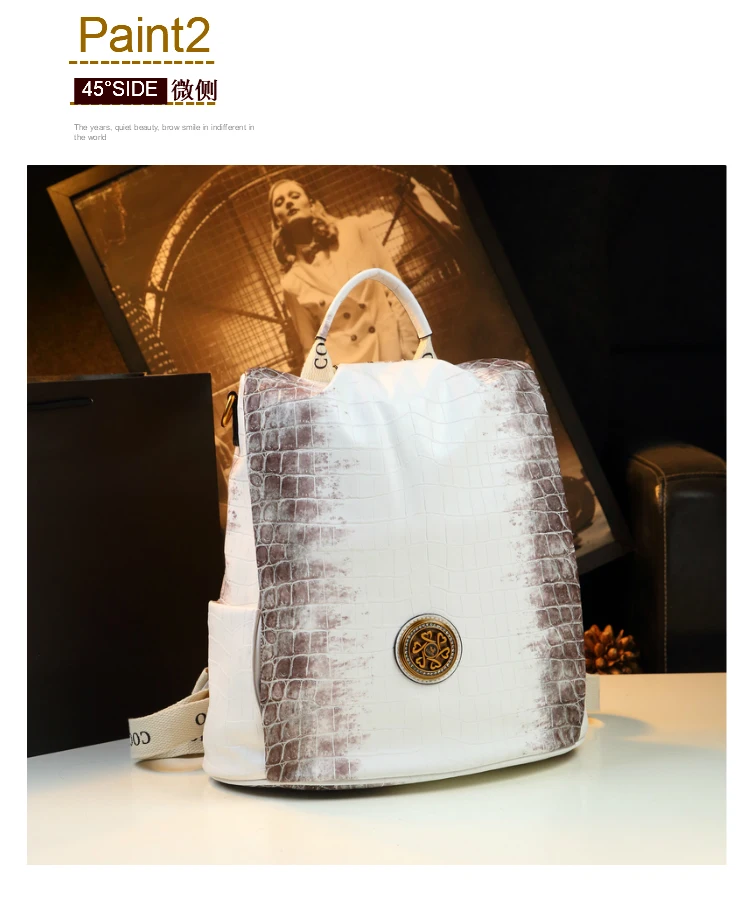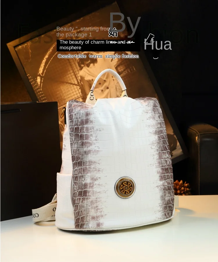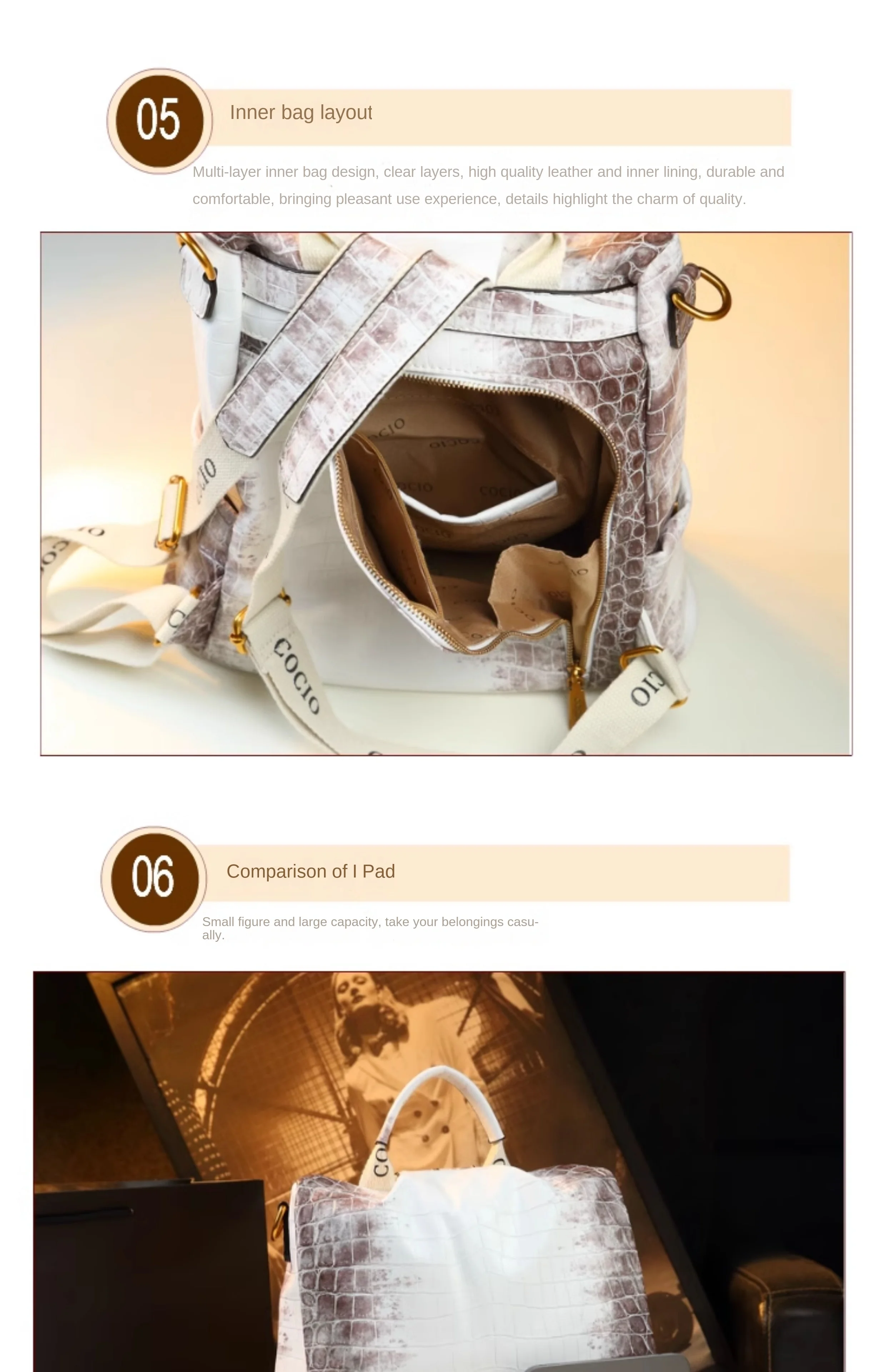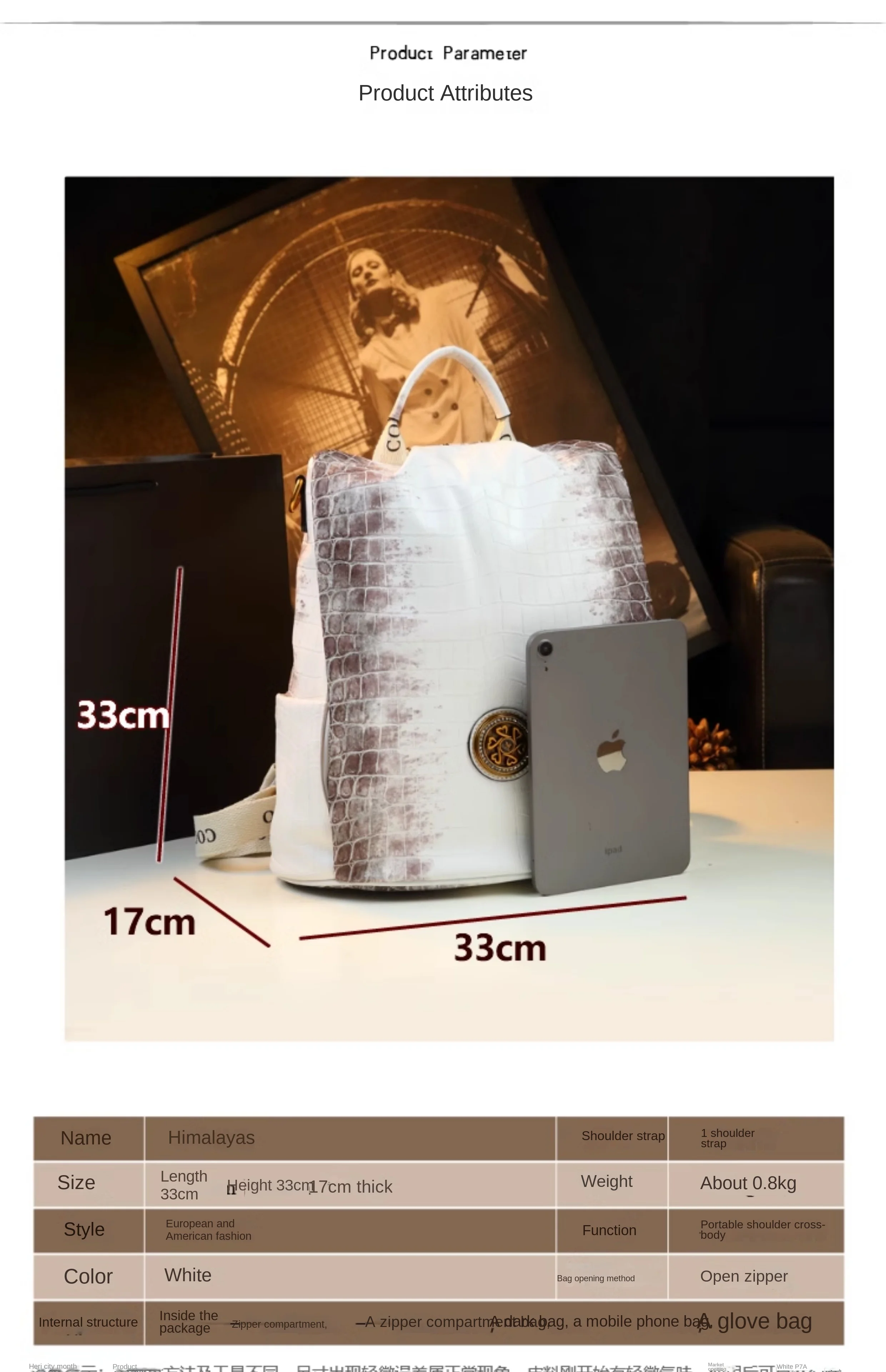White Leather Crocodile Women Backpack 2024 New Large Capacity Commuter Travel Backpacks Multi-functional Shoulder School Bags