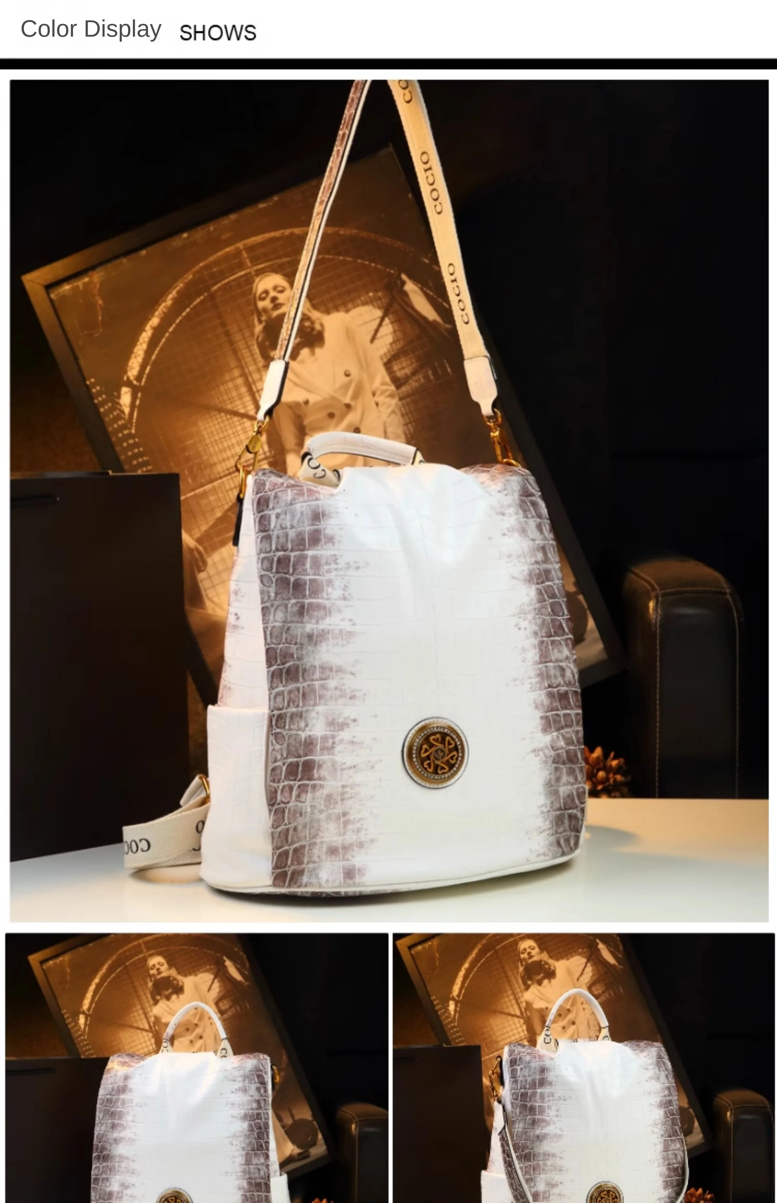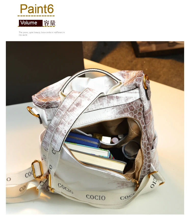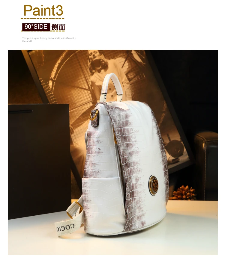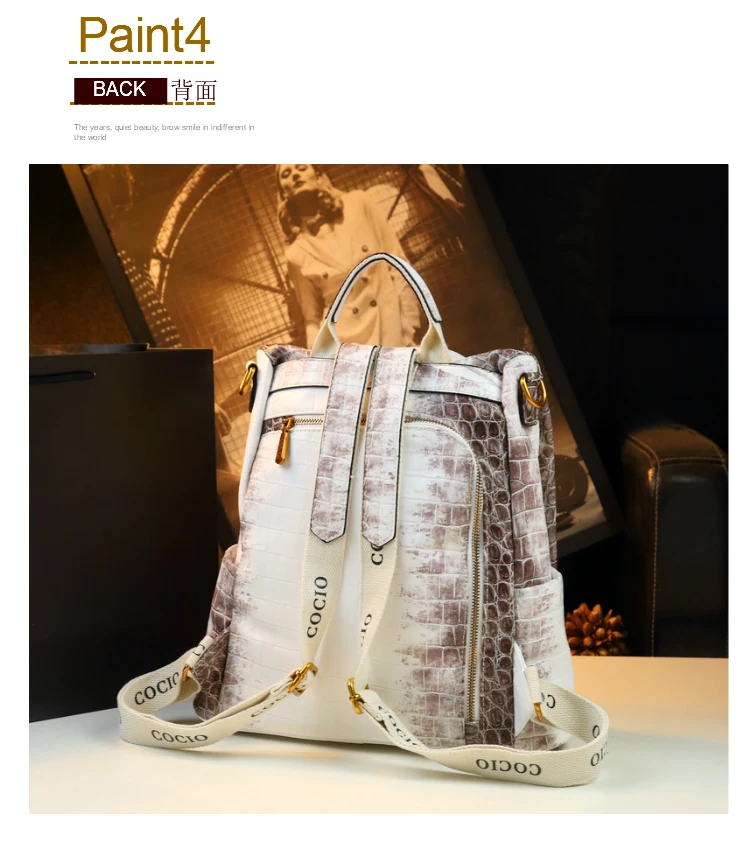 White Leather Crocodile Women Backpack 2024 New Large Capacity Commuter Travel Backpacks Multi-functional Shoulder School Bags