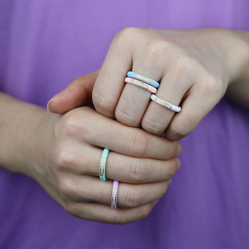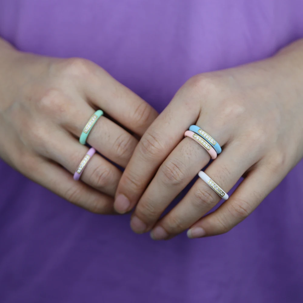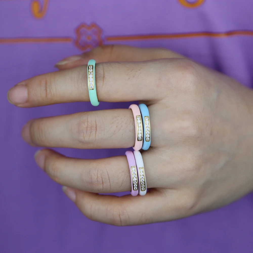 wholesale Pastel Enamel Band CZ Jewelry For Women Charm Gold Color Rainbow Colorful Fashion Neon Round Stacking Finger Rings