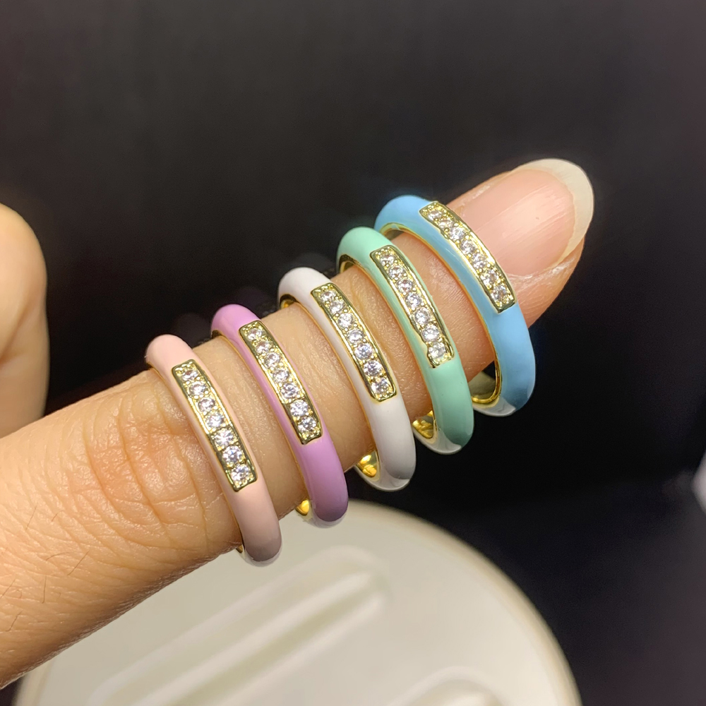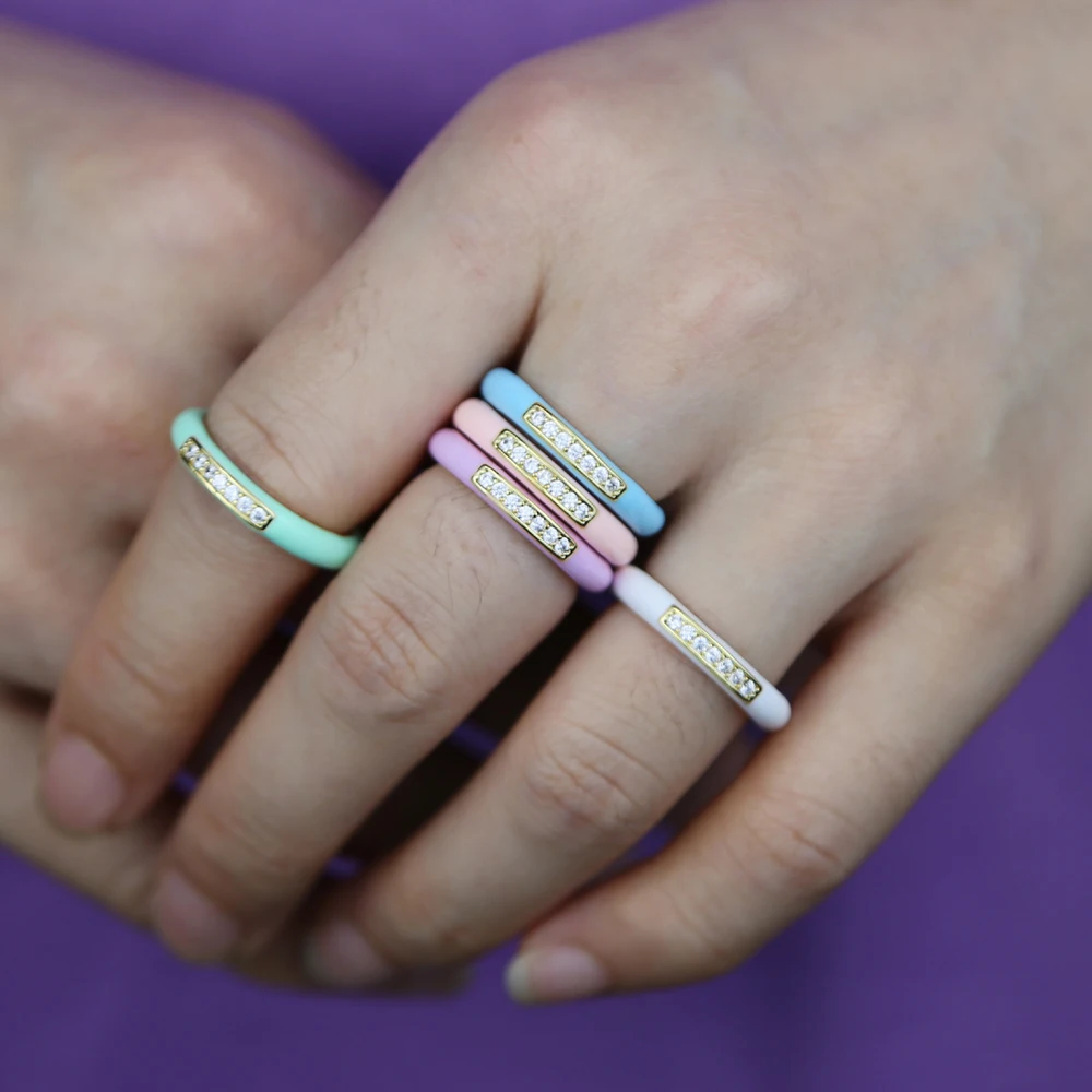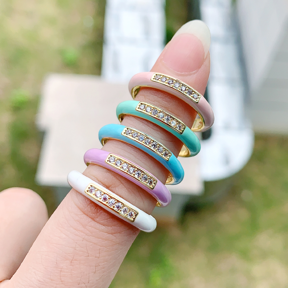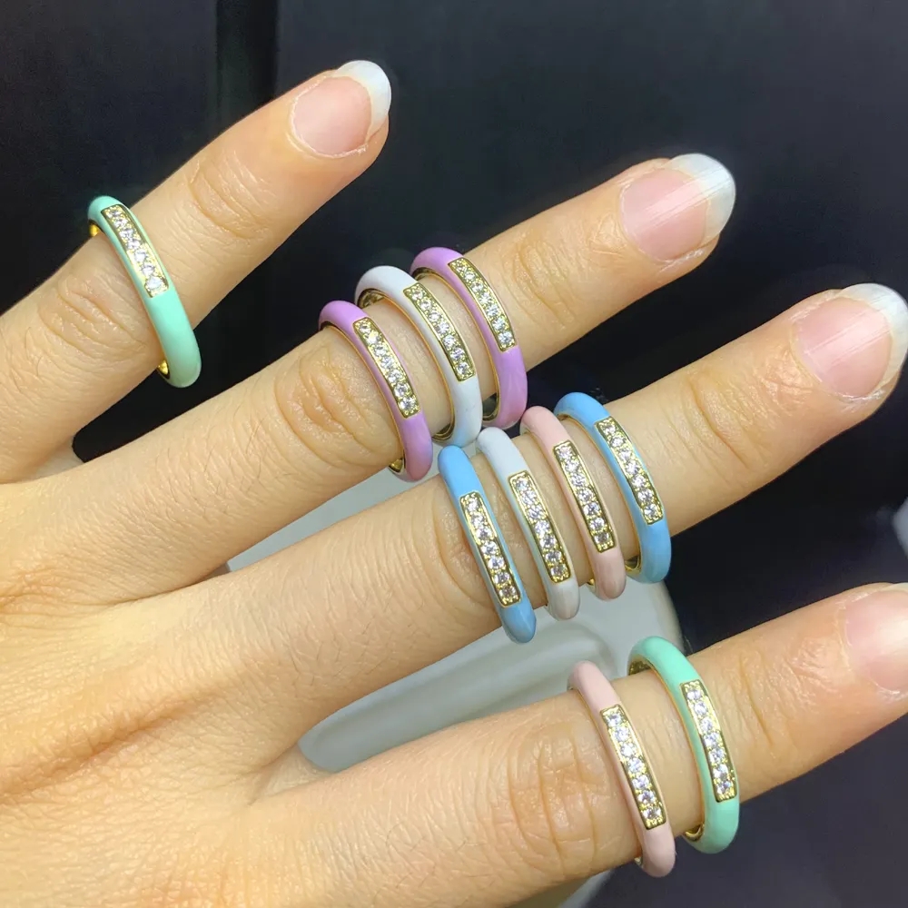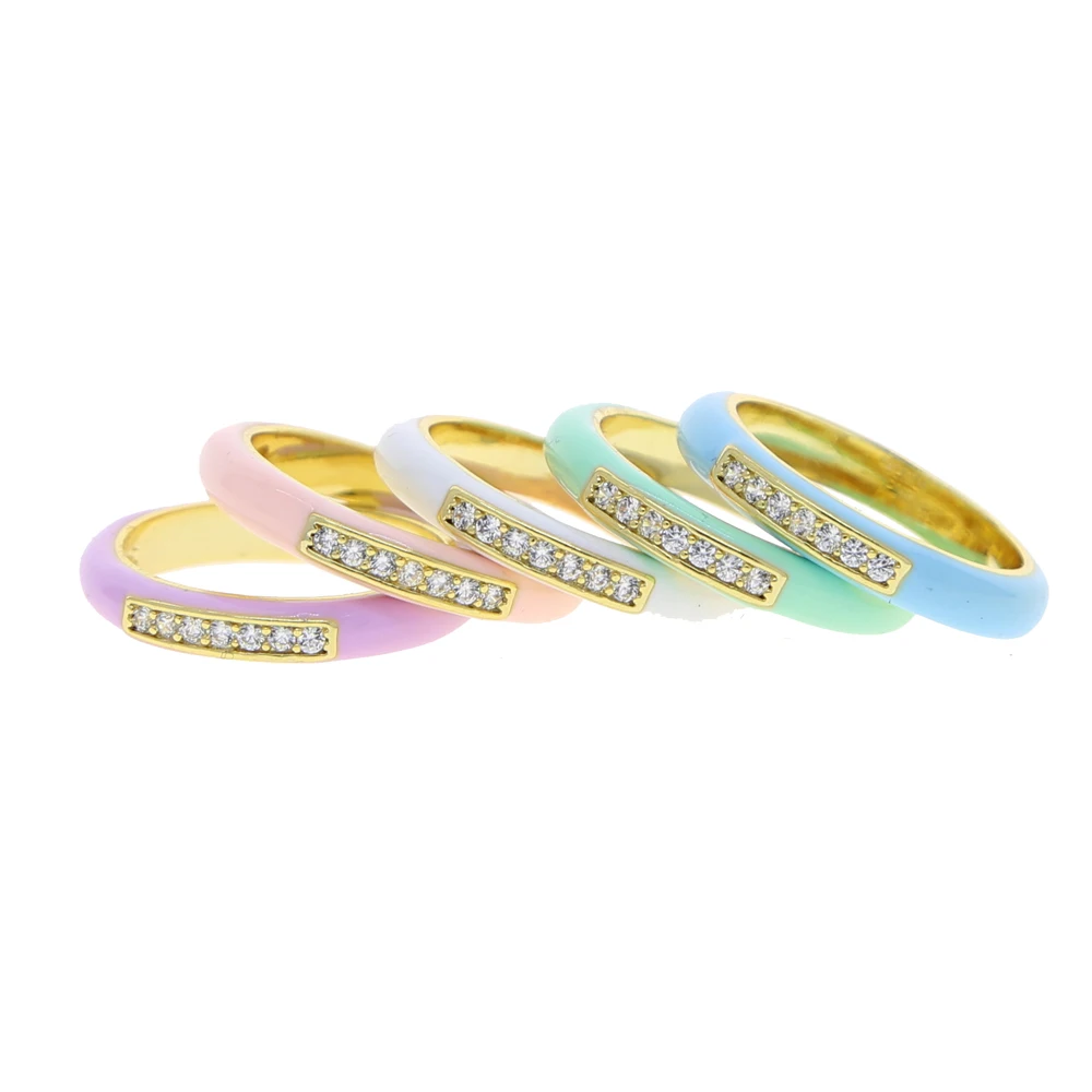 New arrived Pastel Enamel Band CZ jewelry For Women charm Gold Plated Rainbow Colorful fashion Neon Round Stacking Finger Rings
