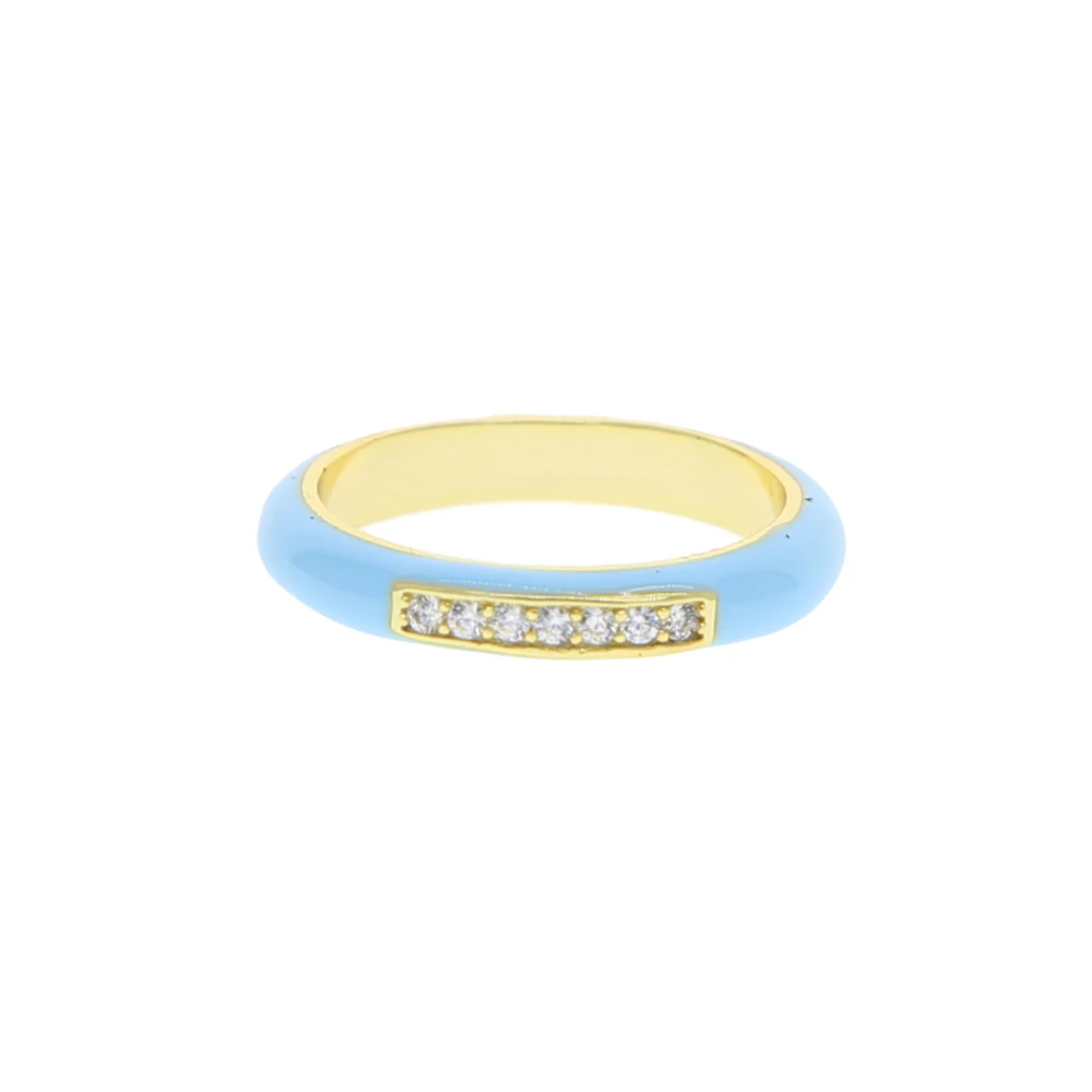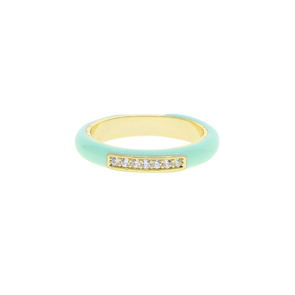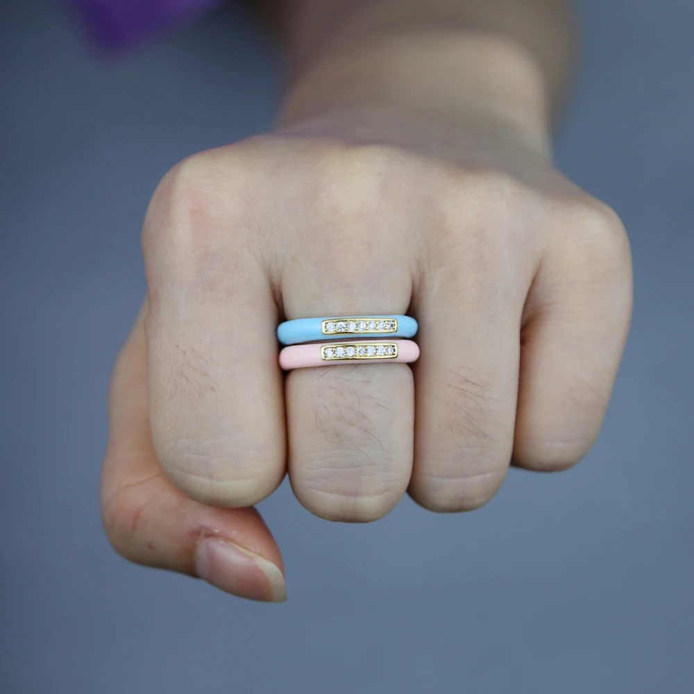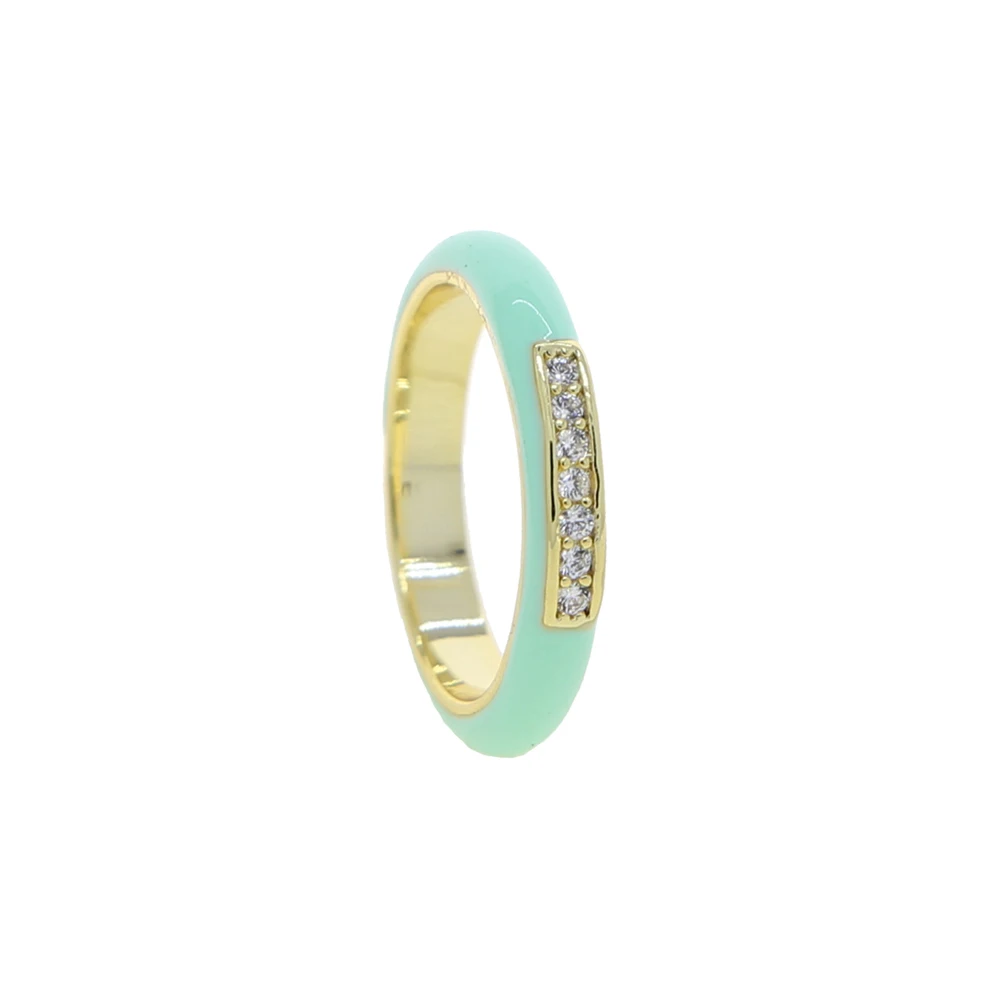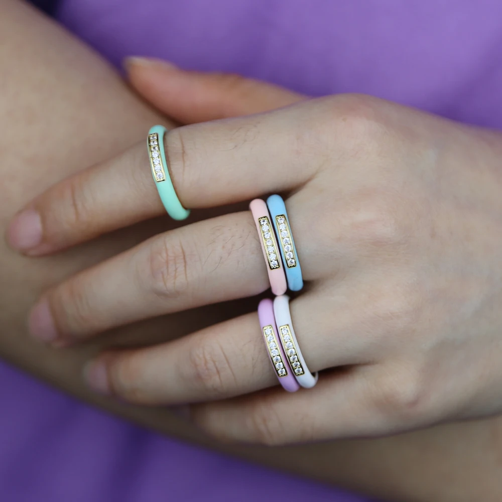 New arrived Pastel Enamel Band CZ jewelry For Women charm Gold Plated Rainbow Colorful fashion Neon Round Stacking Finger Rings
