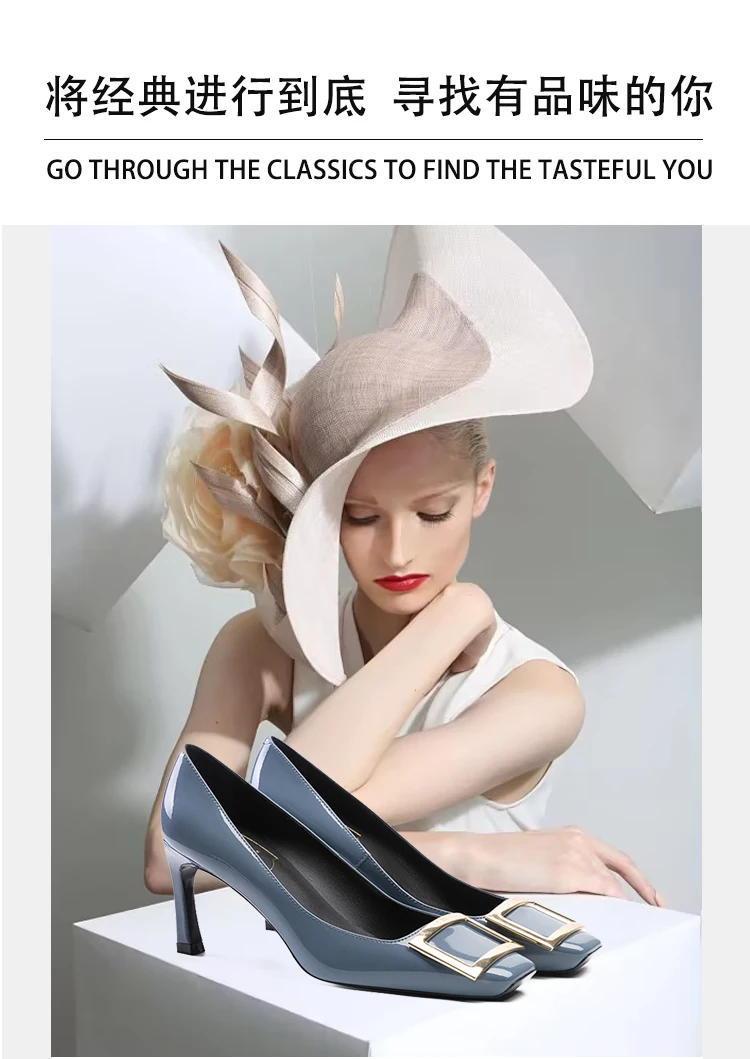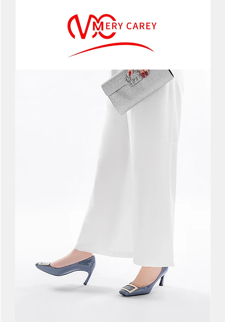 woman 2024 trend Heels for women Metal decoration Luxury Brand Pumps Square toe High Heels Fashion Party Elegant Ladies Shoes