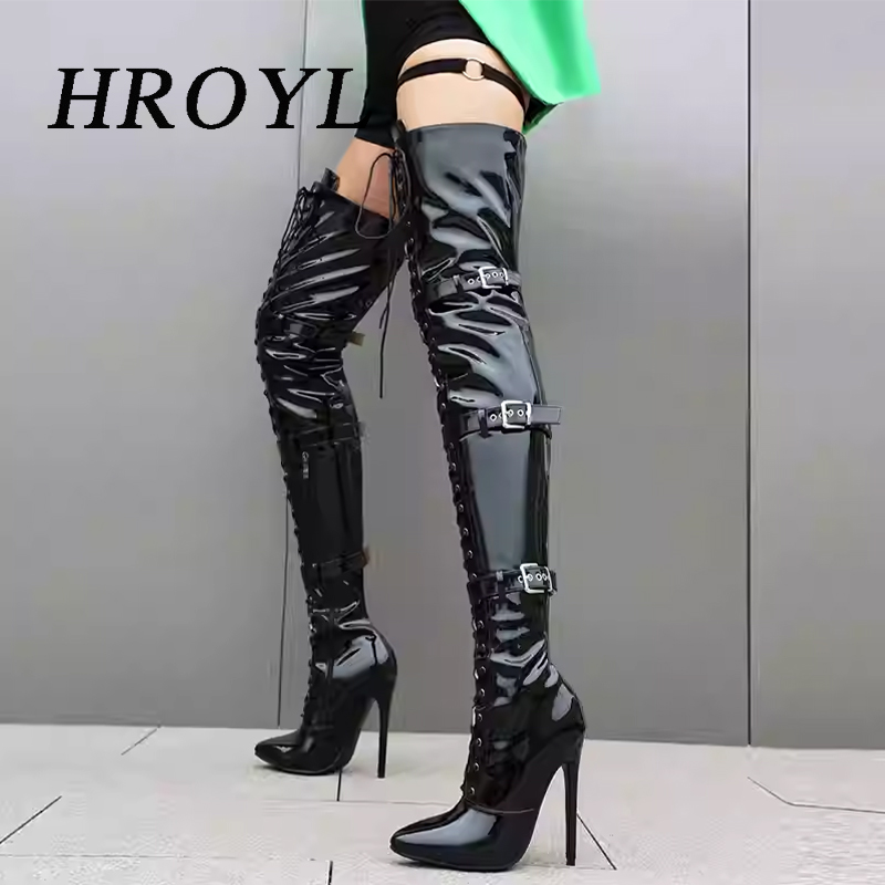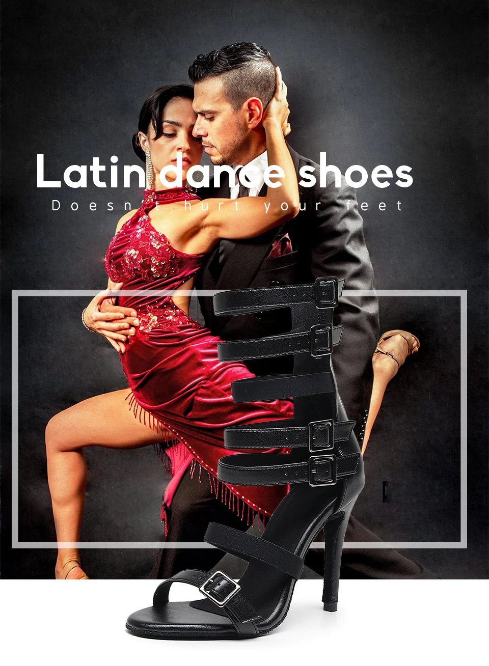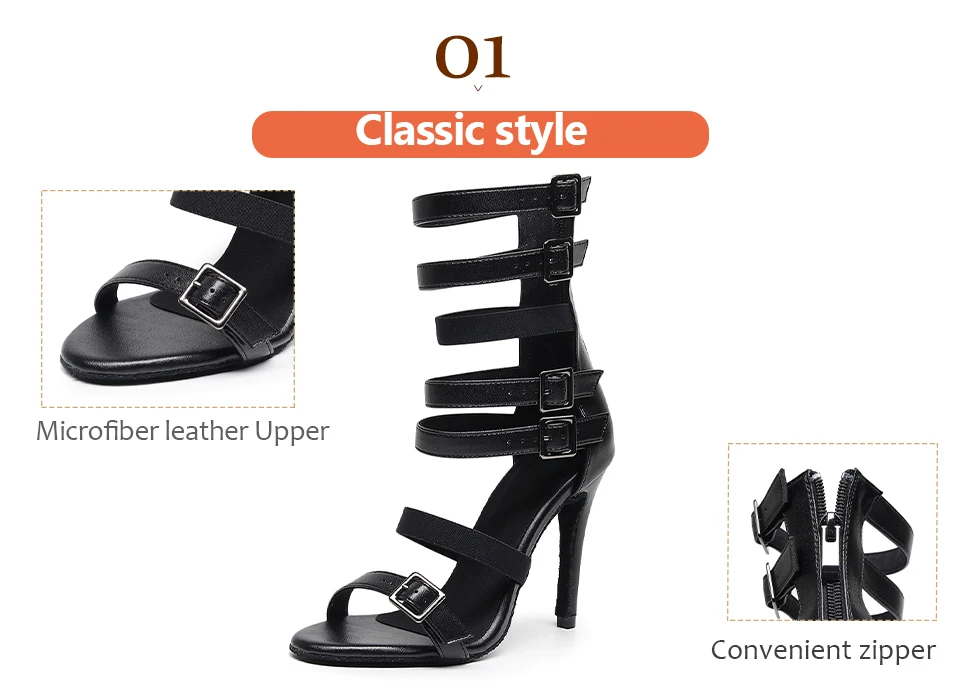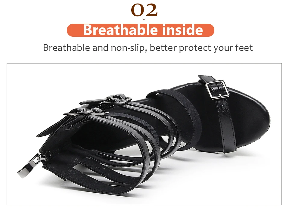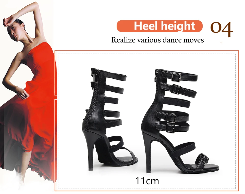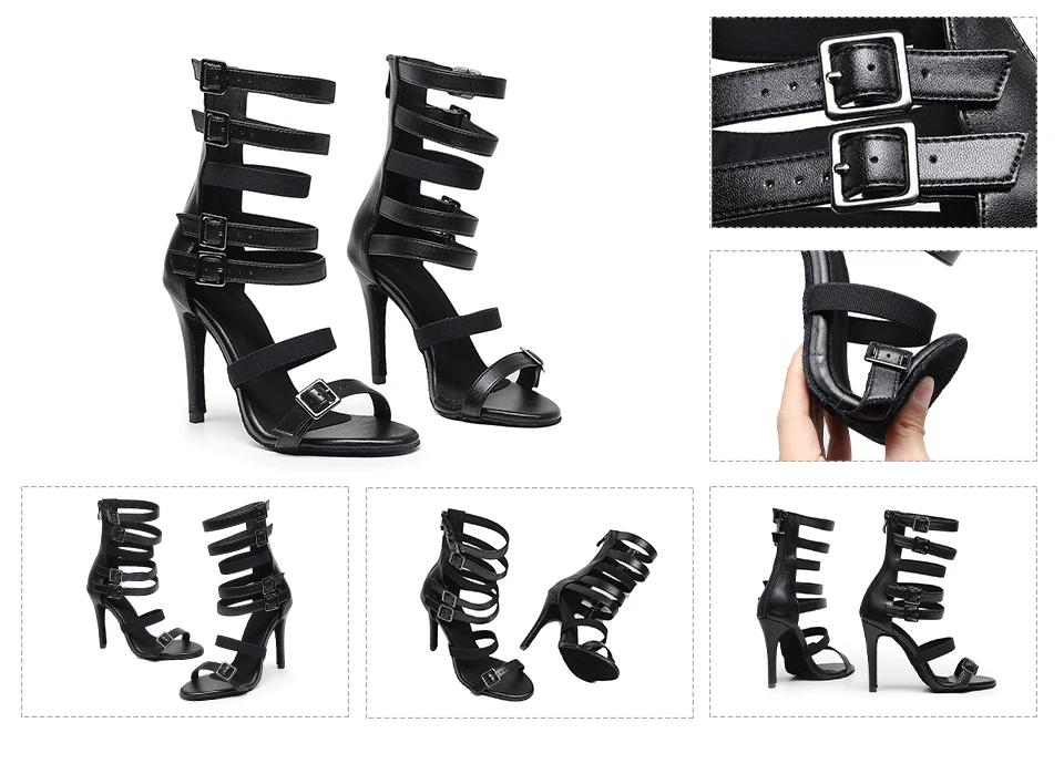Woman Black Dance Shoes Boots Leather Sexy Stilettos Girls Dance Shoes Adjustable straps Thin Heels Ladies Women Dancing Shoes