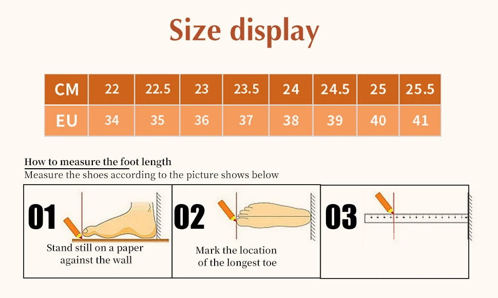 Size Tip:Please Measure your feet length before place the order, then refer to the size chart to choose the size according to your feet length.
