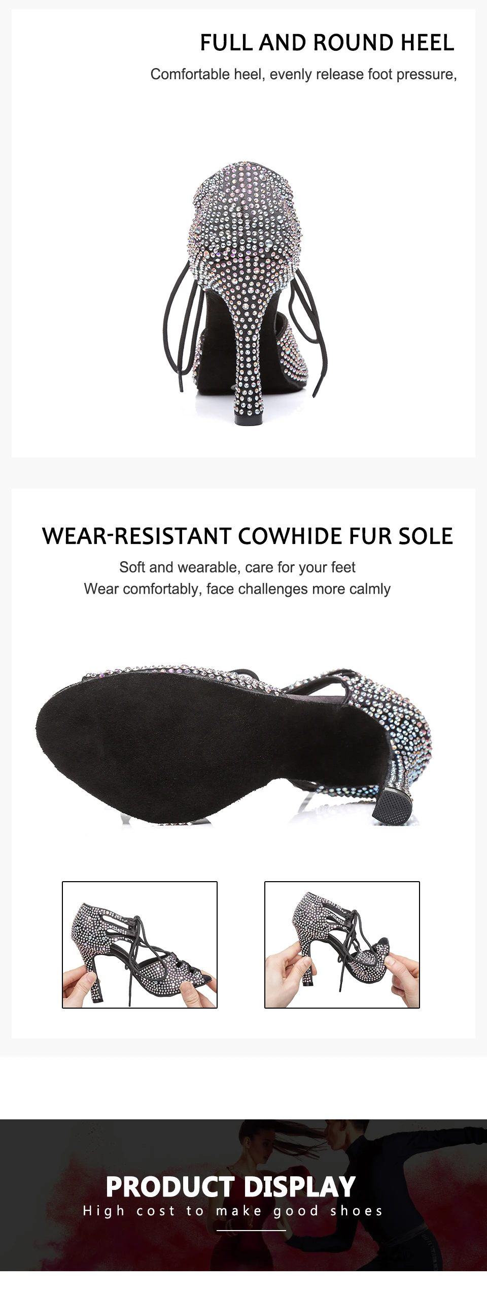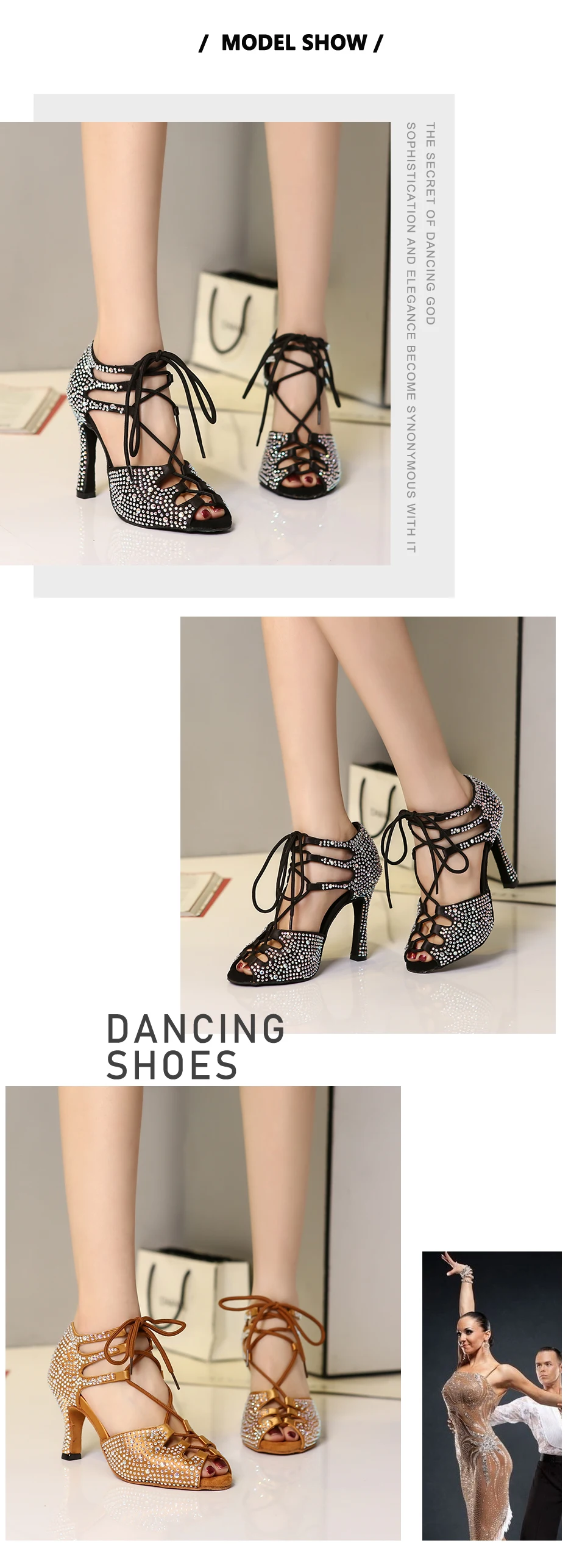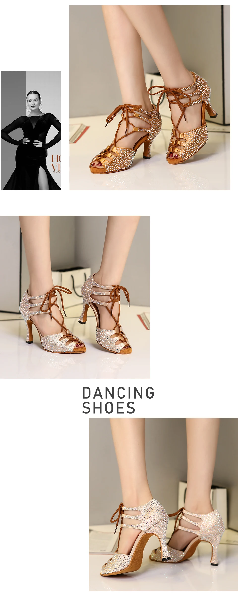 Woman Rhinestone Dance Shoes lace-up Dance Boots Girls Ladies High Heels Salsa Boots Performance Women Ballroom Dancing shoes
