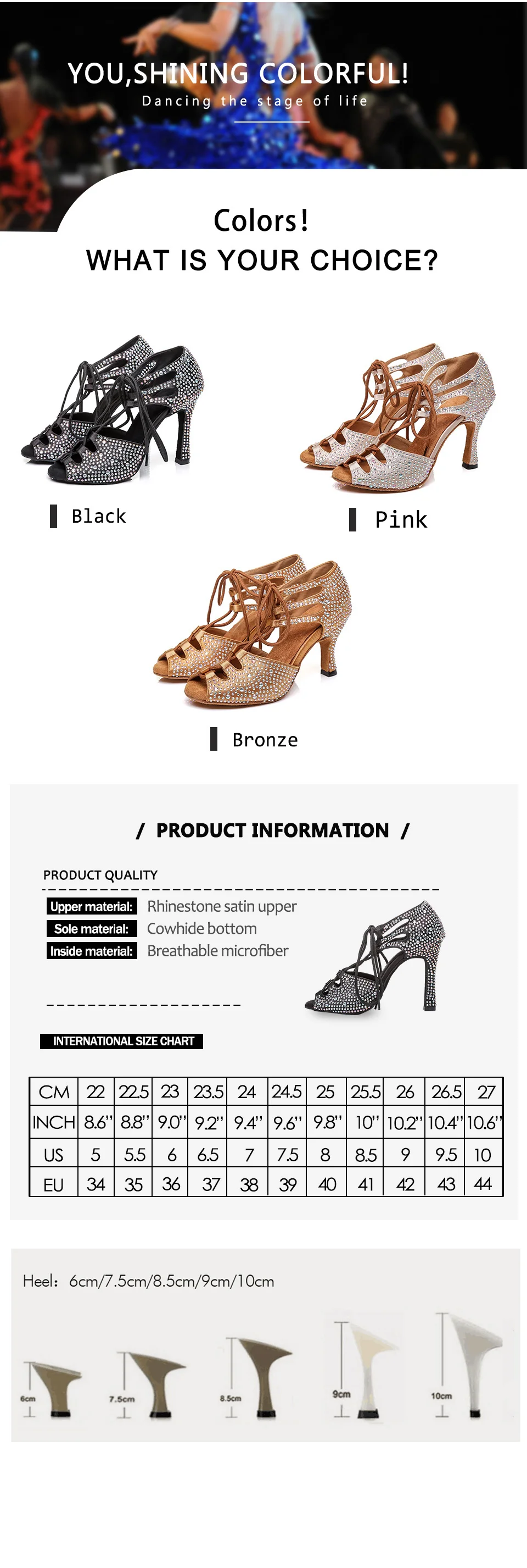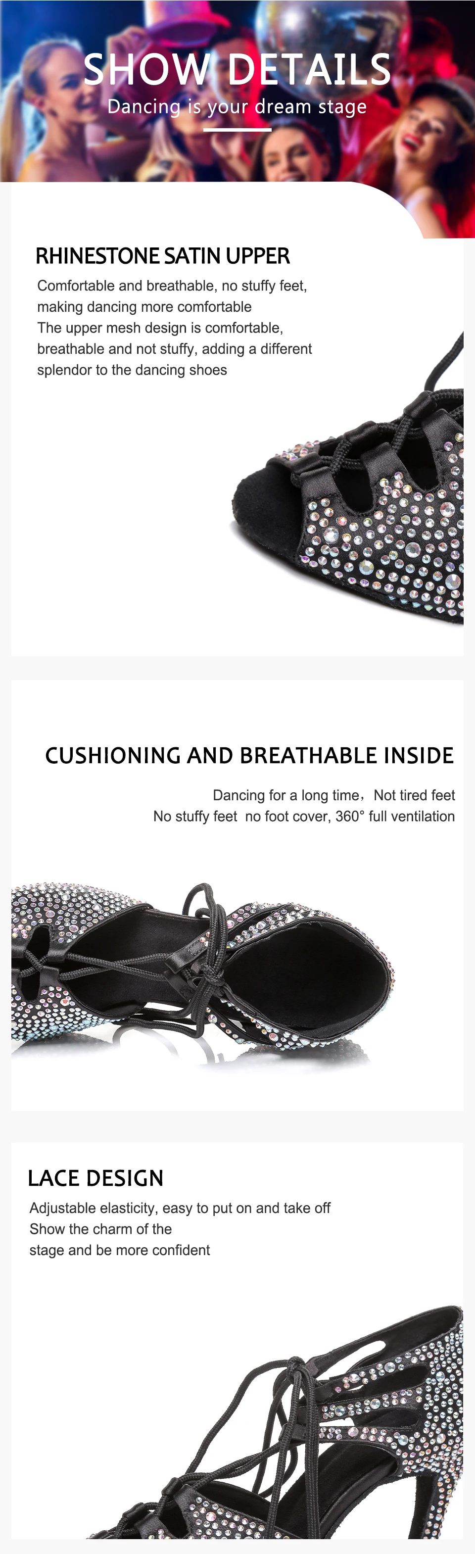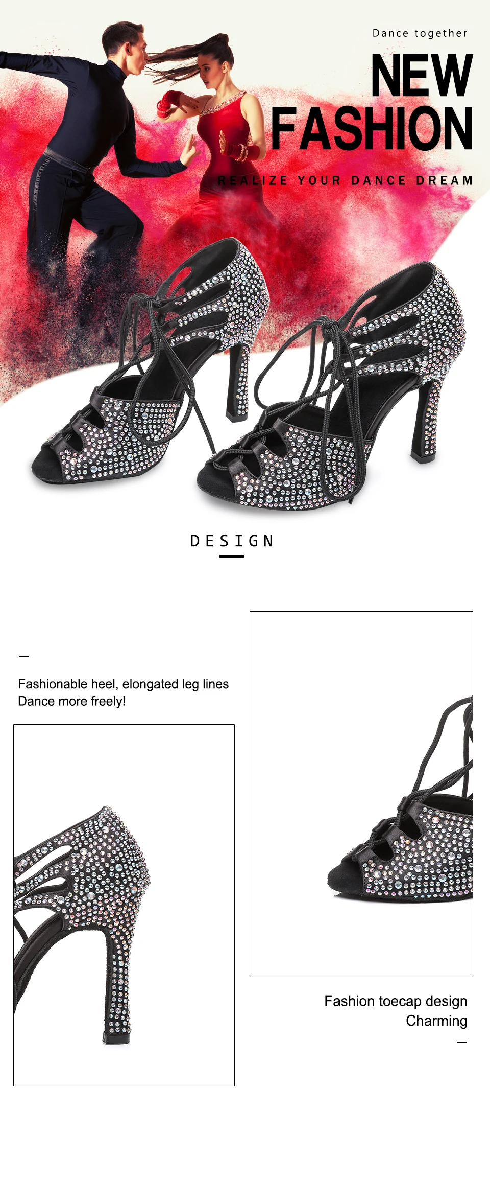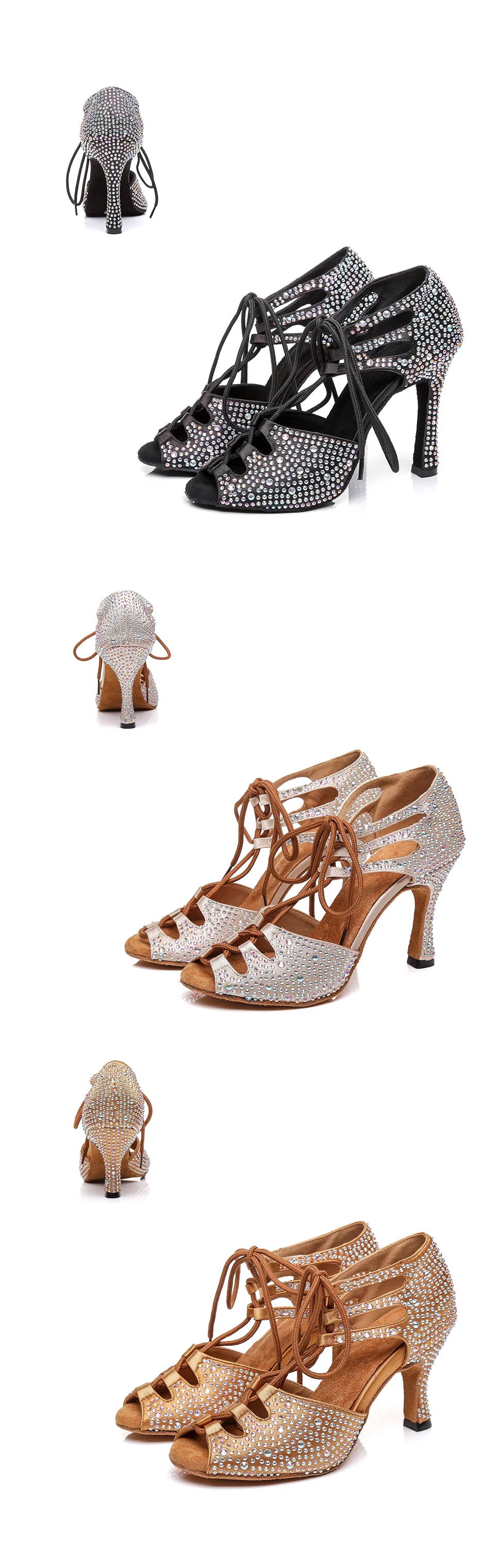 Woman Rhinestone Dance Shoes lace-up Dance Boots Girls Ladies High Heels Salsa Boots Performance Women Ballroom Dancing shoes