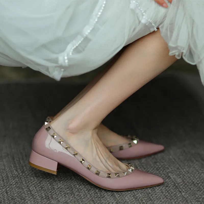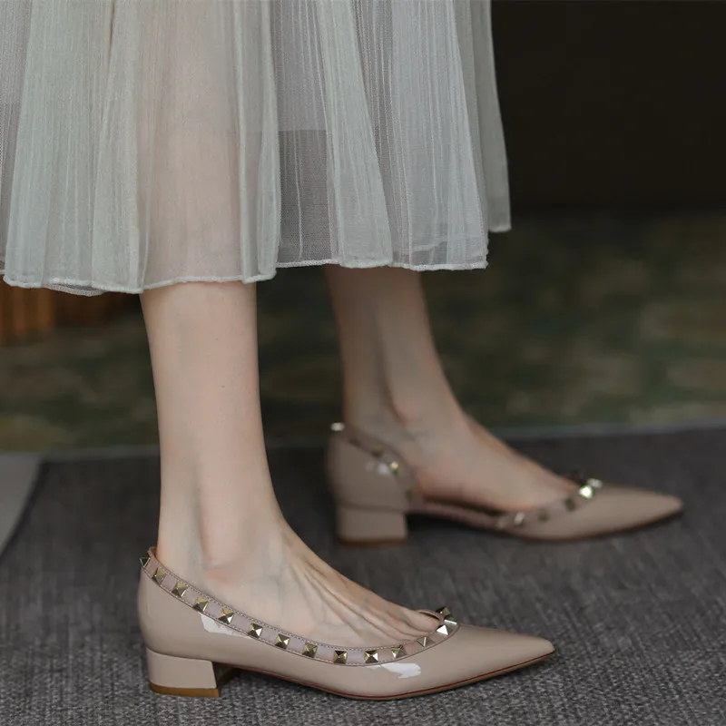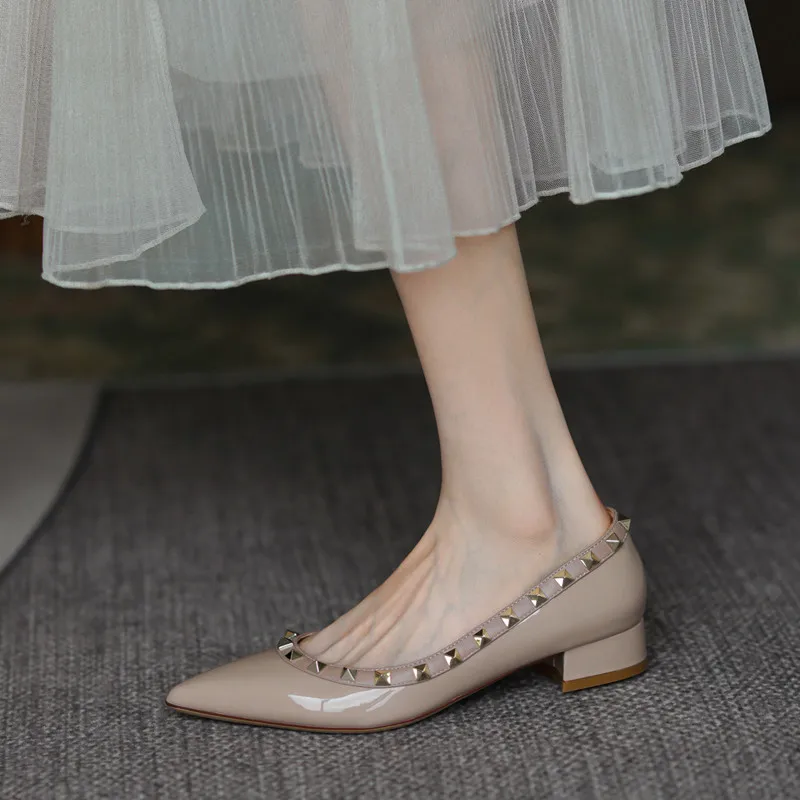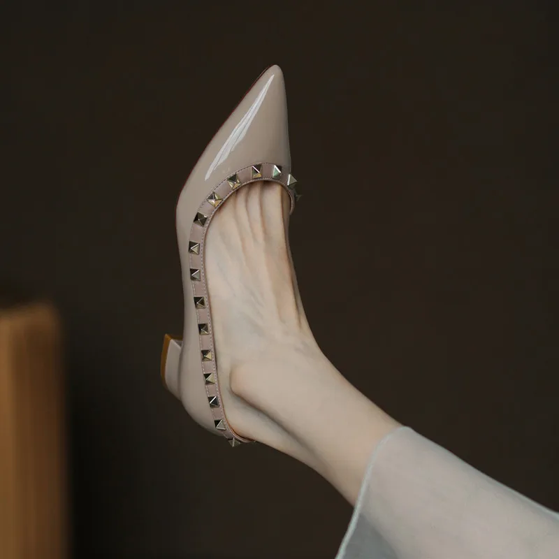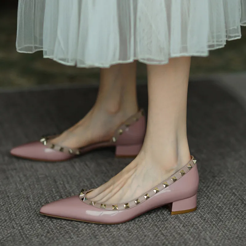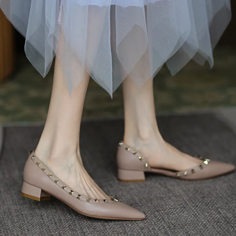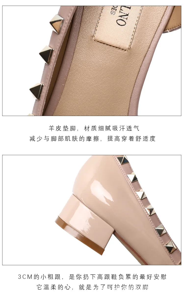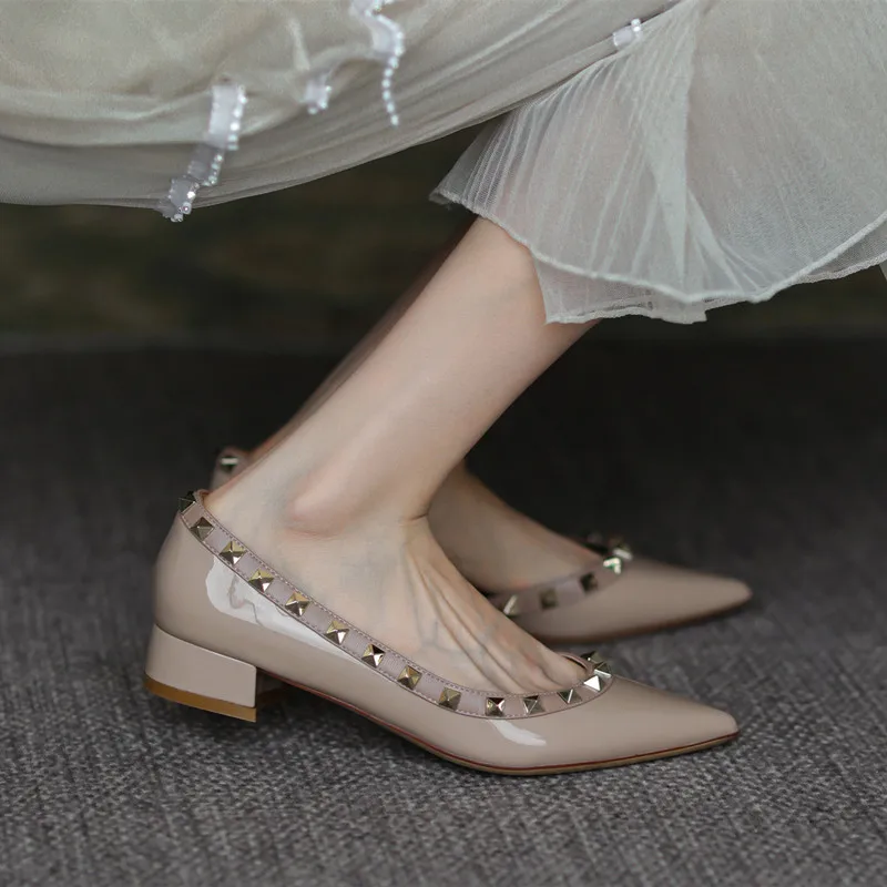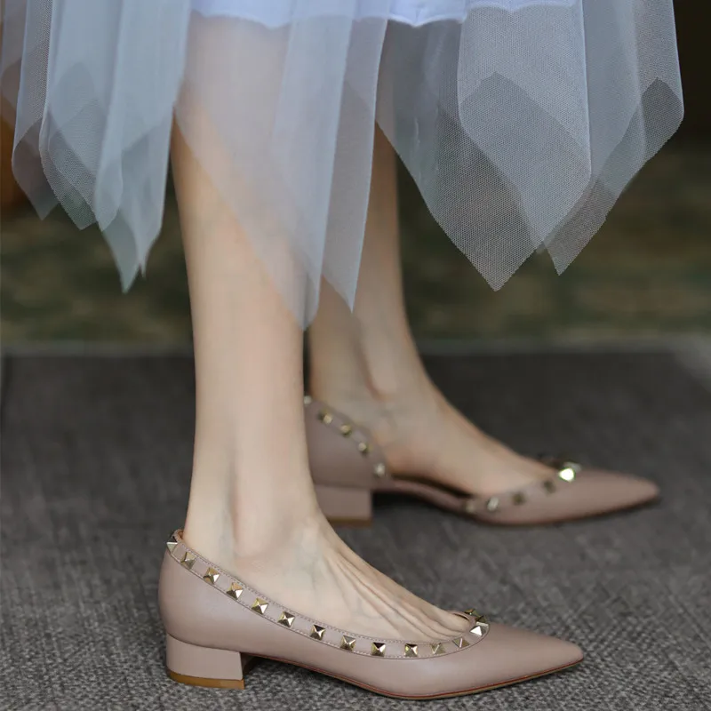 Woman shoes High Heels luxury Brand women’s shoes Designer Rivets Pumps 2025 Comfortable Chunky Heel 3cm Elegant Ladies shoes