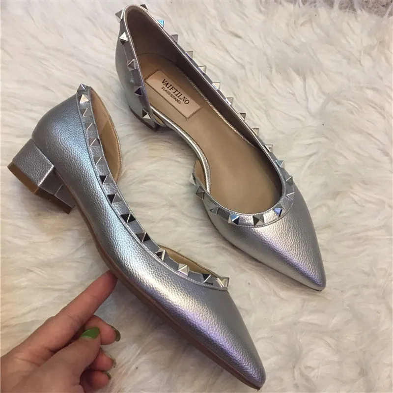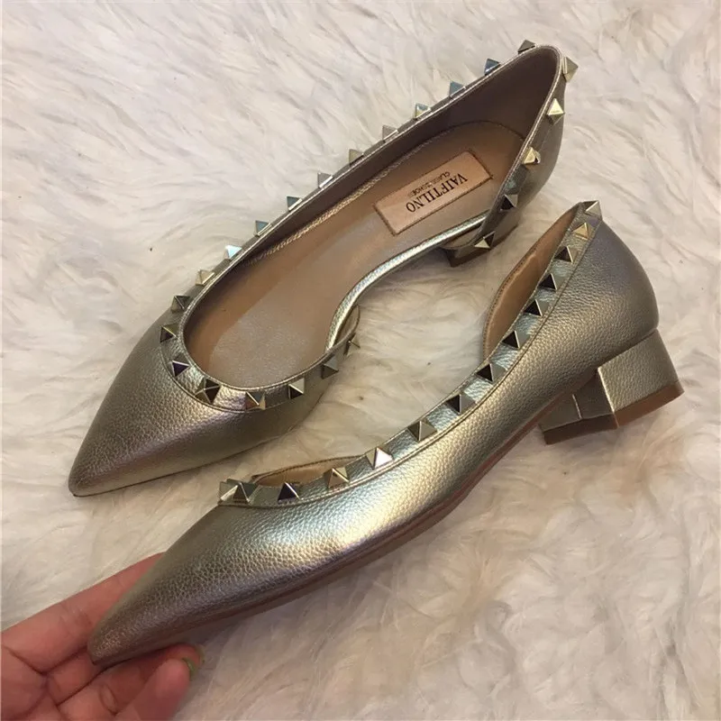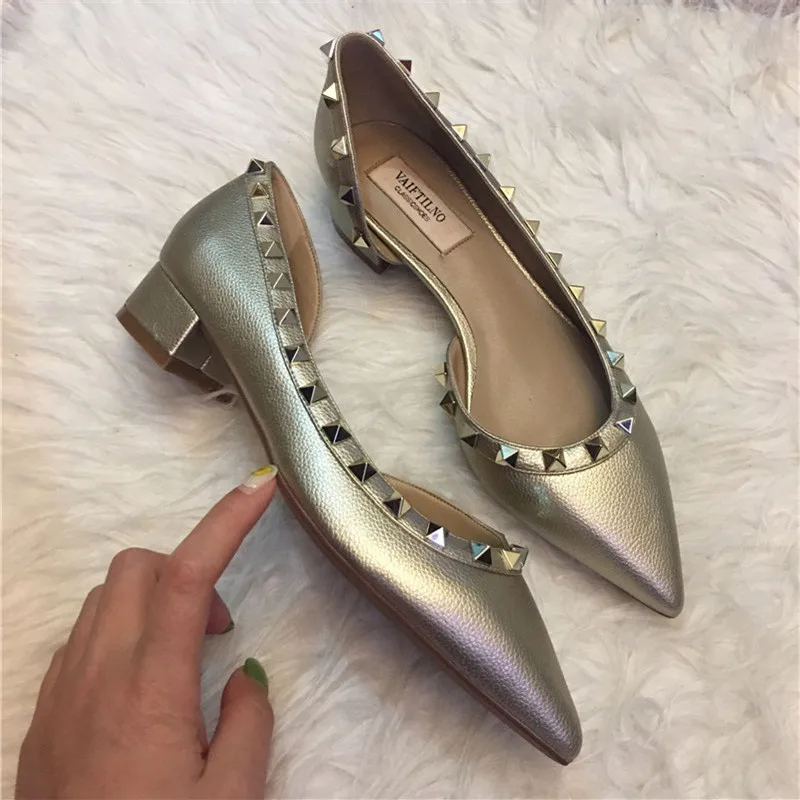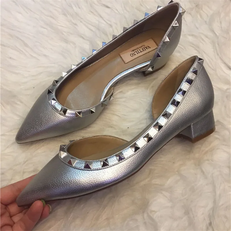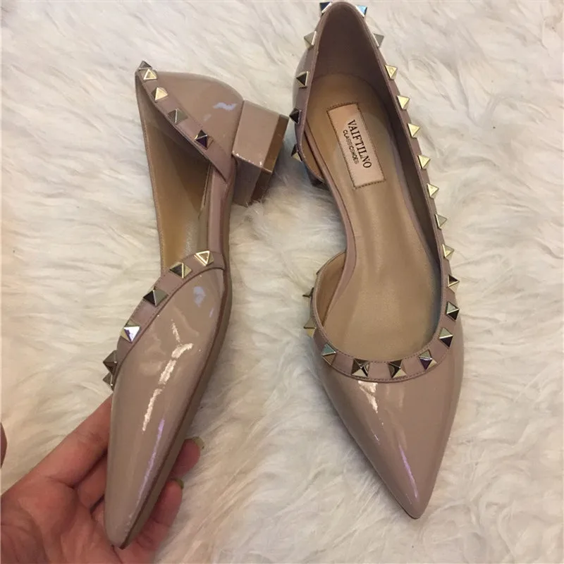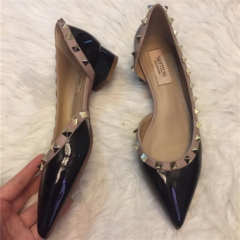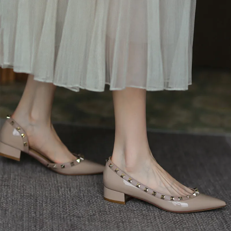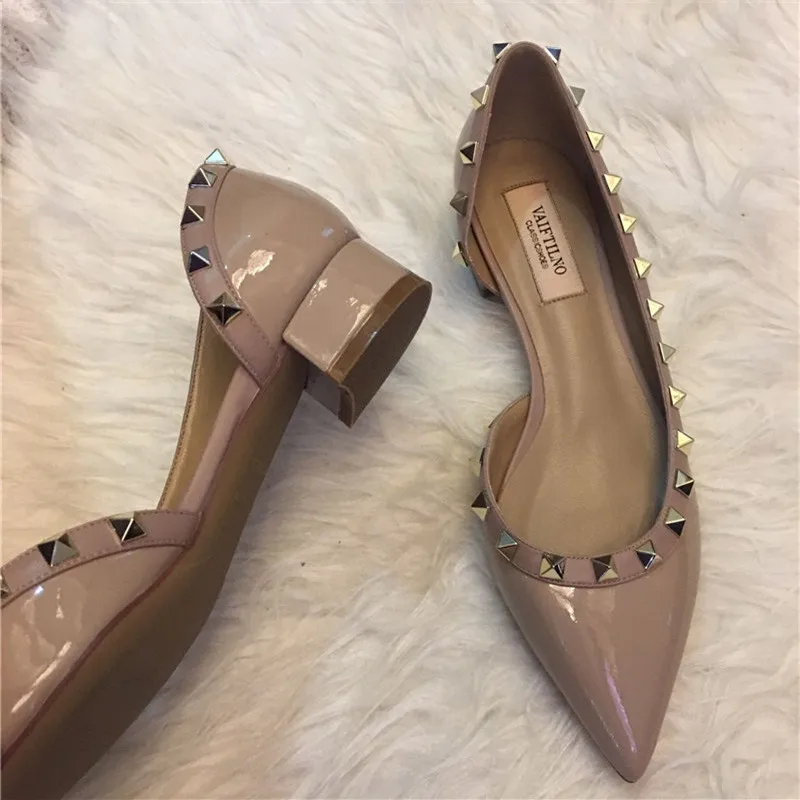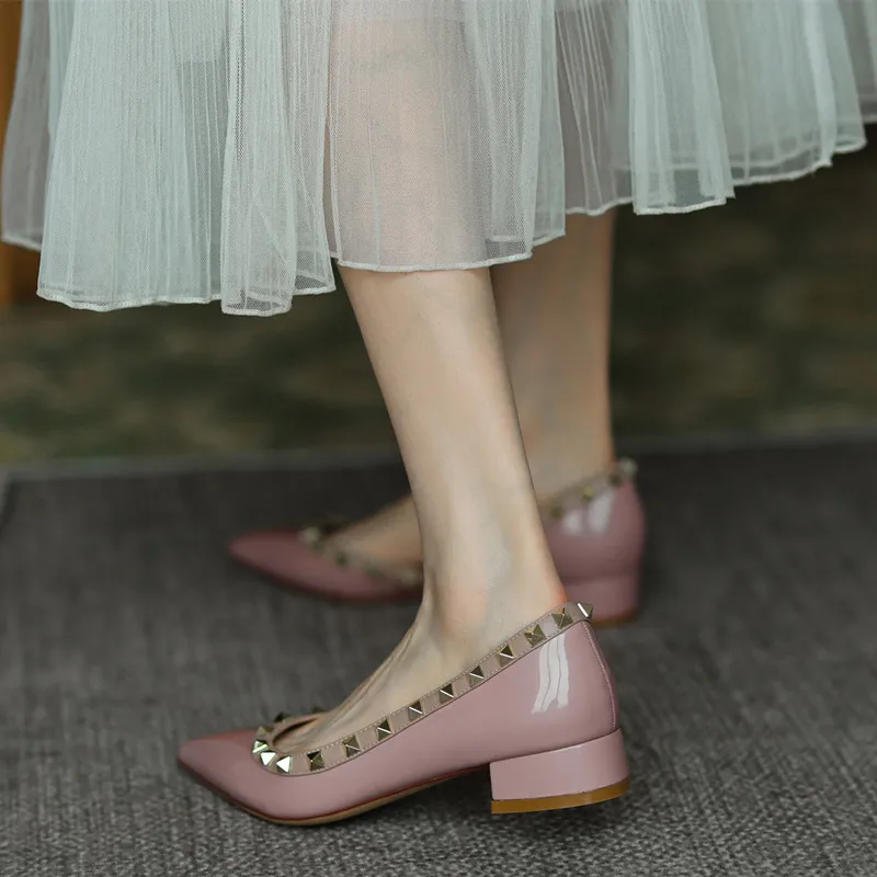 Woman shoes High Heels luxury Brand women’s shoes Designer Rivets Pumps 2025 Comfortable Chunky Heel 3cm Elegant Ladies shoes