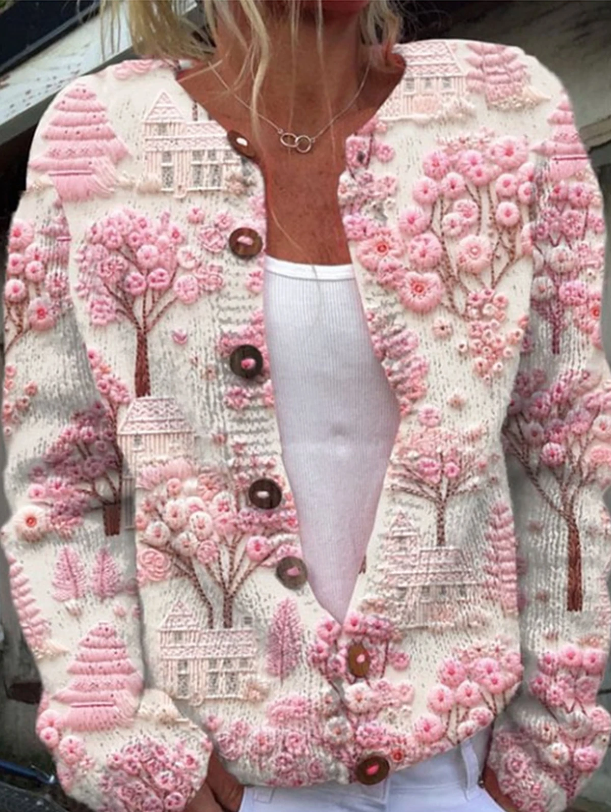 Women Cardigan Knitted Sweater Color Block Long Sleeve Plush Lining Jumper Cardigans Casual Streetwear Fashion Coat