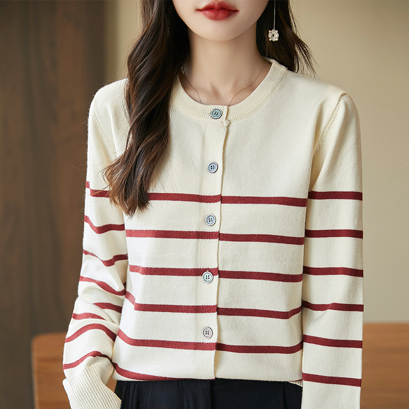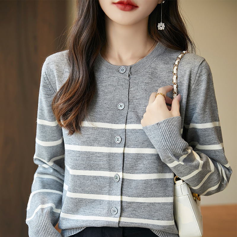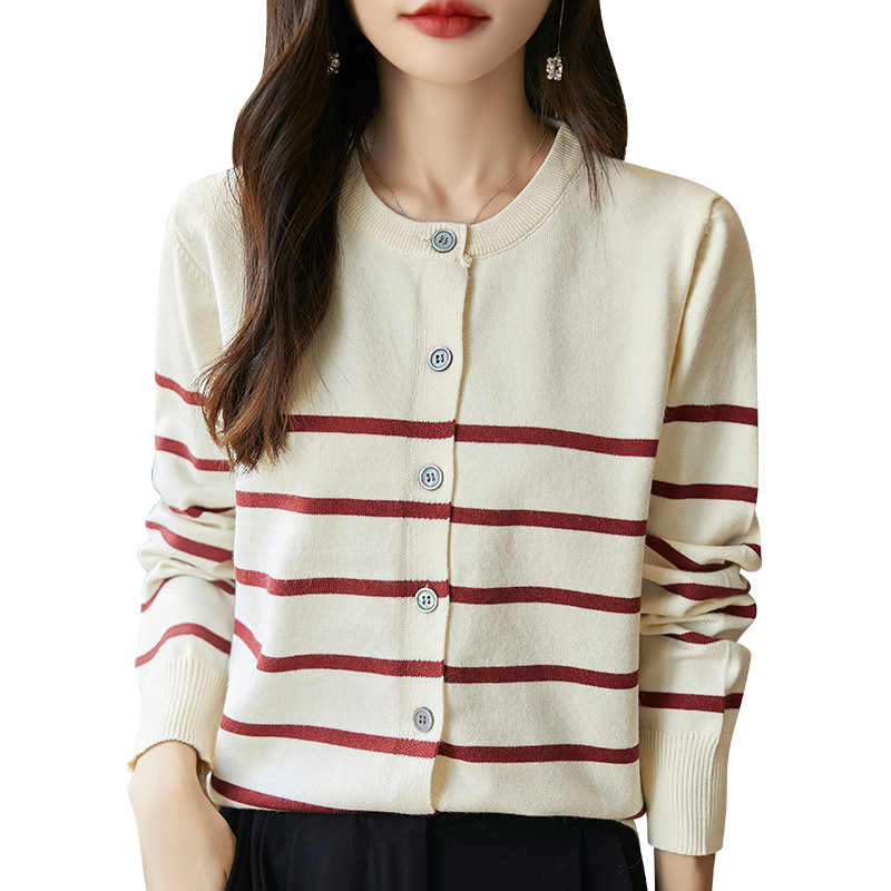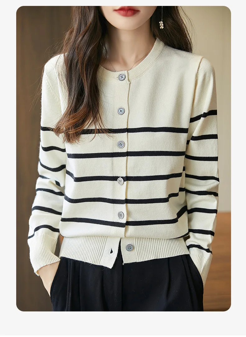 Women Cardigans 2025 Autumn Winter Striped Knitted Sweater Soft Warm Single Breasted O-neck Spring Korean Fashion Jumpers LM40