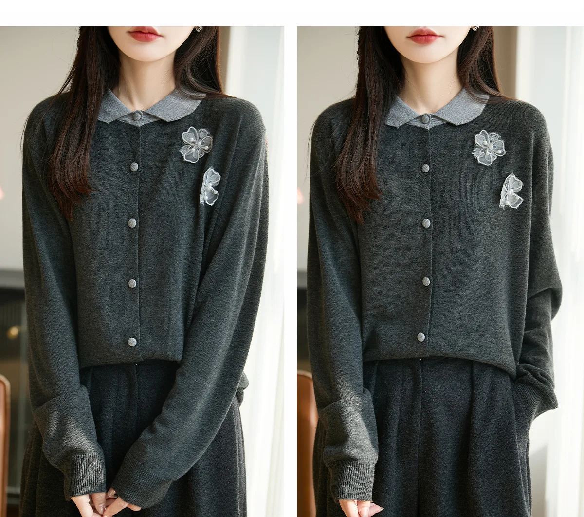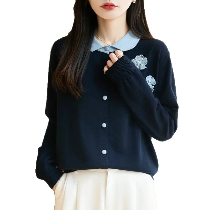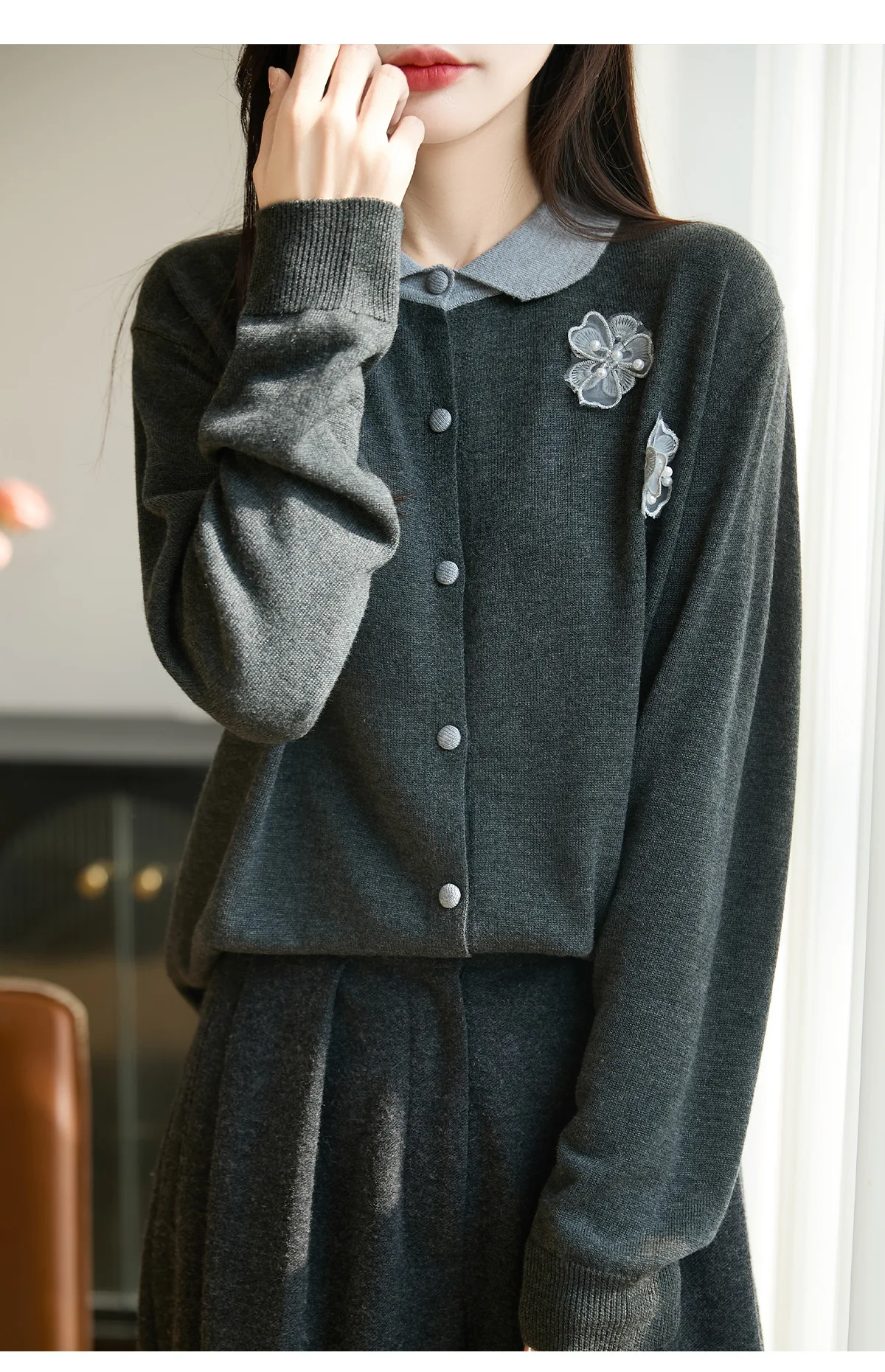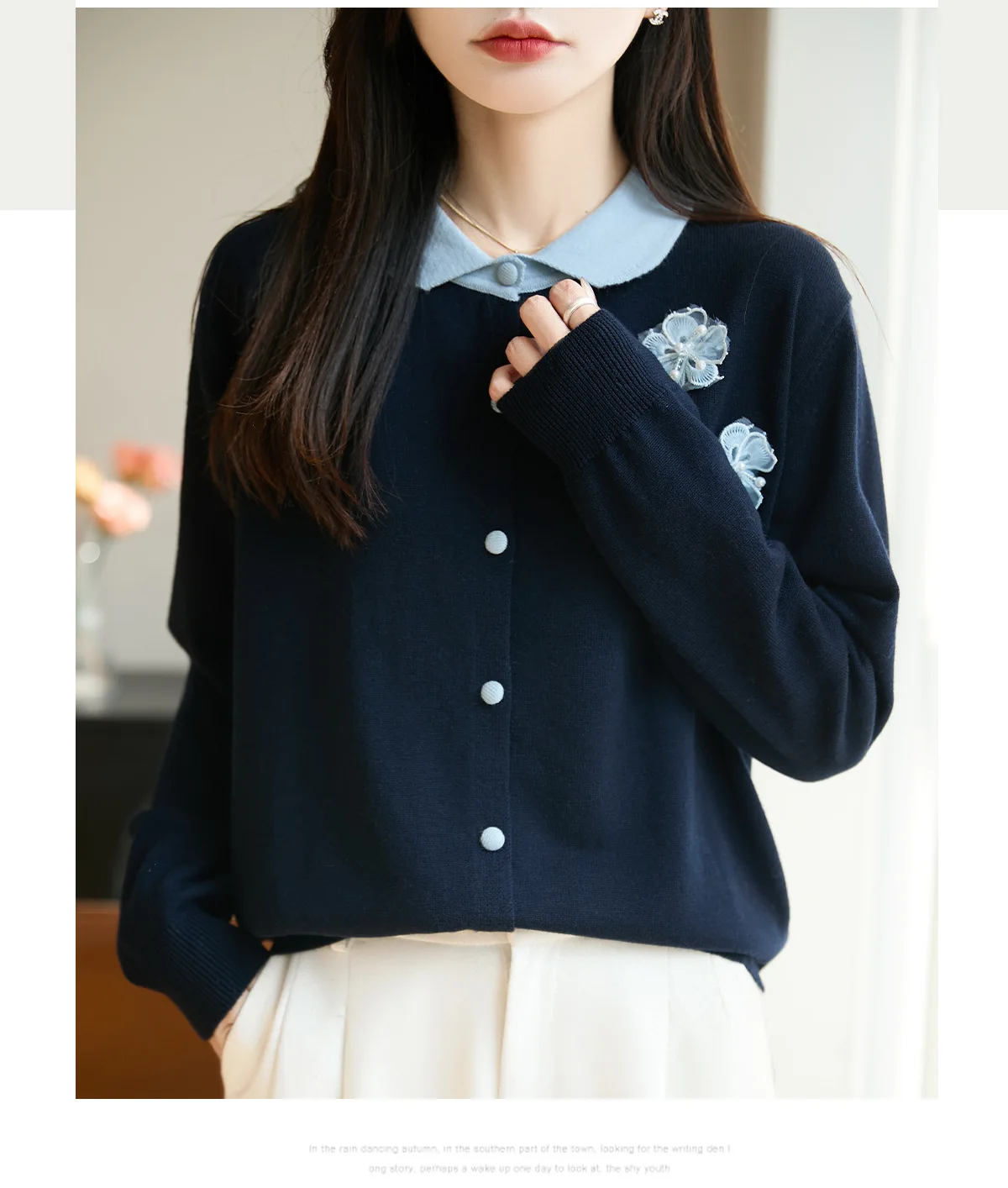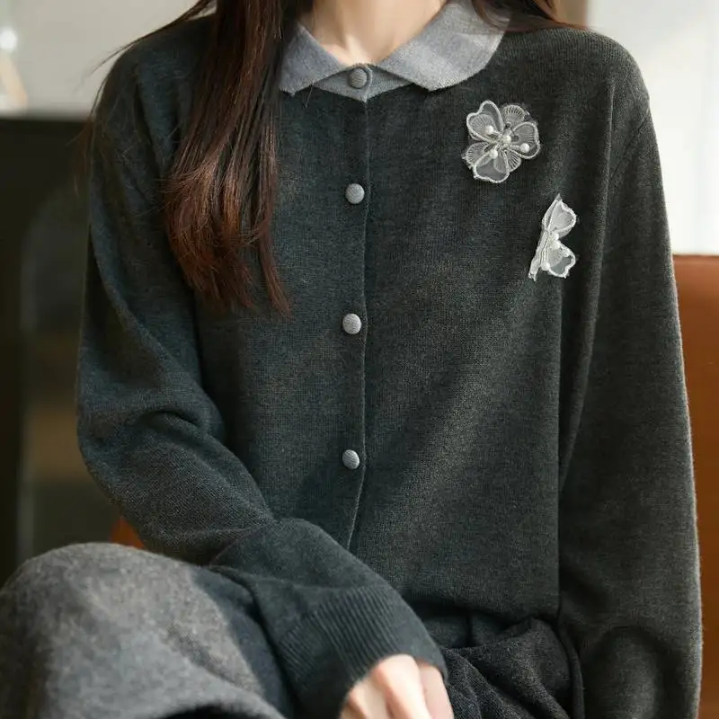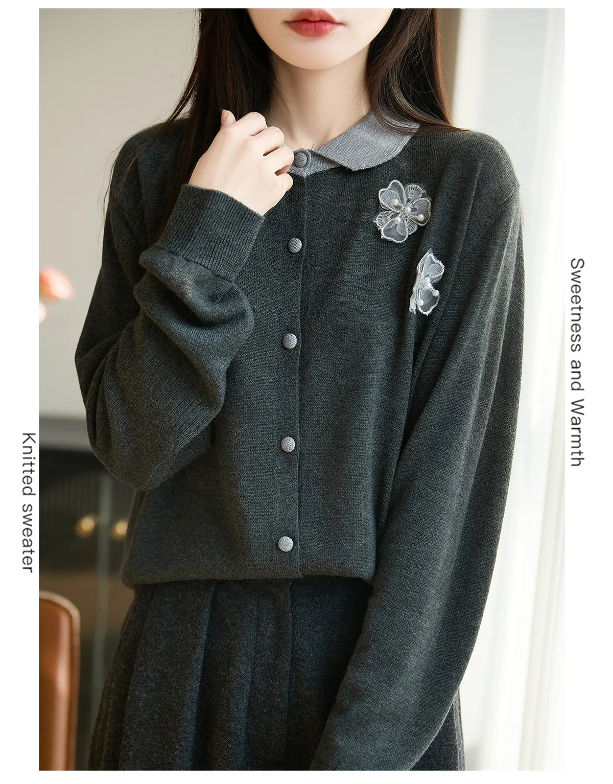 Women Cardigans Single Breasted Peter Pan Collar Autumn Winter Cardigan Sweater Warm Casual Korean Outerwear Knitted Jumpers