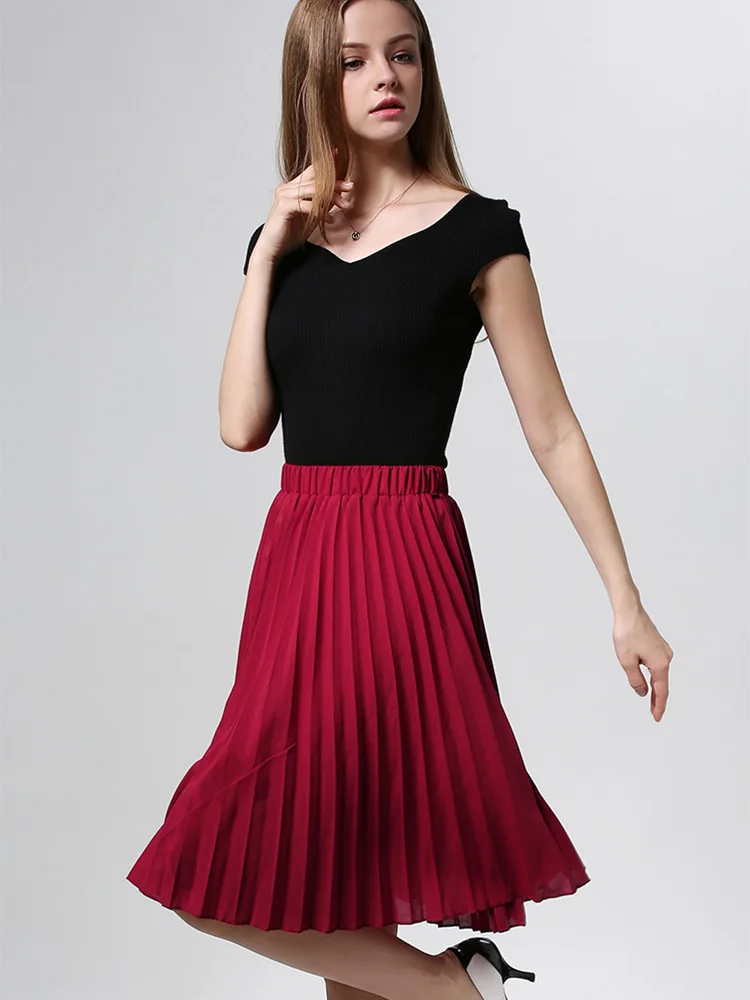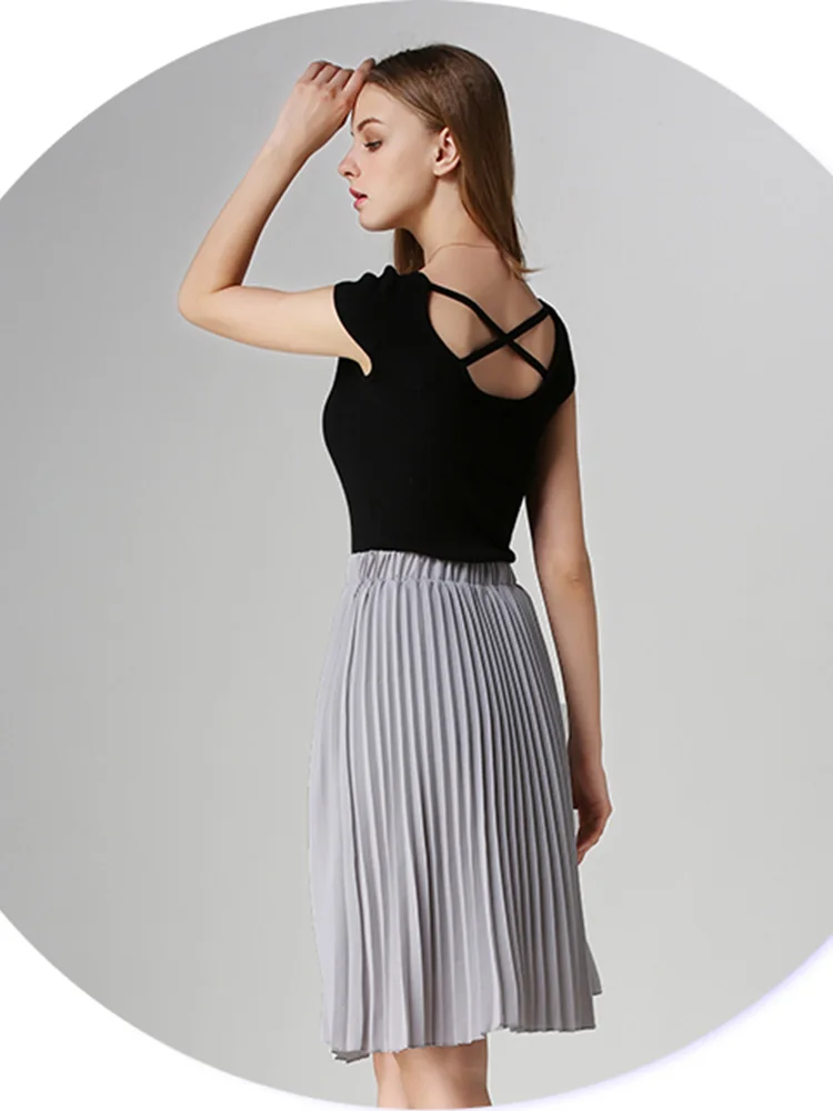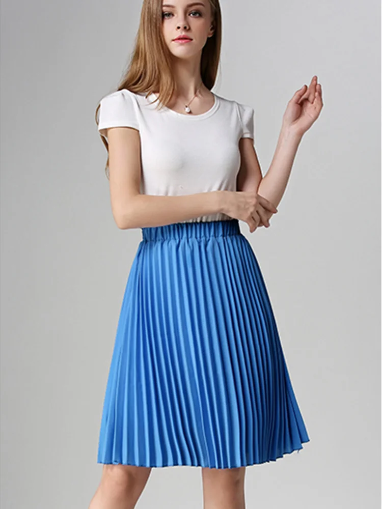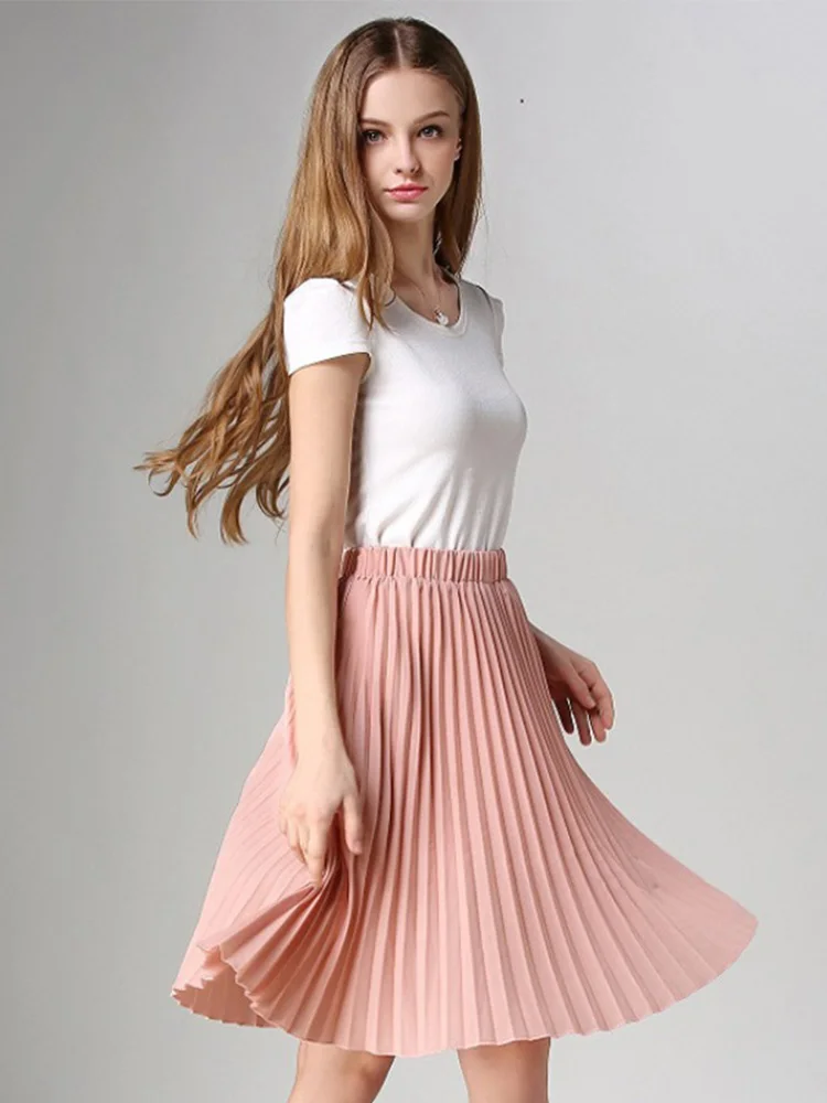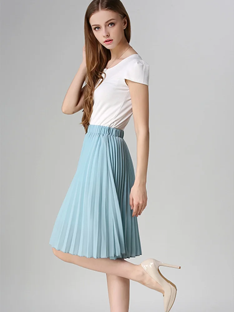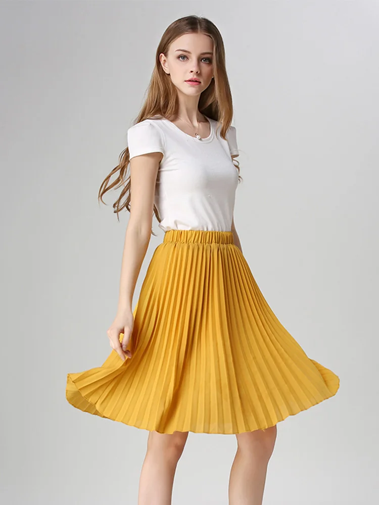 Women Chiffon Pleated Skirt Vintage High Waist Tutu Skirts Womens Saia Midi Rokken 2023 Summer Style Jupe Femme Skirt