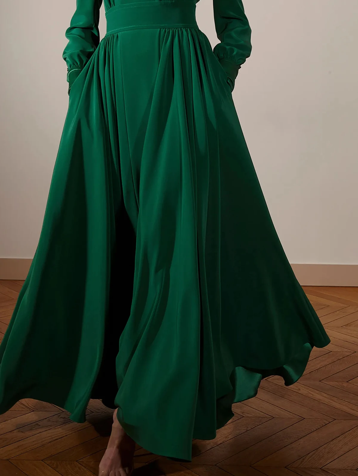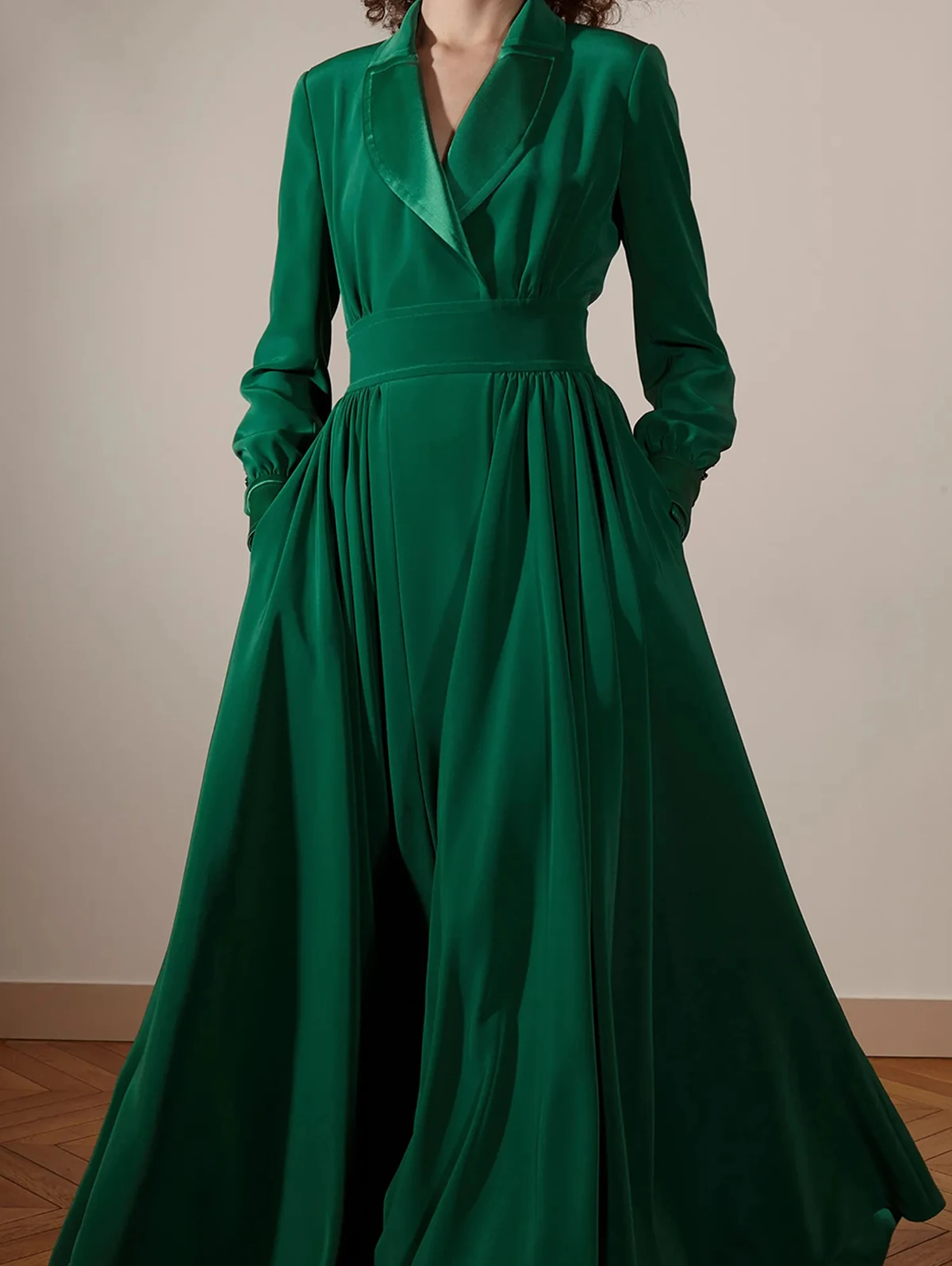 Women Clothing Long Dress Green Velvet Autumn Shawl Collar Pocket Evening Party Prom Abayas Muslim kaftan African Maxi Dress