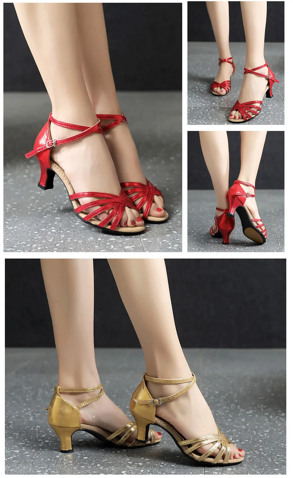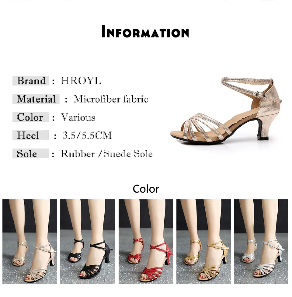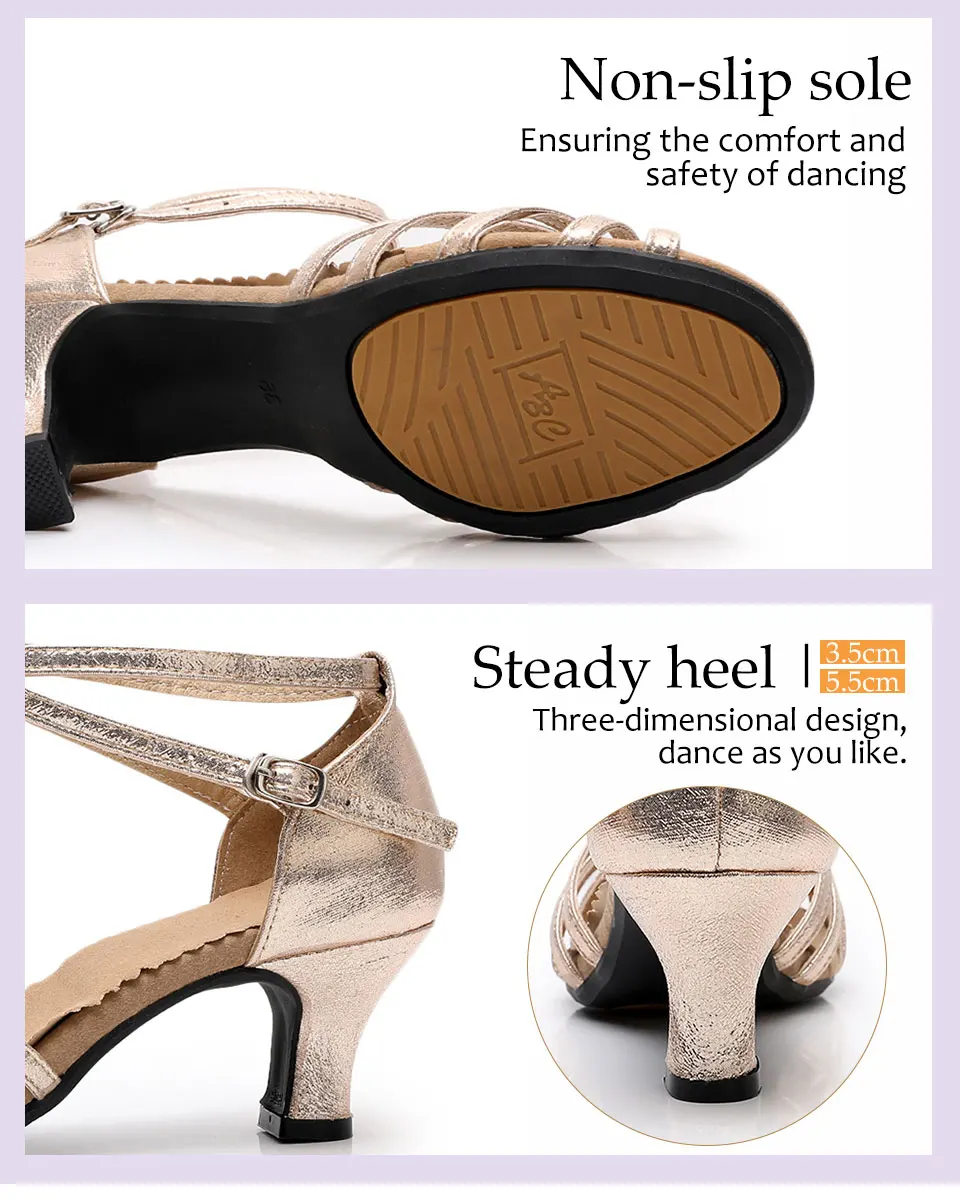 Women Dance Sandals Salsa Latin Dancing Shoes Girls Summer Ballroom Dance Shoes 3.5CM/5.5CM Rubber/Suede Sole Wedding Party Shoe