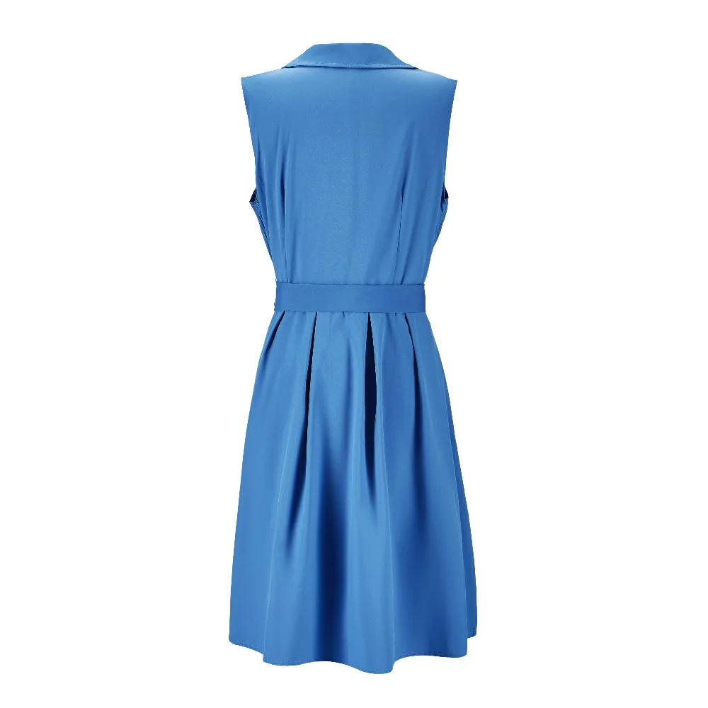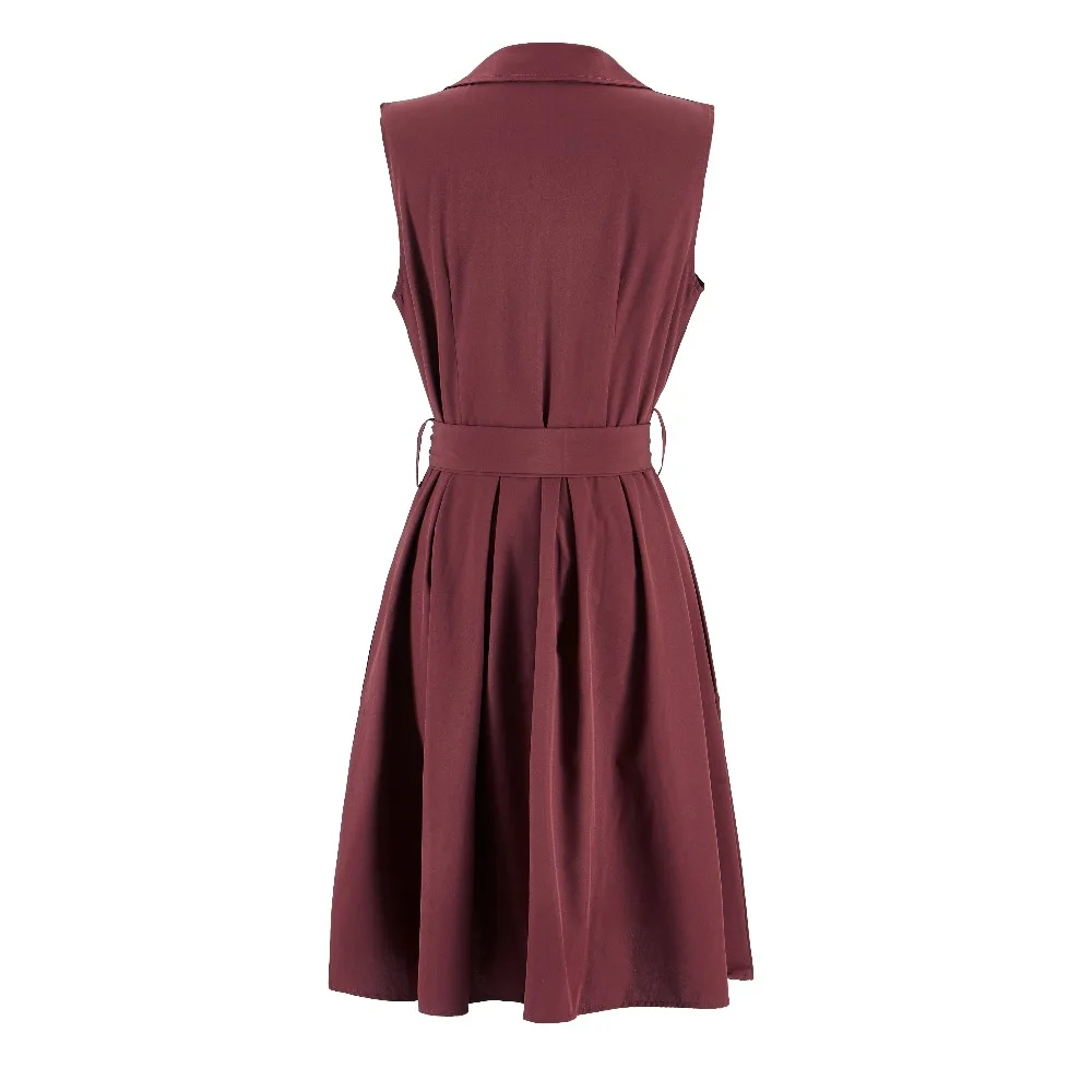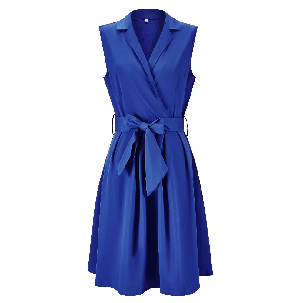 Women Dresses Sleeveless Notched Solid Navy Blue With Bow Sashes Summer A-line Beach Office Dress 2025 burgundy Party Vestidos