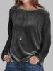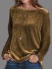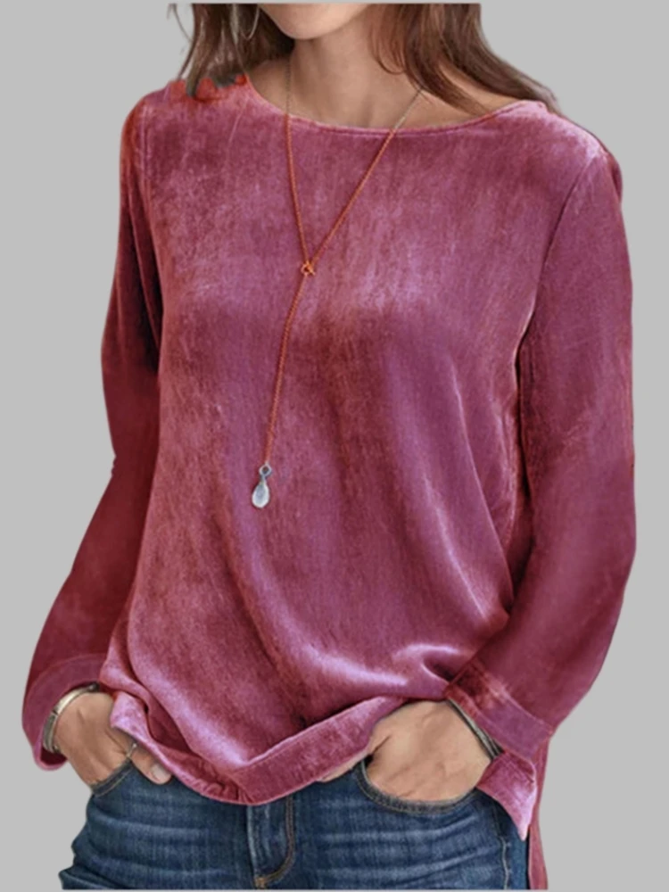 Women Elegant Velvet T-shirt Solid Long Sleeve Top 2025 Spring Autumn Round Neck Casual Loose Blouse Korean Womens Clothing
