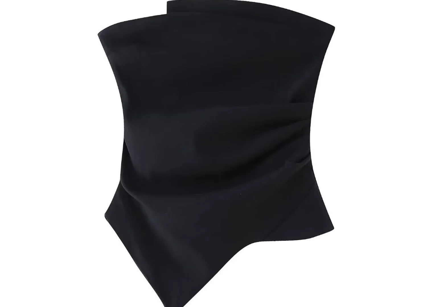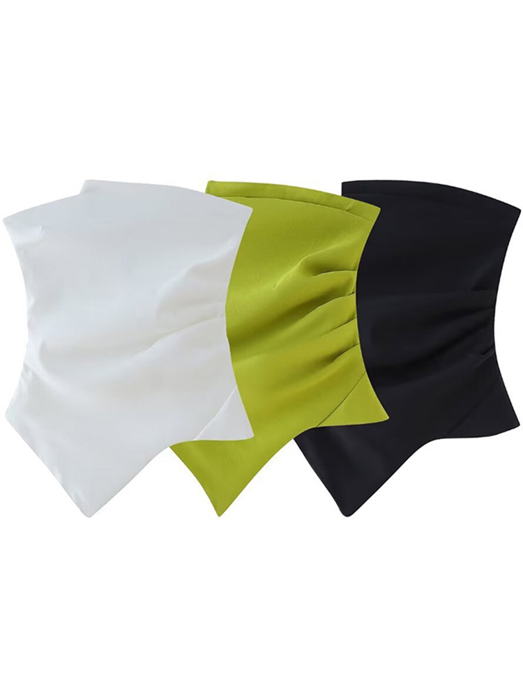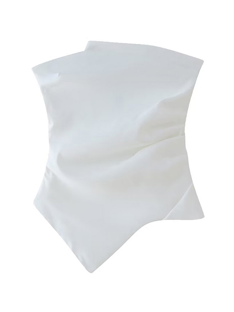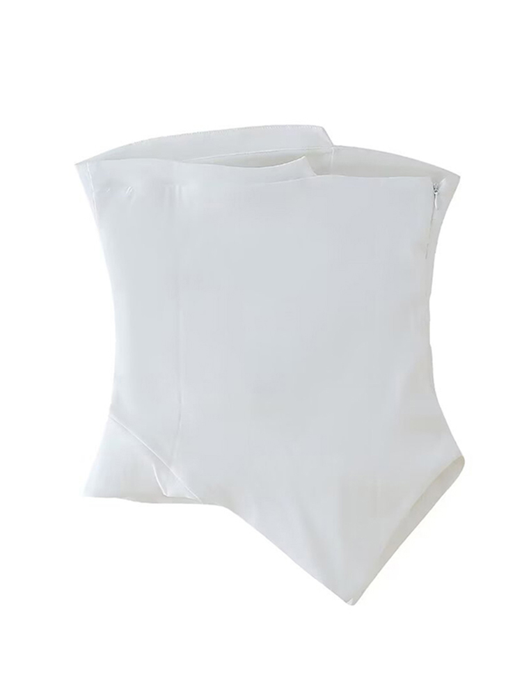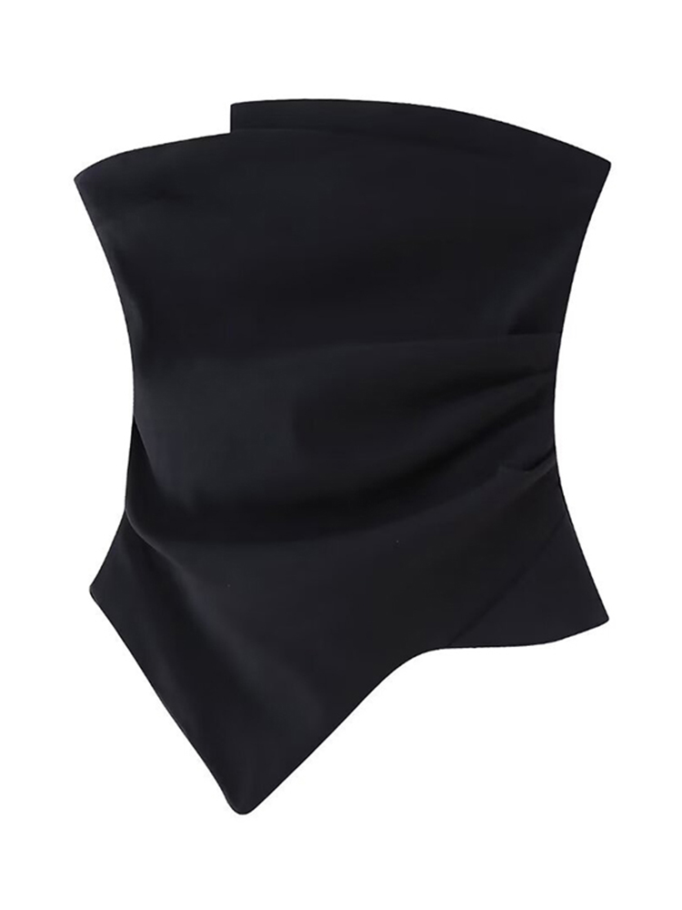 Women Fashion Strapless Pleats Asymmetrical Top Female Casual Sexy Slim Fitting Side Zipper Solid Crop Top