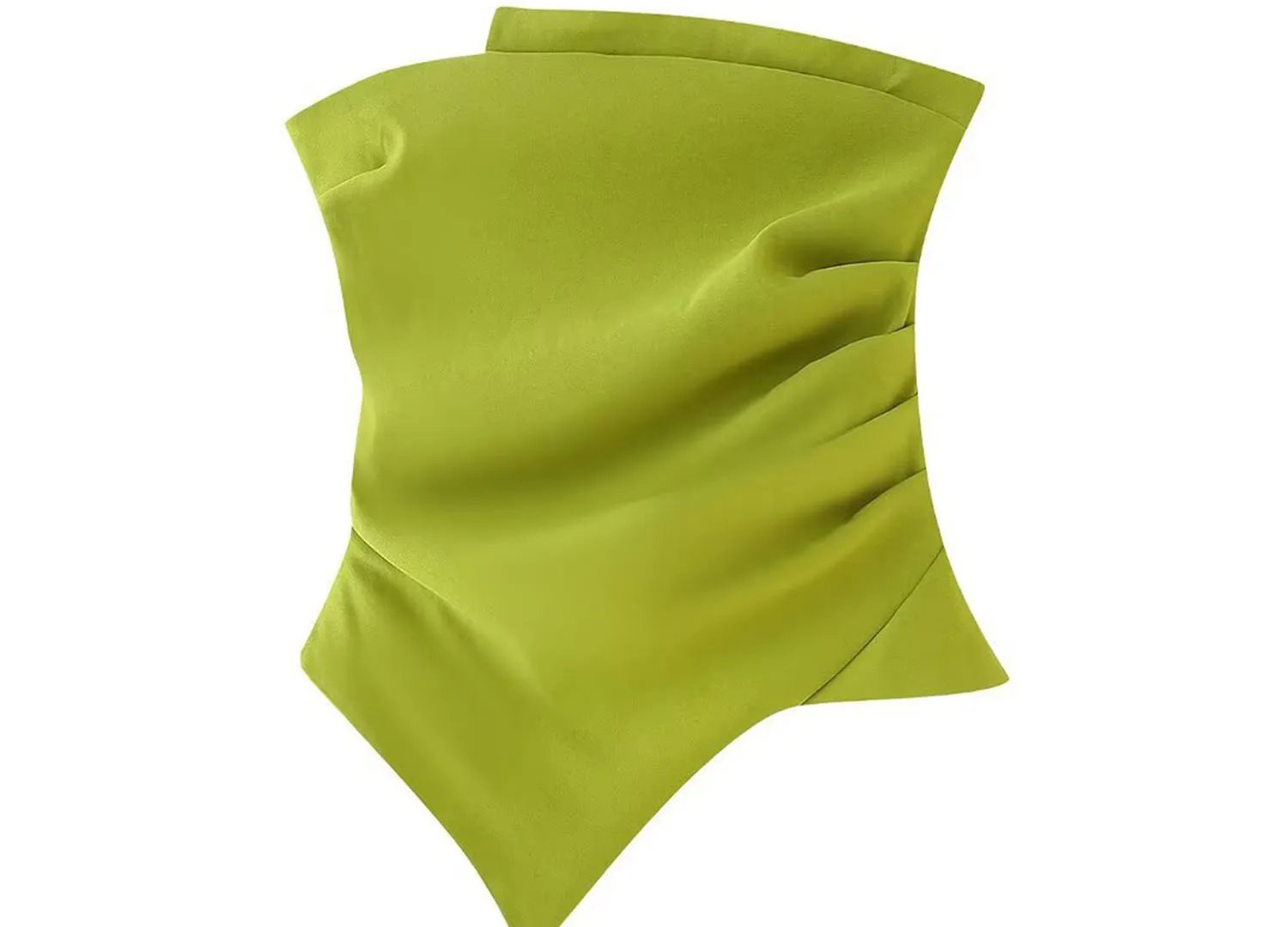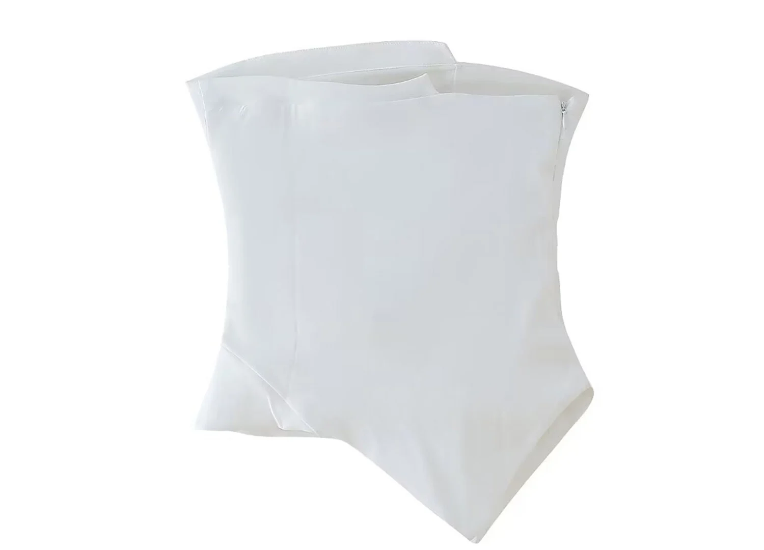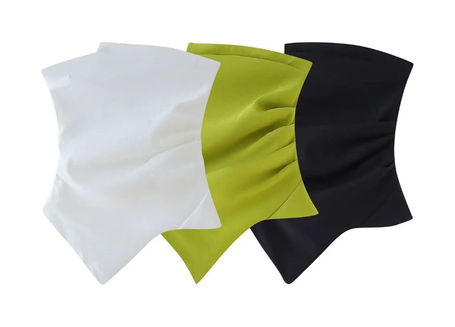 Women Fashion Strapless Pleats Asymmetrical Top Female Casual Sexy Slim Fitting Side Zipper Solid Crop Top