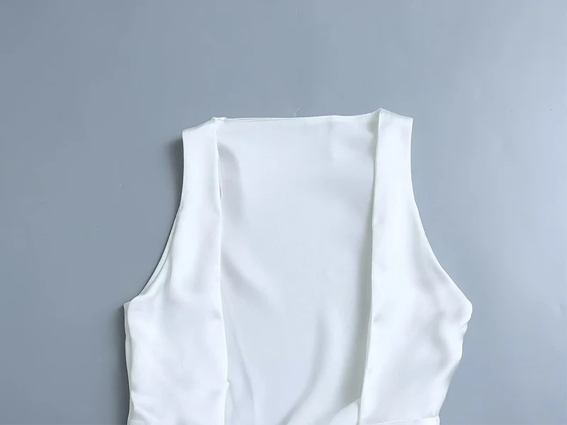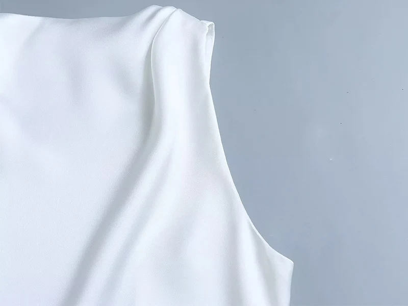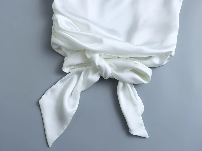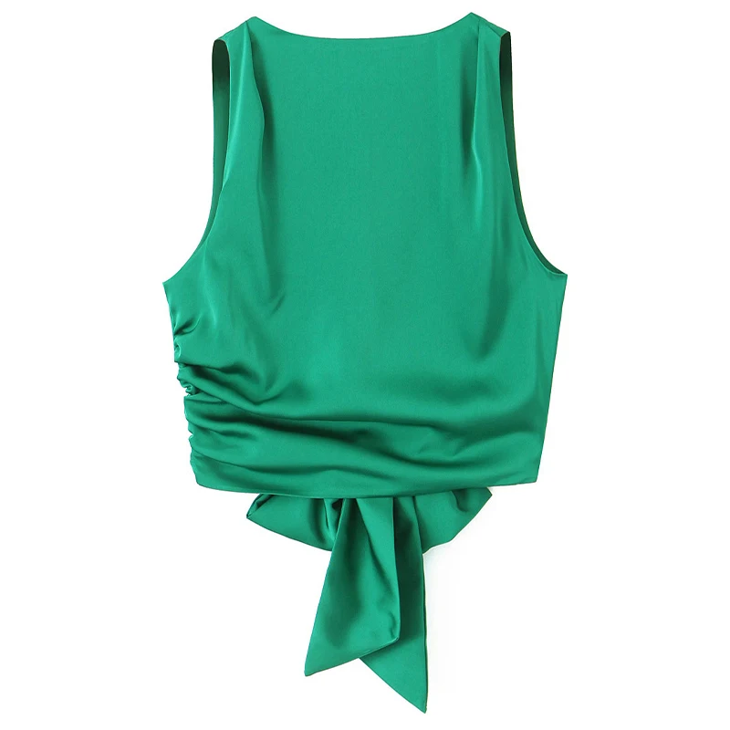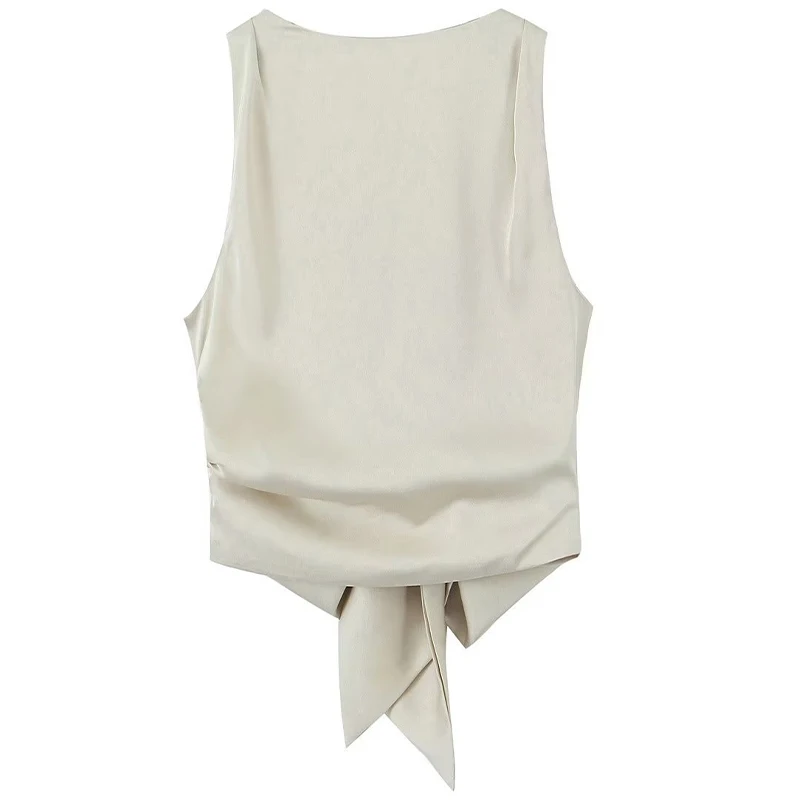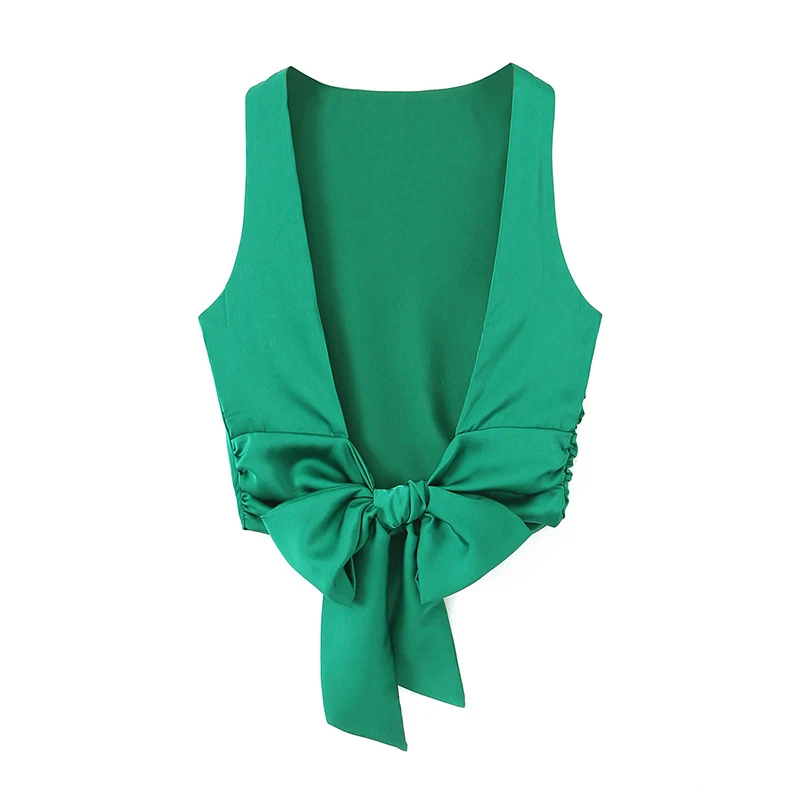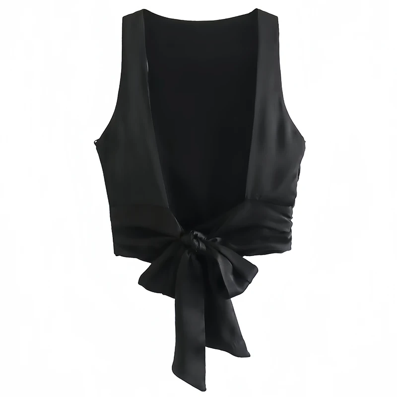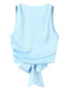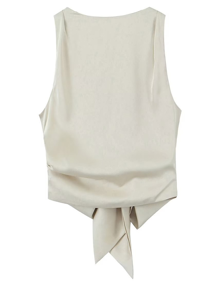 Women Fashion With Bow Solid Pleated Backless Cropped Tank Tops Vintage O-Neck Sleeveless Female Chic Lady Tops