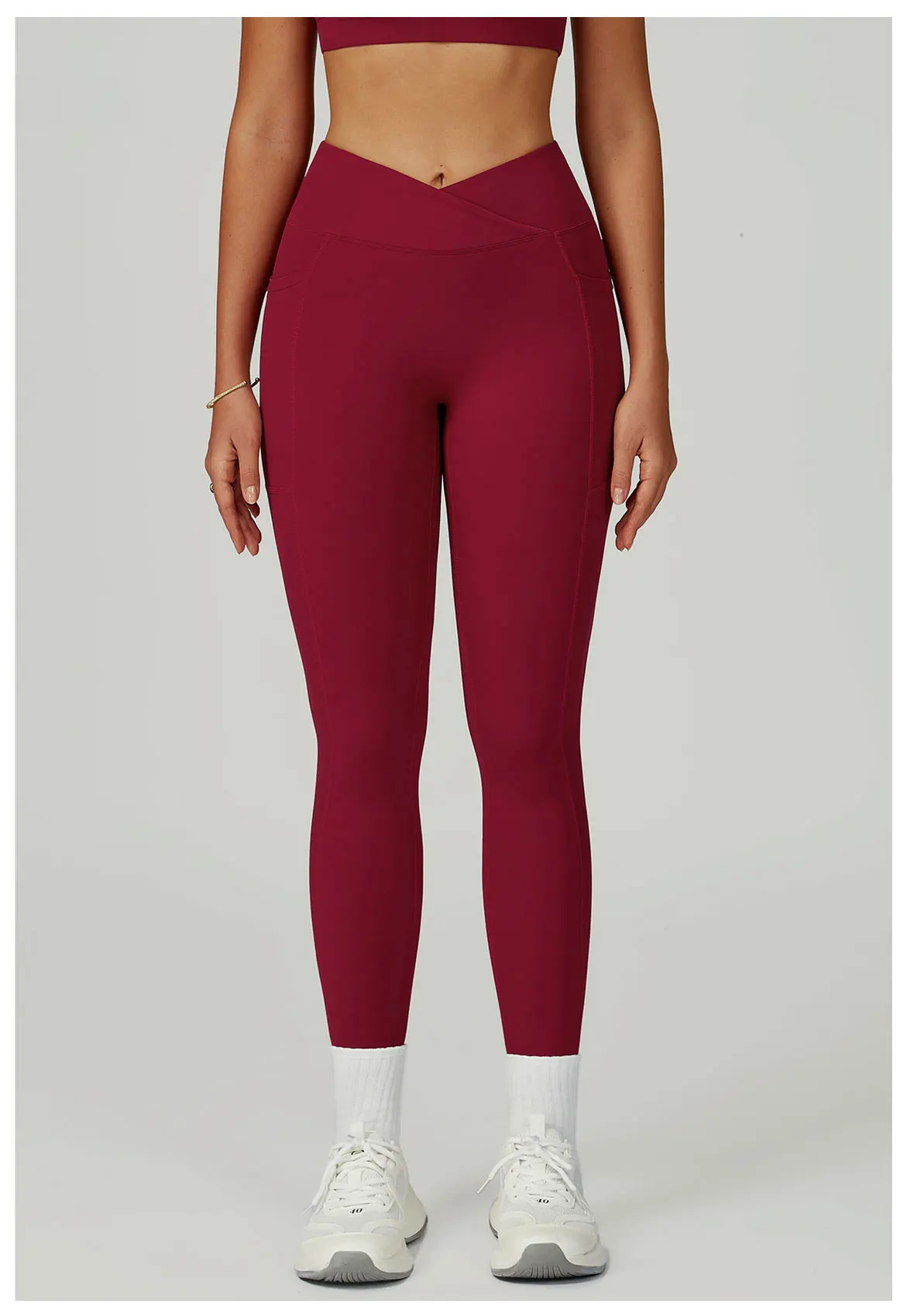 Women Fitness Leggings Yoga Pants Cross Waist Head High Waist Leggings Sportswear Running Training Breathable Workout Legging