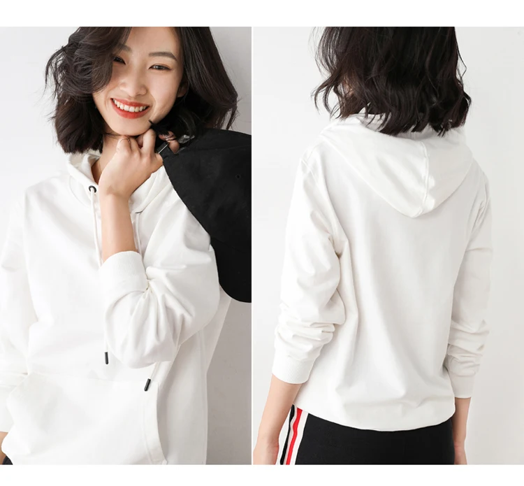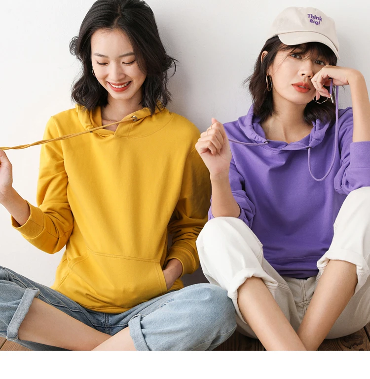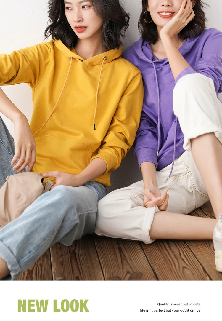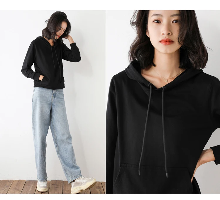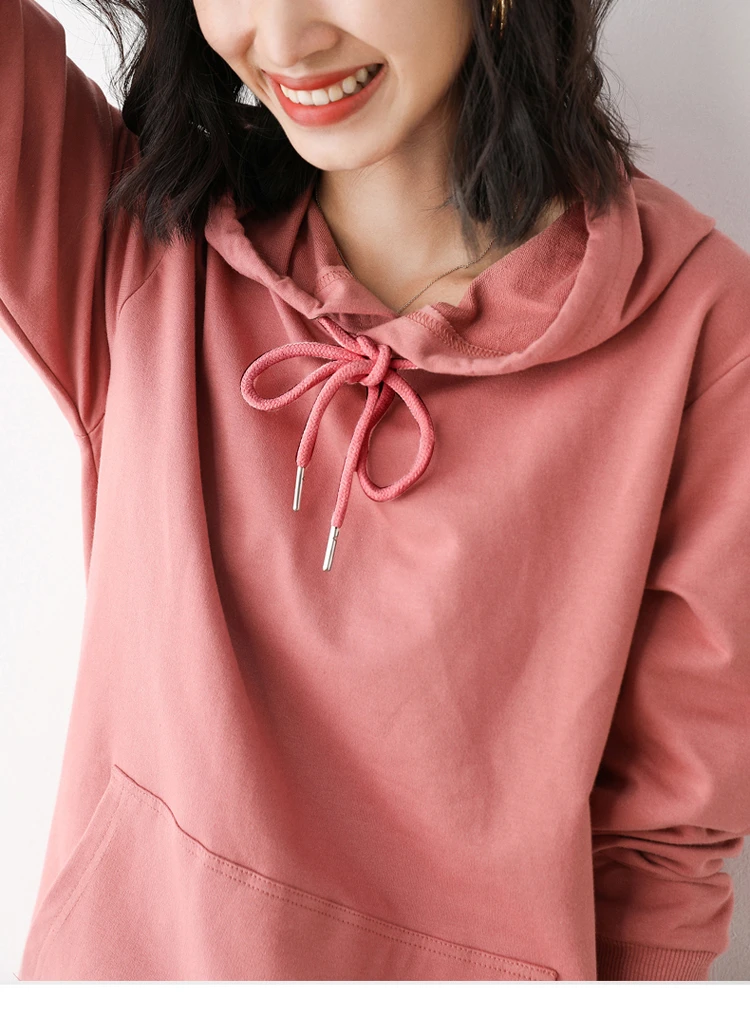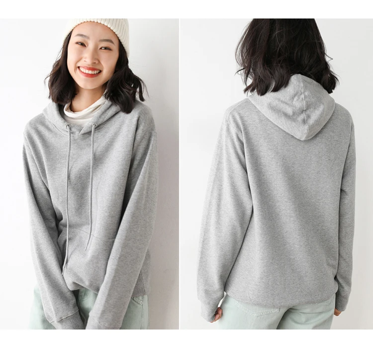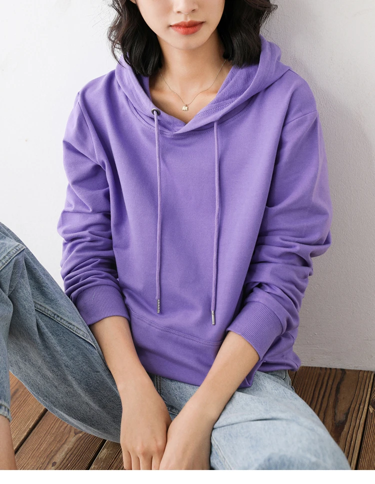 Women Hoodies 100% Cotton Spring Autumn Loose Long Sleeve Pullovers Solid Casual Ladies Outerwear Hooded Hoodie Womens Clothing