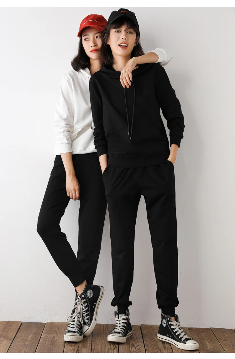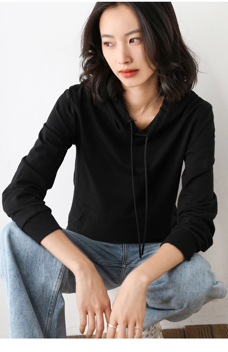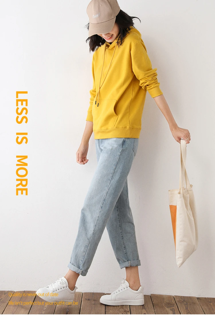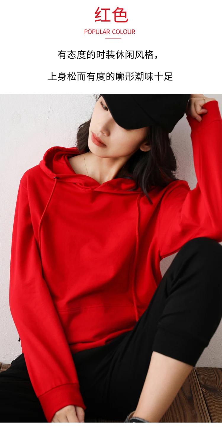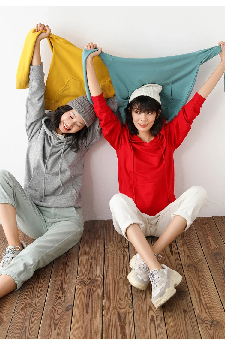 Women Hoodies 100% Cotton Spring Autumn Loose Long Sleeve Pullovers Solid Casual Ladies Outerwear Hooded Hoodie Womens Clothing