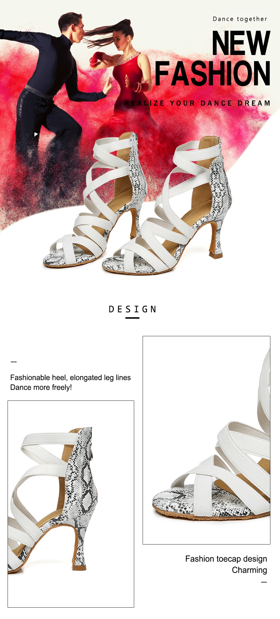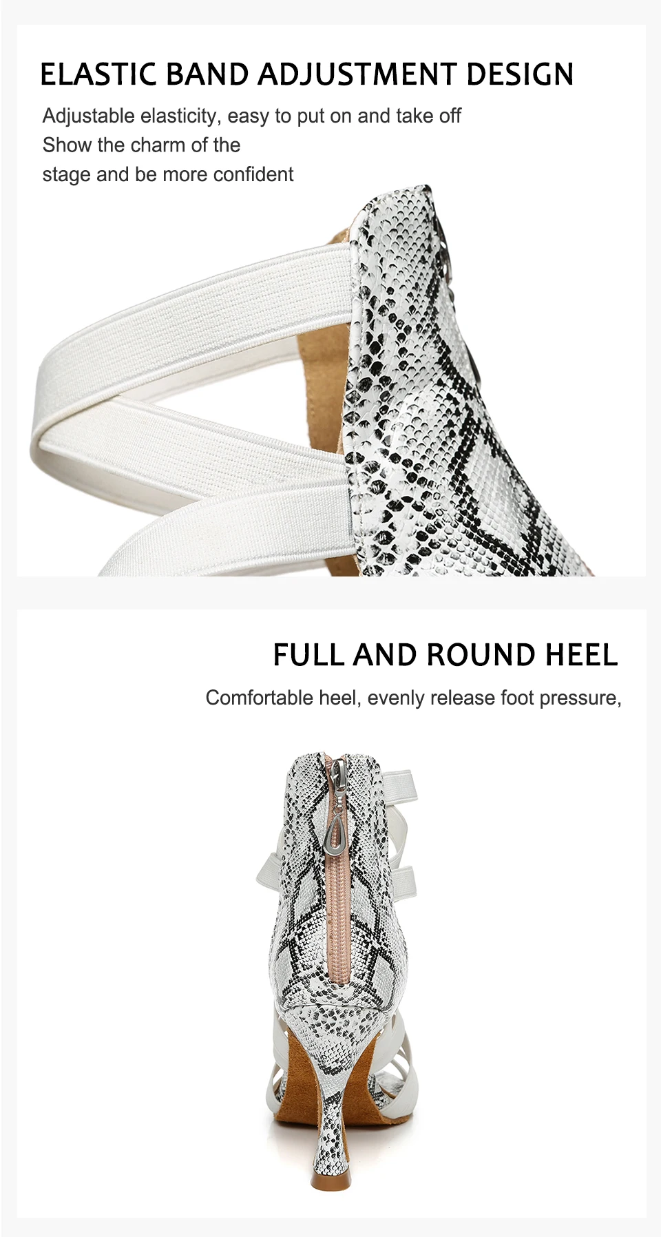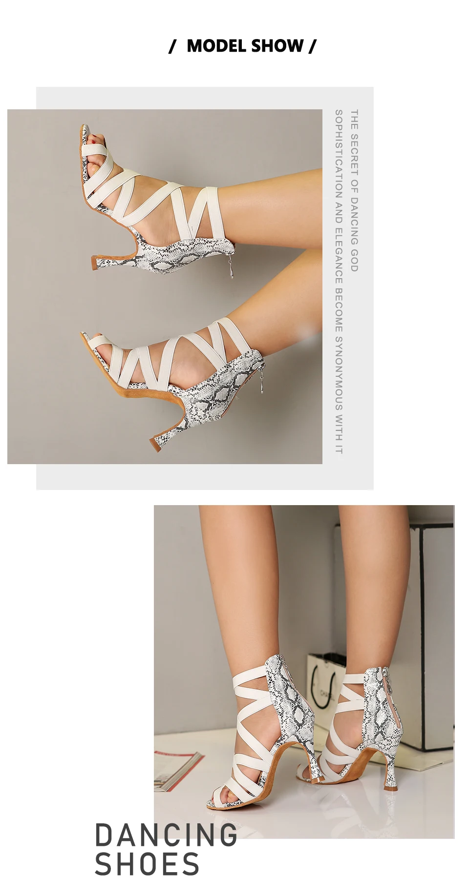 Women Latin Dance Shoes Snake skin Ballroom Shoes Girls High Top Dancing Shoes Zipper Tango/Salsa Dance Boots sandals