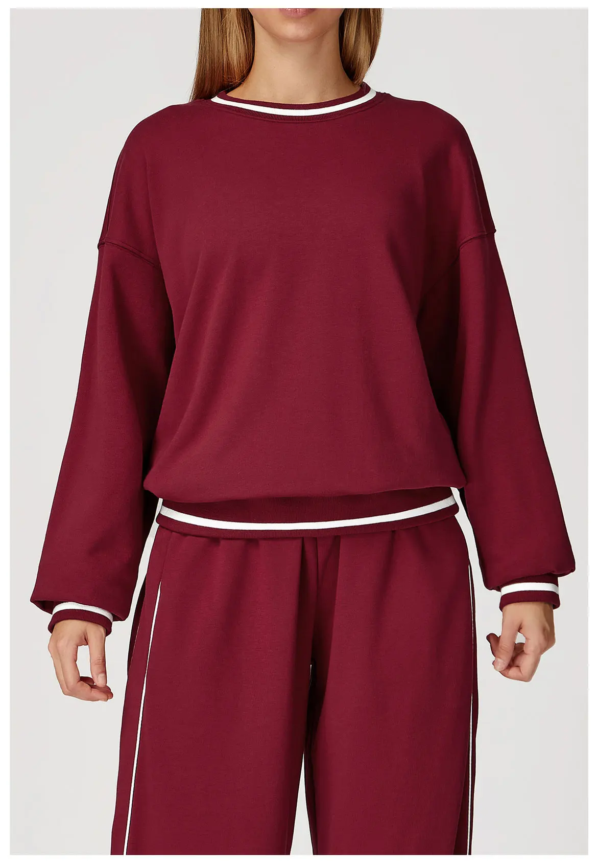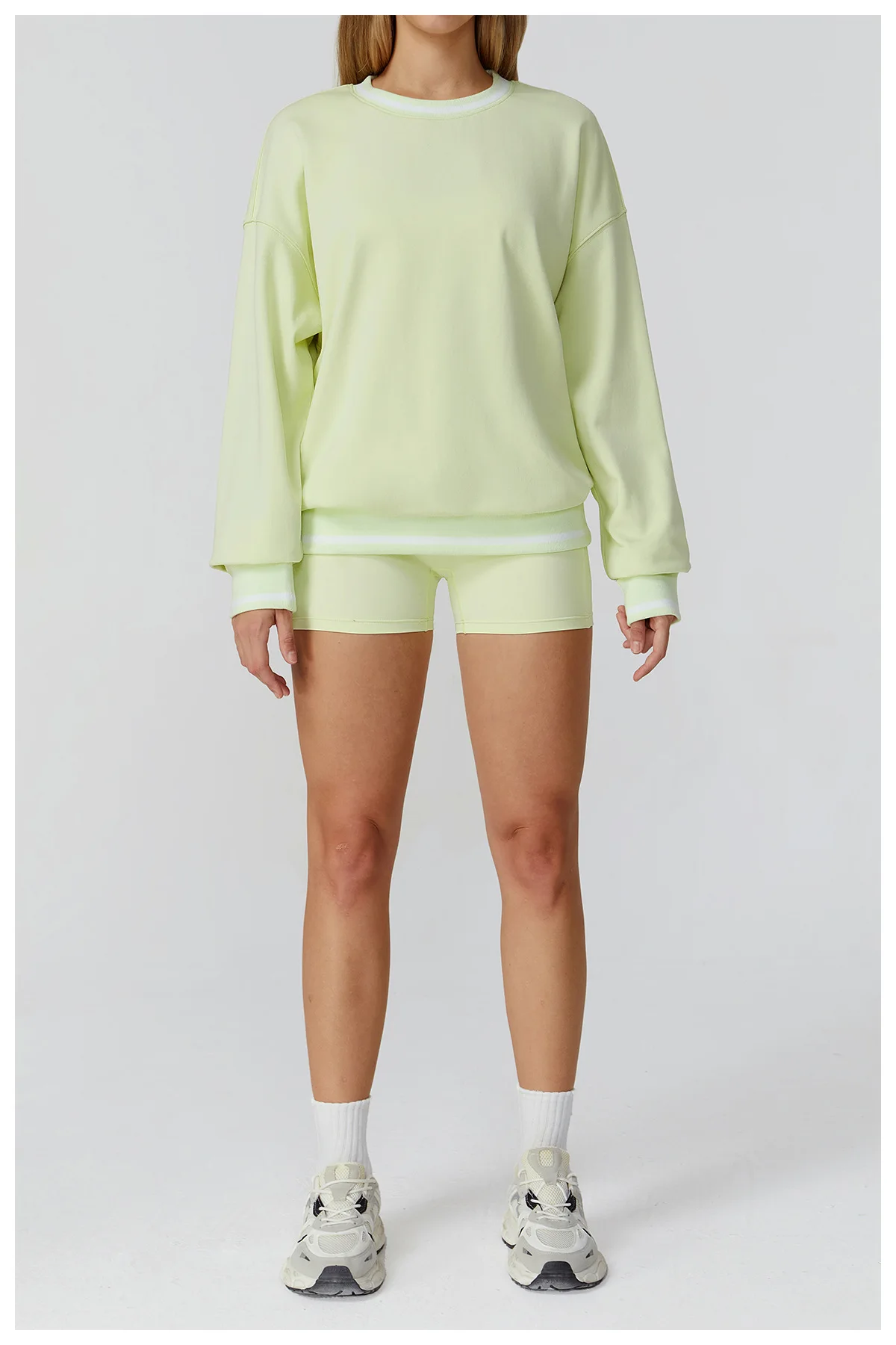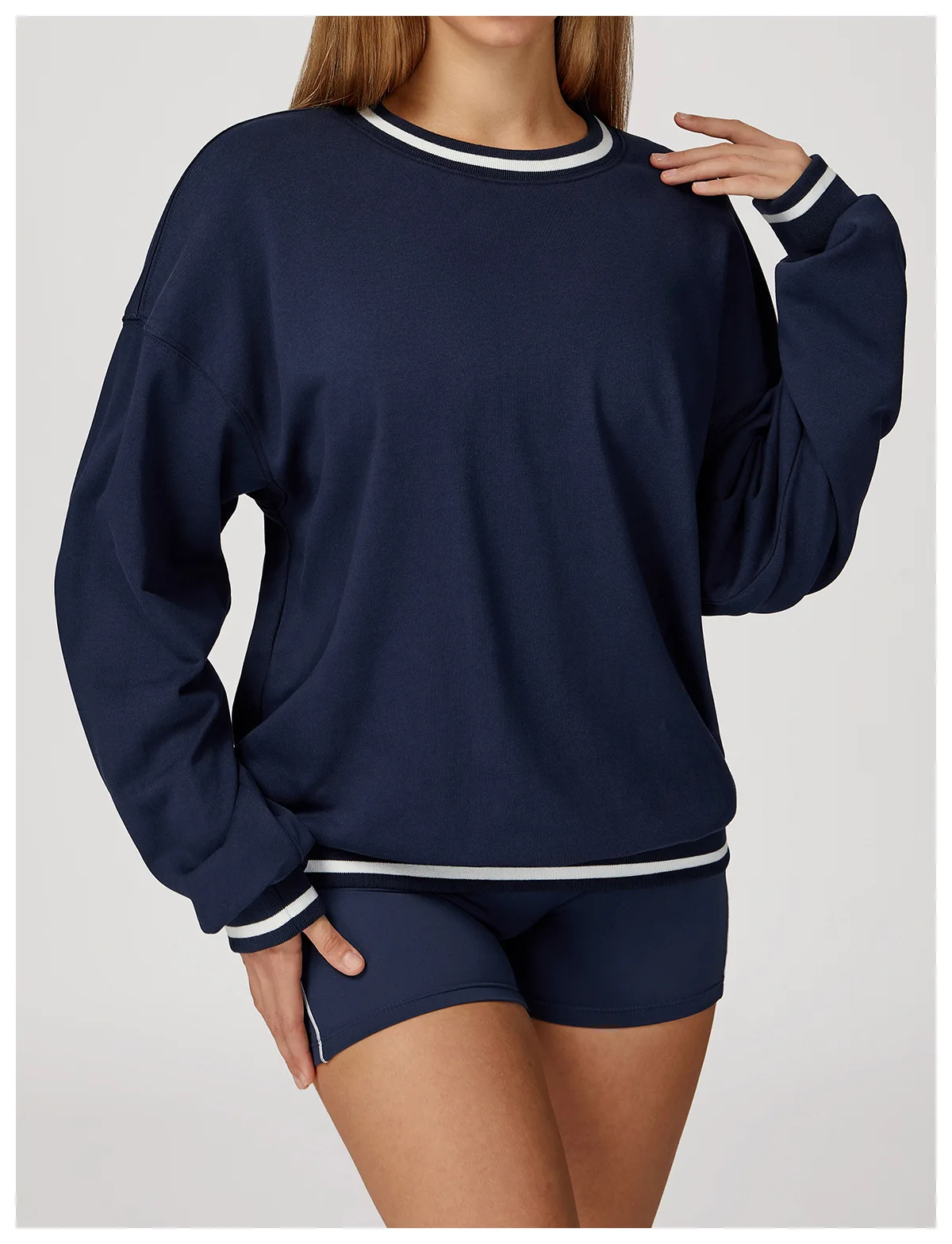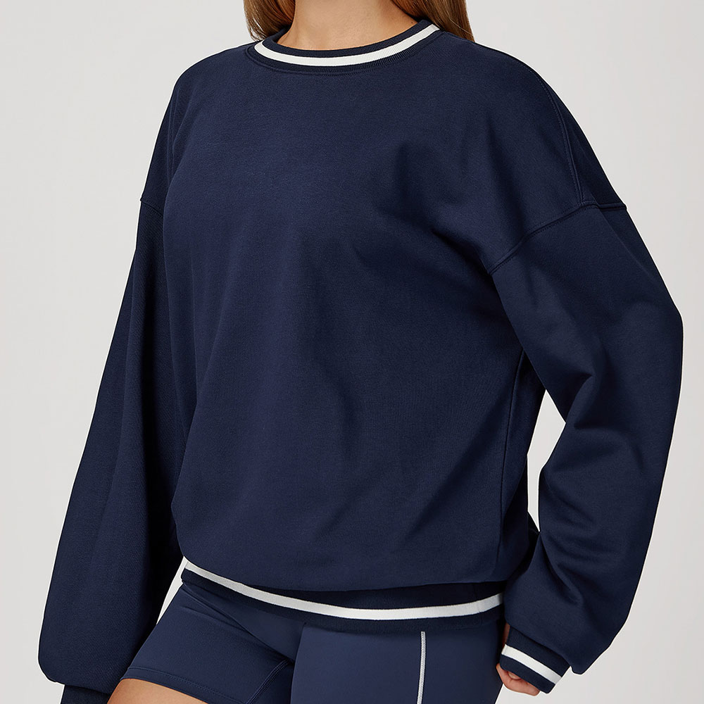 Women Long Sleeved New Winter Color Blocking Hoodie Outdoor Casual Running Sports Top Loose Round Neck Top Fashionable Hoodie