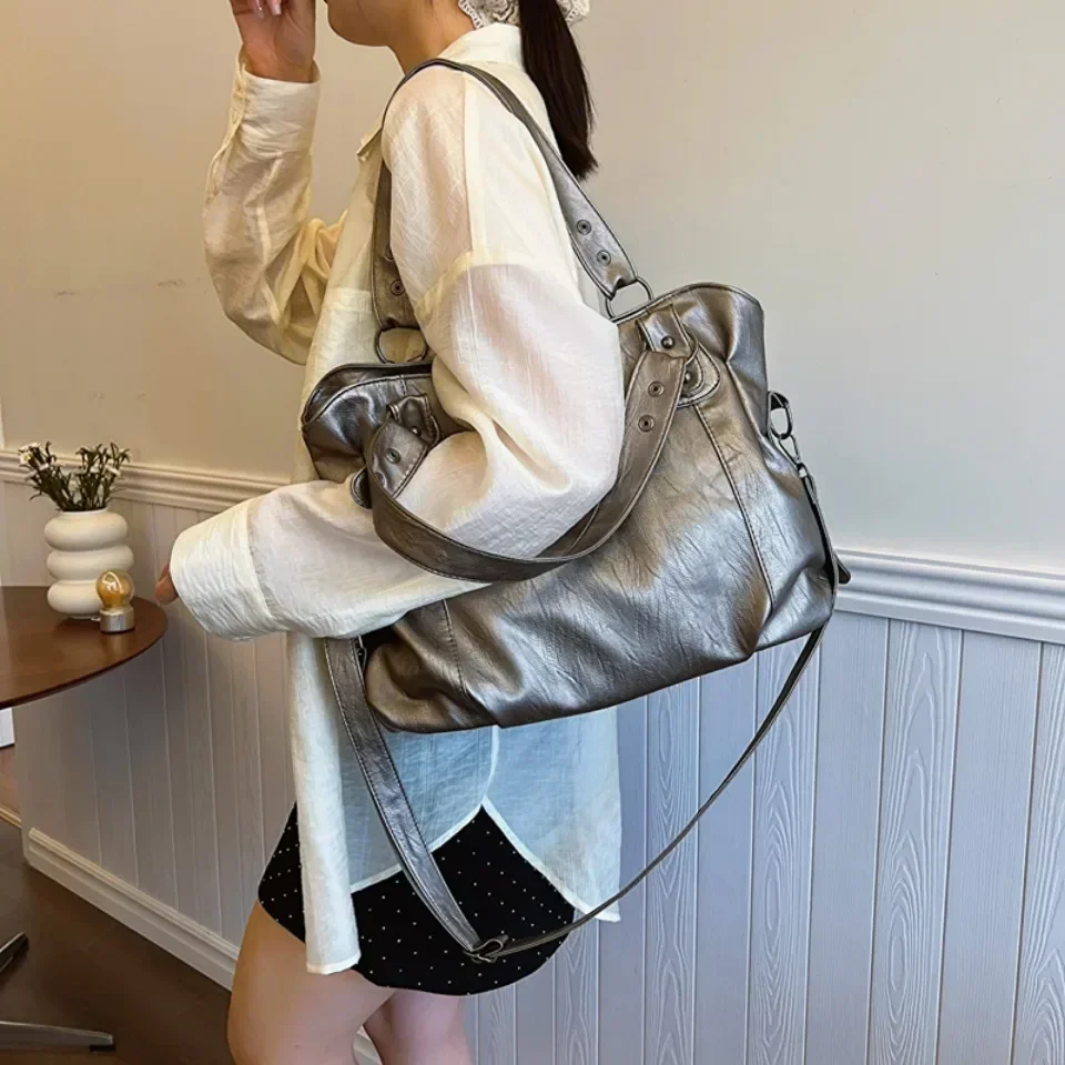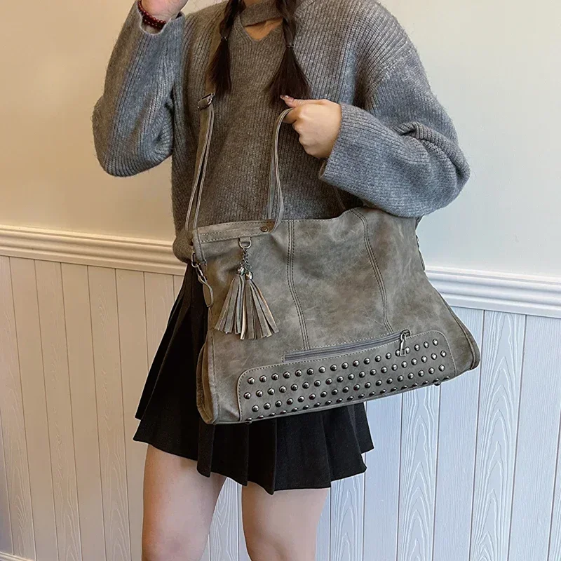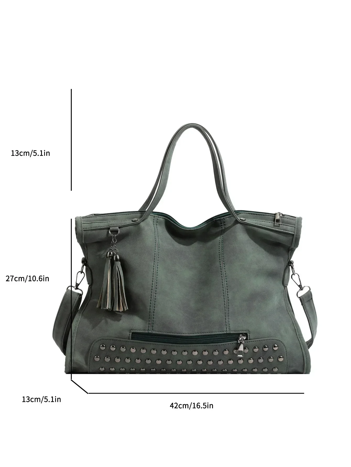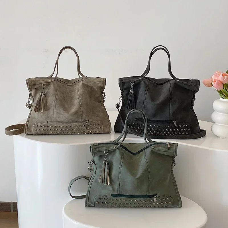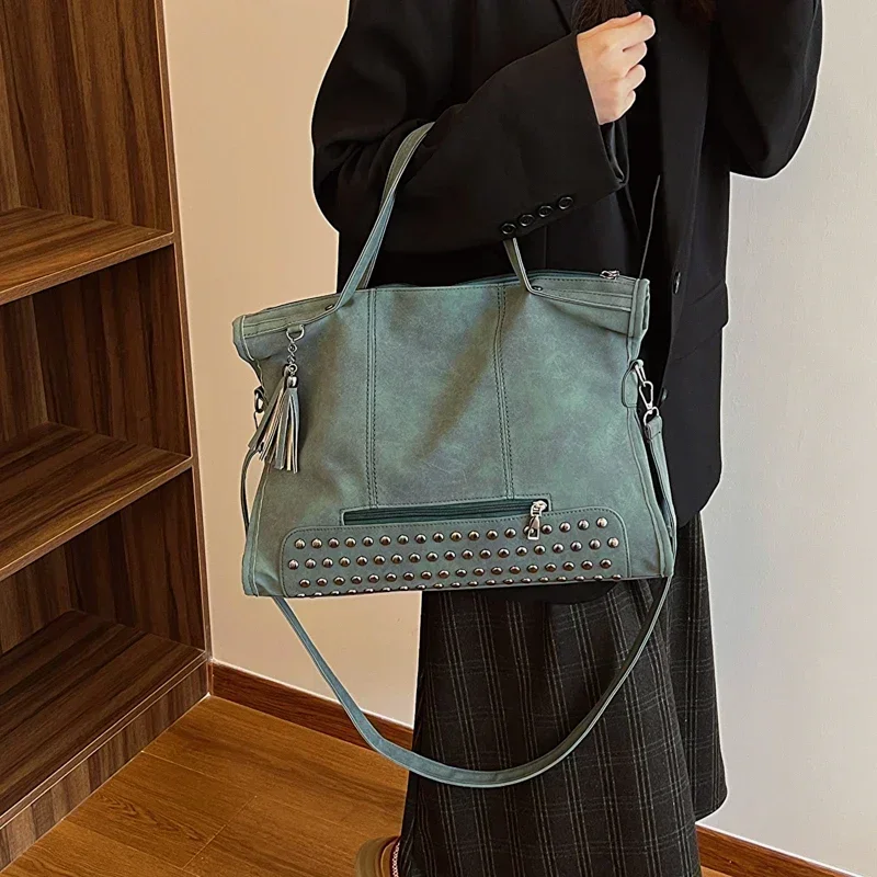 Women Luxury Designer Rivet Large Handbag Quality Leather Shoulder Bags Totes Purse Casual Big Bag Female Crossbody Bags Sac