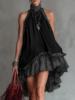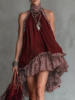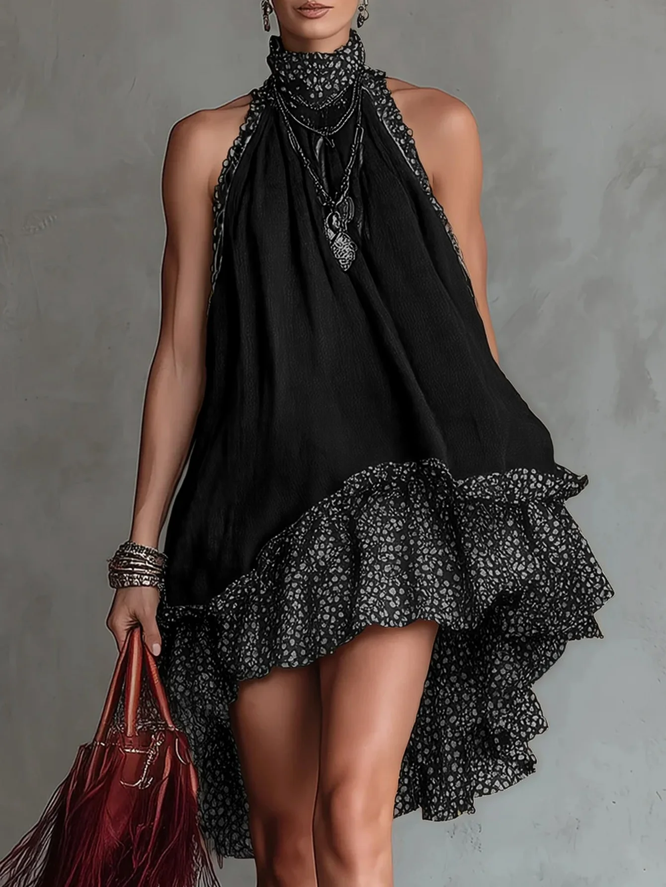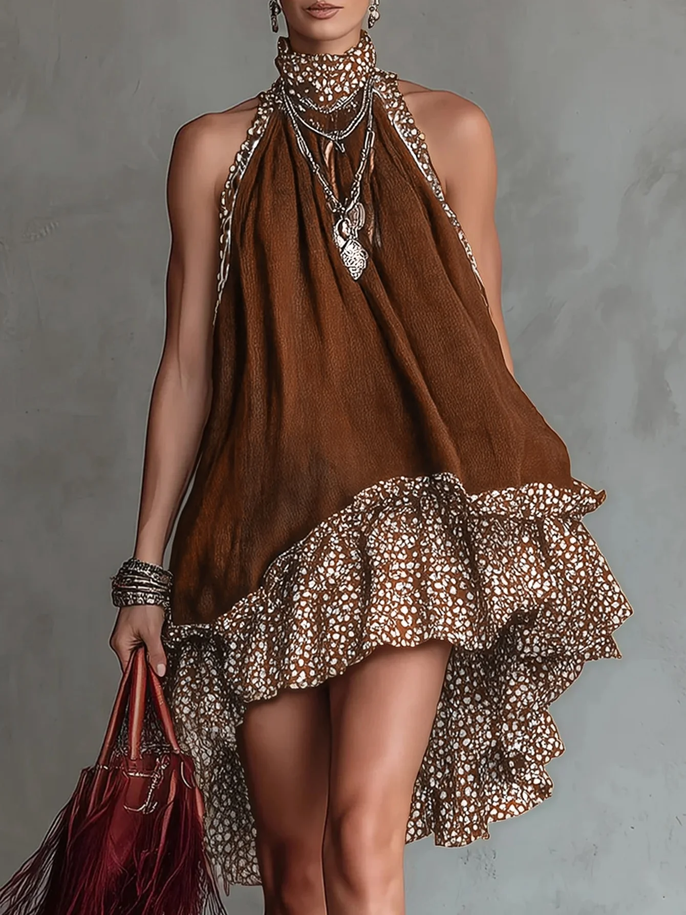 Women Off Shoulder Holiday Dress Casual Polka Dot Asymmetrical Hem Halter Dress Loose Fit Sleeveless Ruffle Mini Party Dresses
