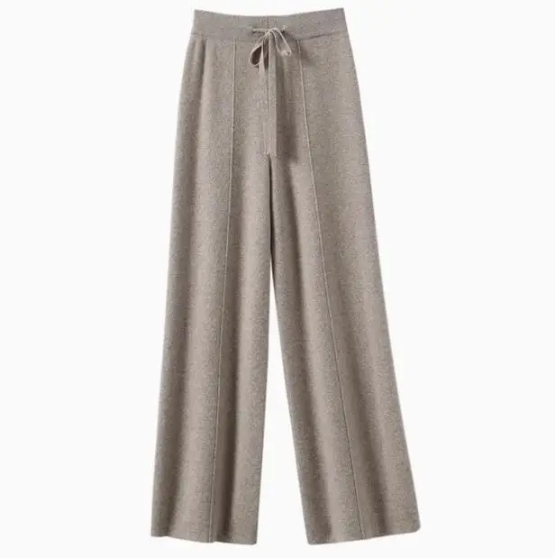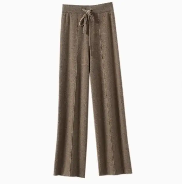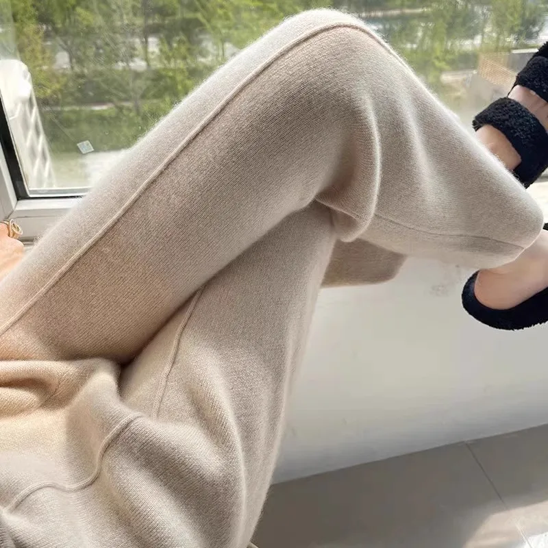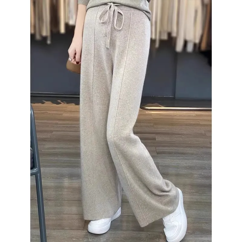 Women Pants Full Length Elastic Waist Knitted Pant Haigh Waist Wide Leg Autumn Winter Warm Stretch Trousers Casual Korean Pants