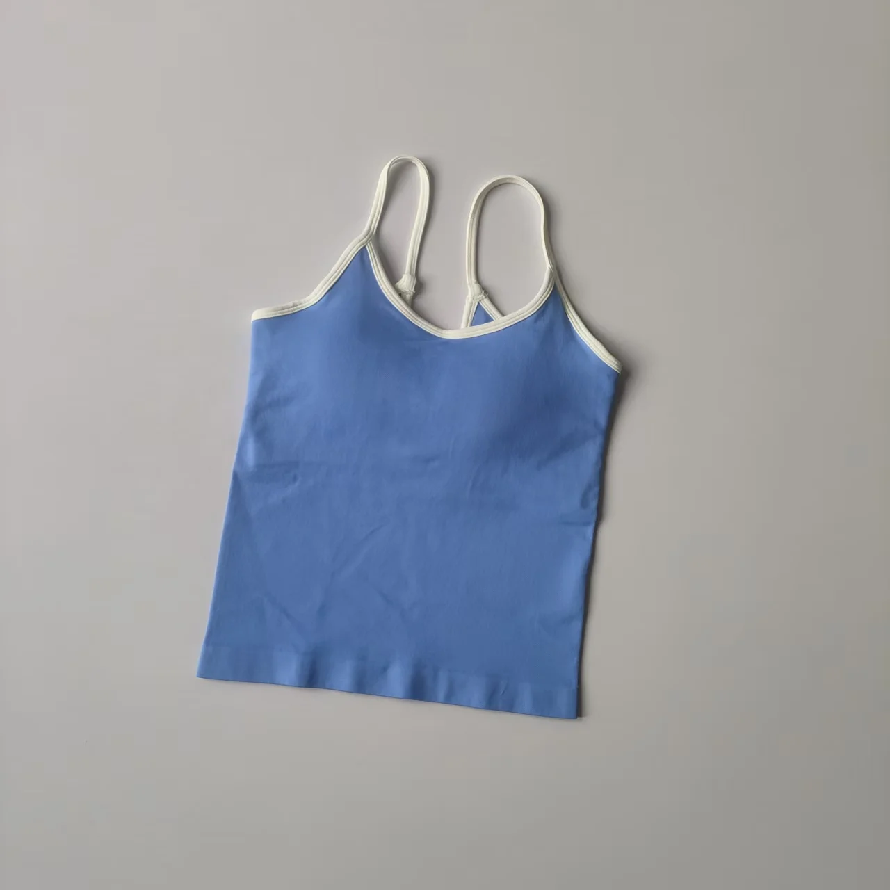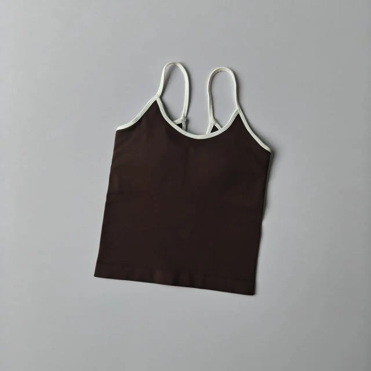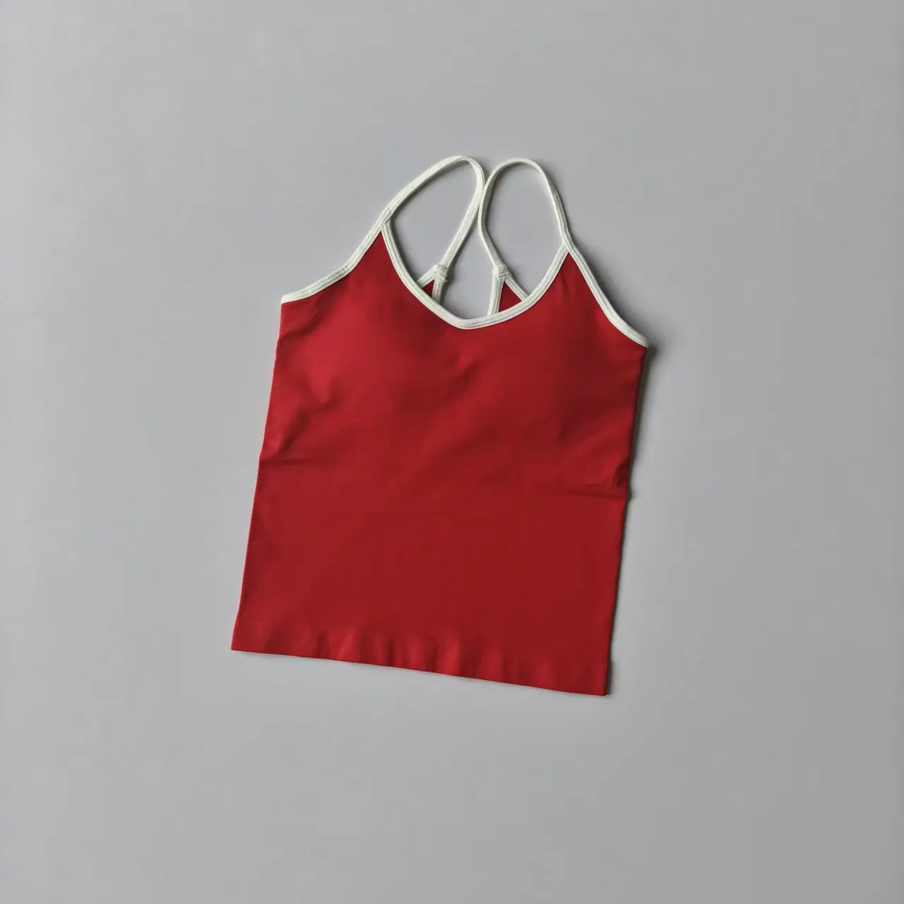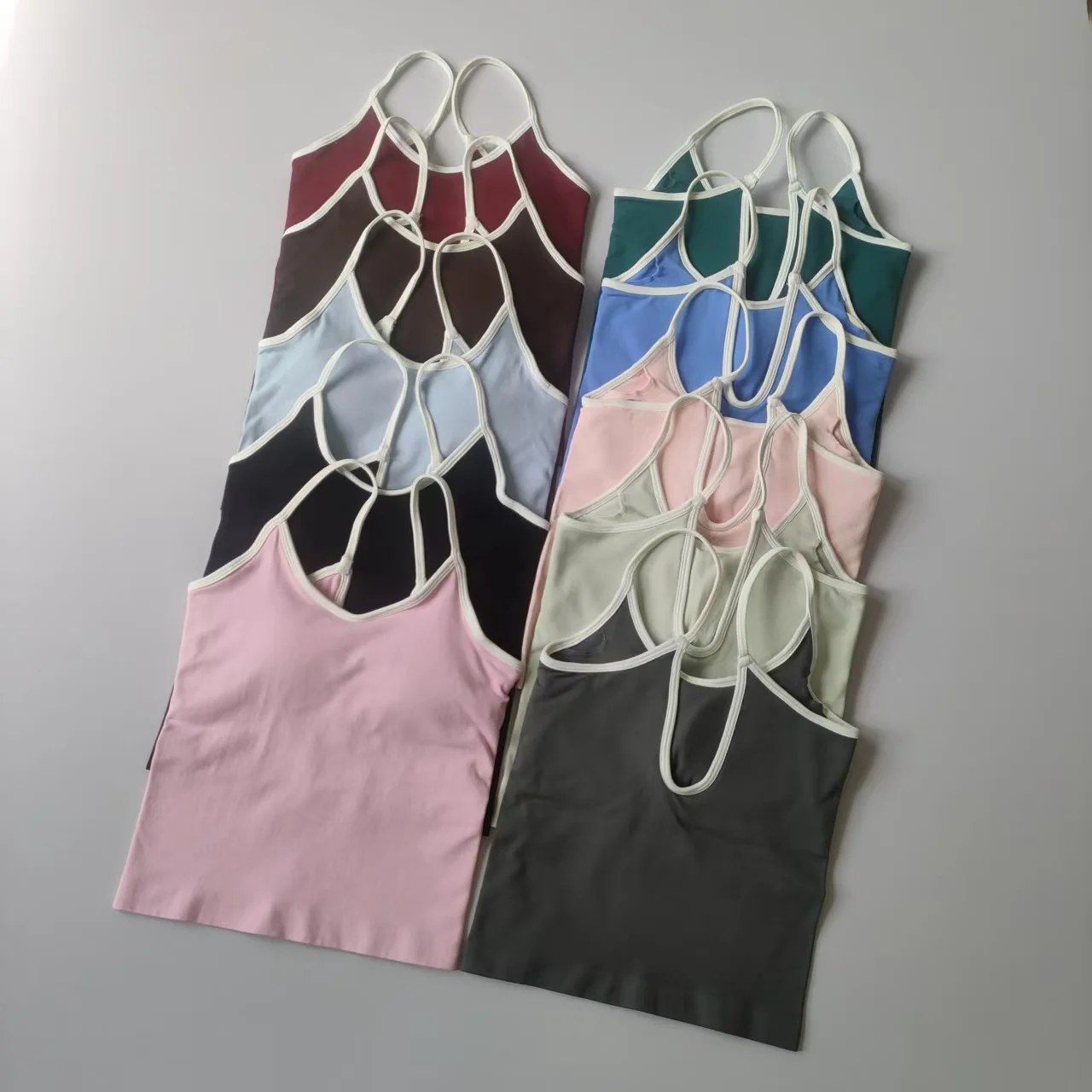 Women Seamless Sports Strappy Top Women Backless Gym Top Built-In Bra Yoga Clothing Sleeveless Shirts Workout Outfits Tank Top