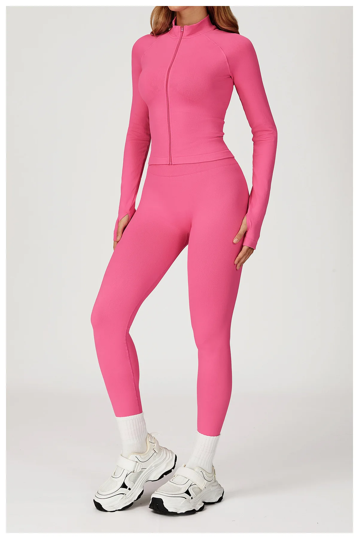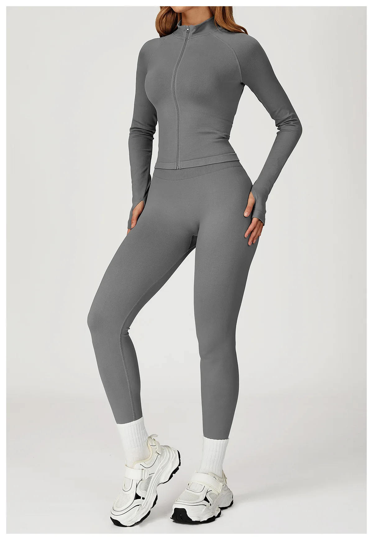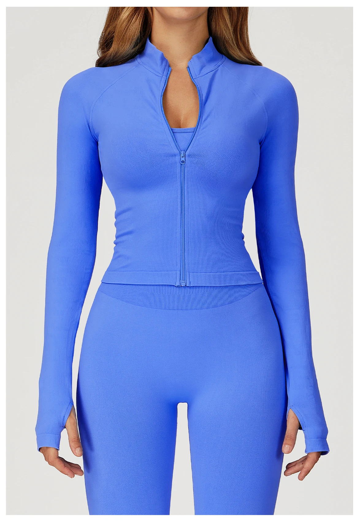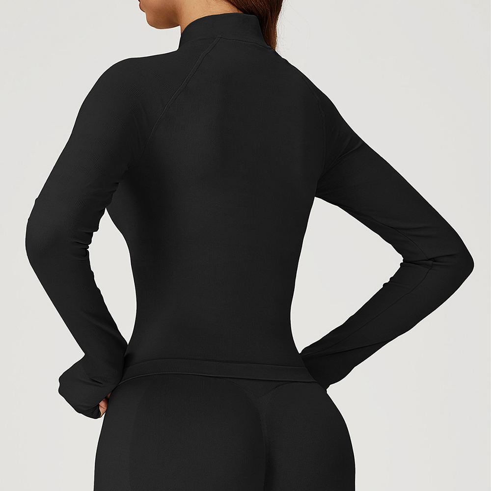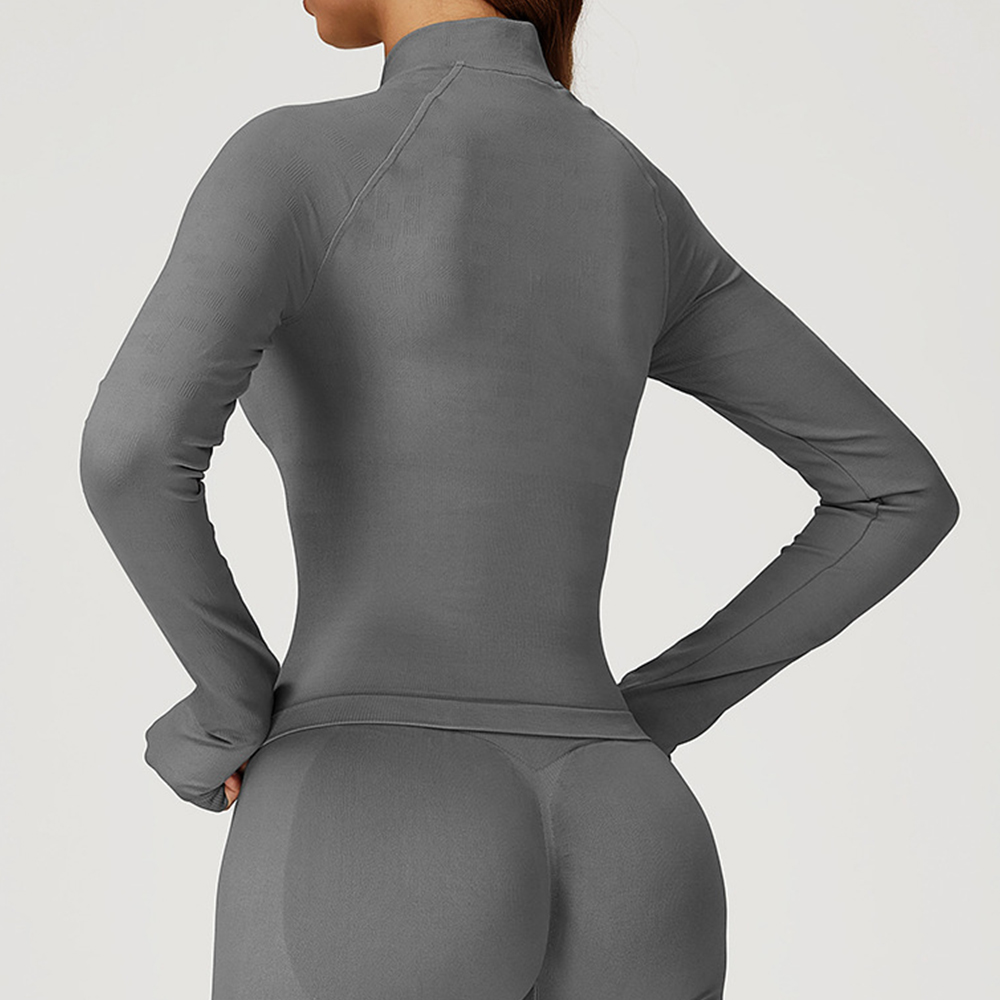 Women Seamless Yoga T-shirts Fitness Zipper Jacket Solid Sports Long Sleeve Gym Workout Running Shirts Quick Dry Sportswear