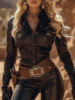 Women Shirt Collar PU Leather Long Sleeve Blouse Cinched Hem Solid Single Breasted Leather T Shirt High Street Streetwear