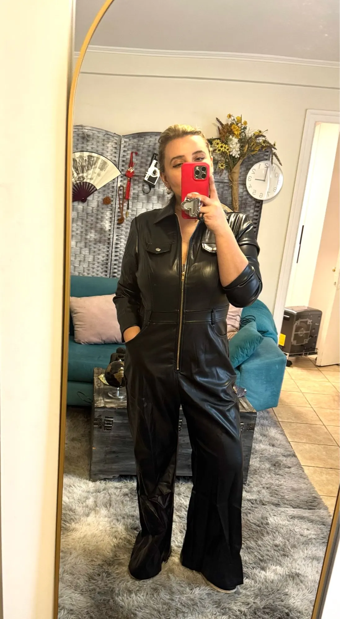 Women Shirt Collar Zipper Pocket Flare Leg PU Leather Jumpsuit Female High Street Leather Slim Long Sleeve Jumpsuit Rompers 2025