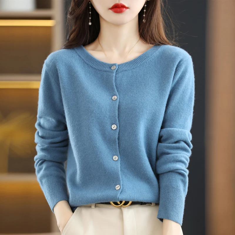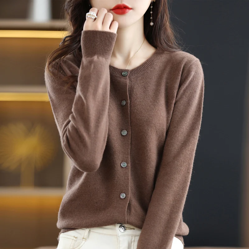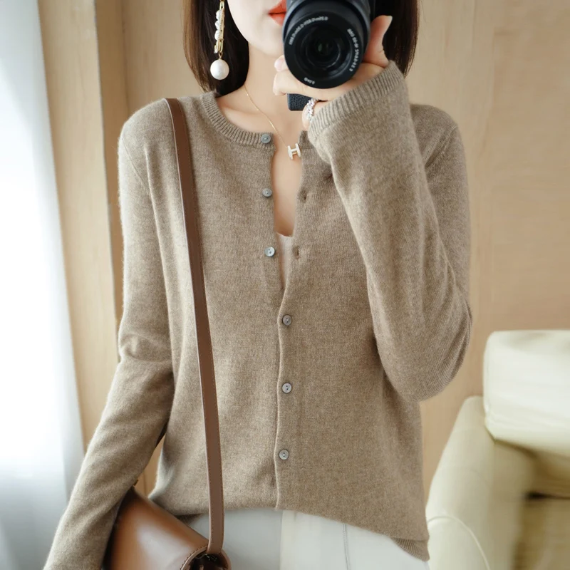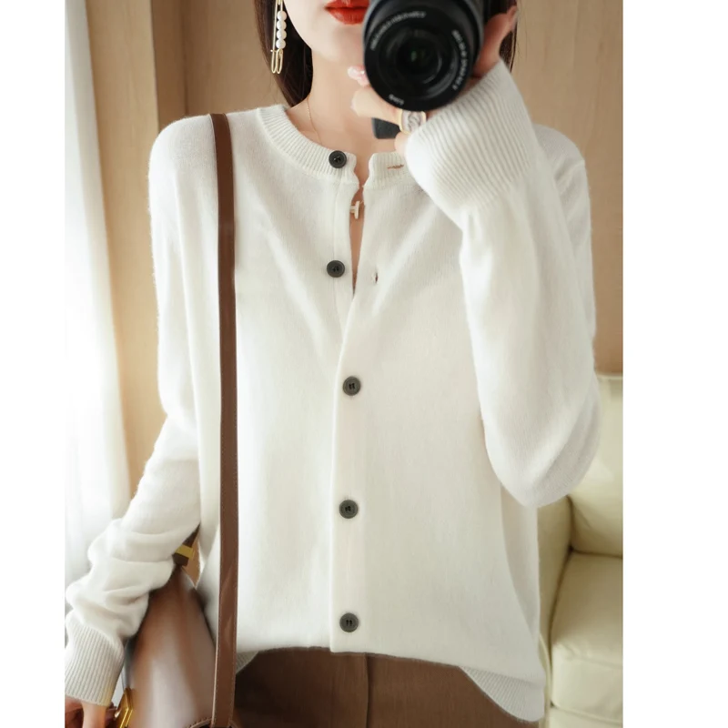 Women Sweater 2025 Autumn Winter Cardigans O-neck Single Breasted Short Slim Lady Knitwear Tops Solid Korean Femme Cardigans