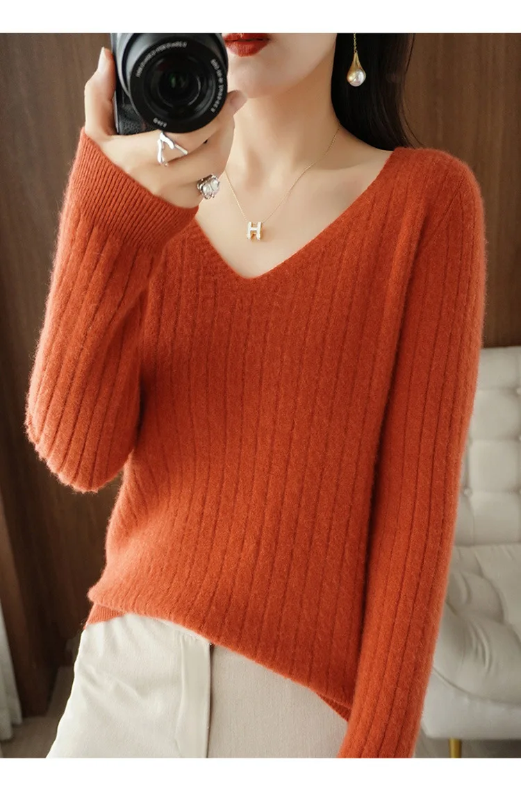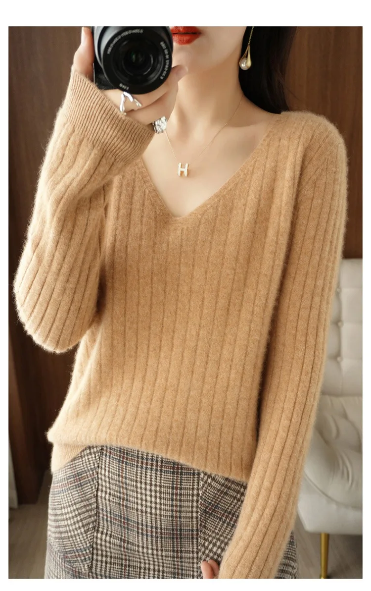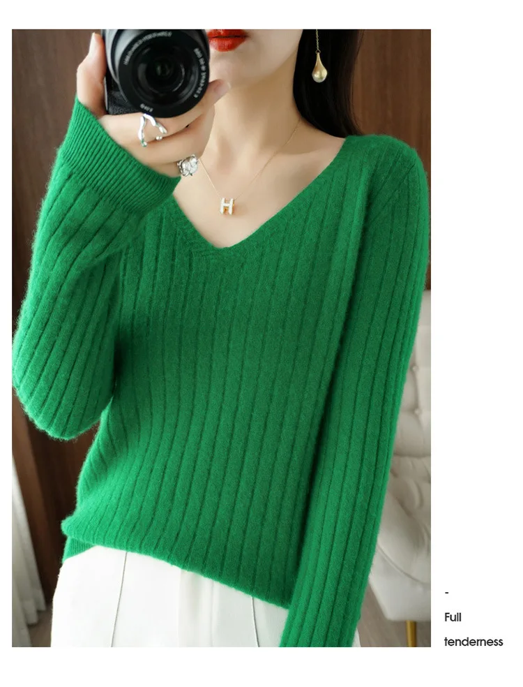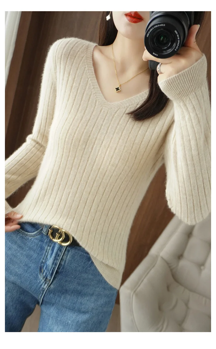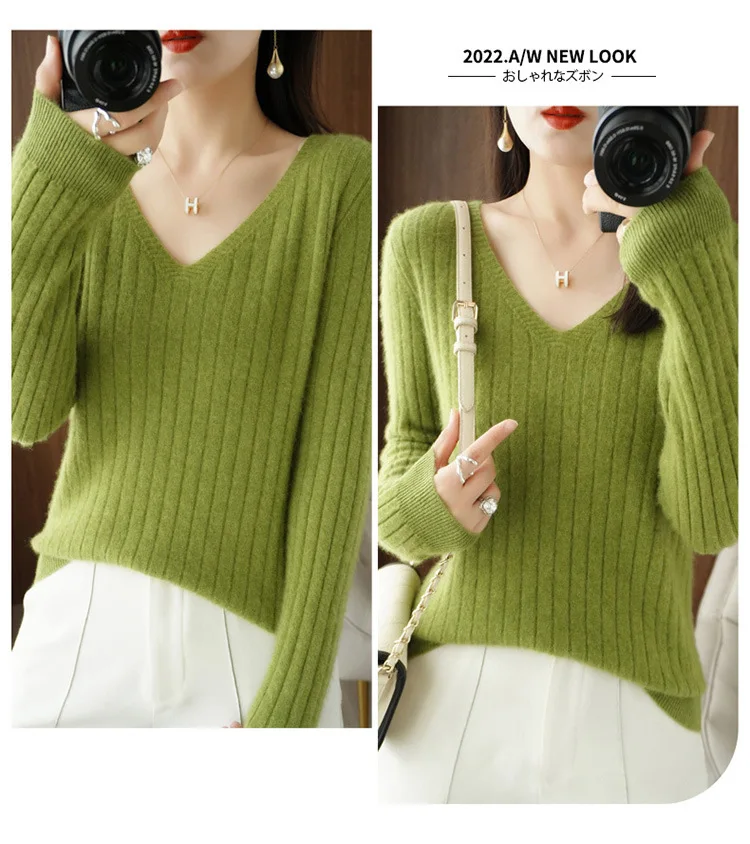 Women Sweater 2025 Autumn Winter Warm Basic Tops Casual V–neck Spring Bottoming Shirts Long Sleeve Fashion Korean Knit Pullover
